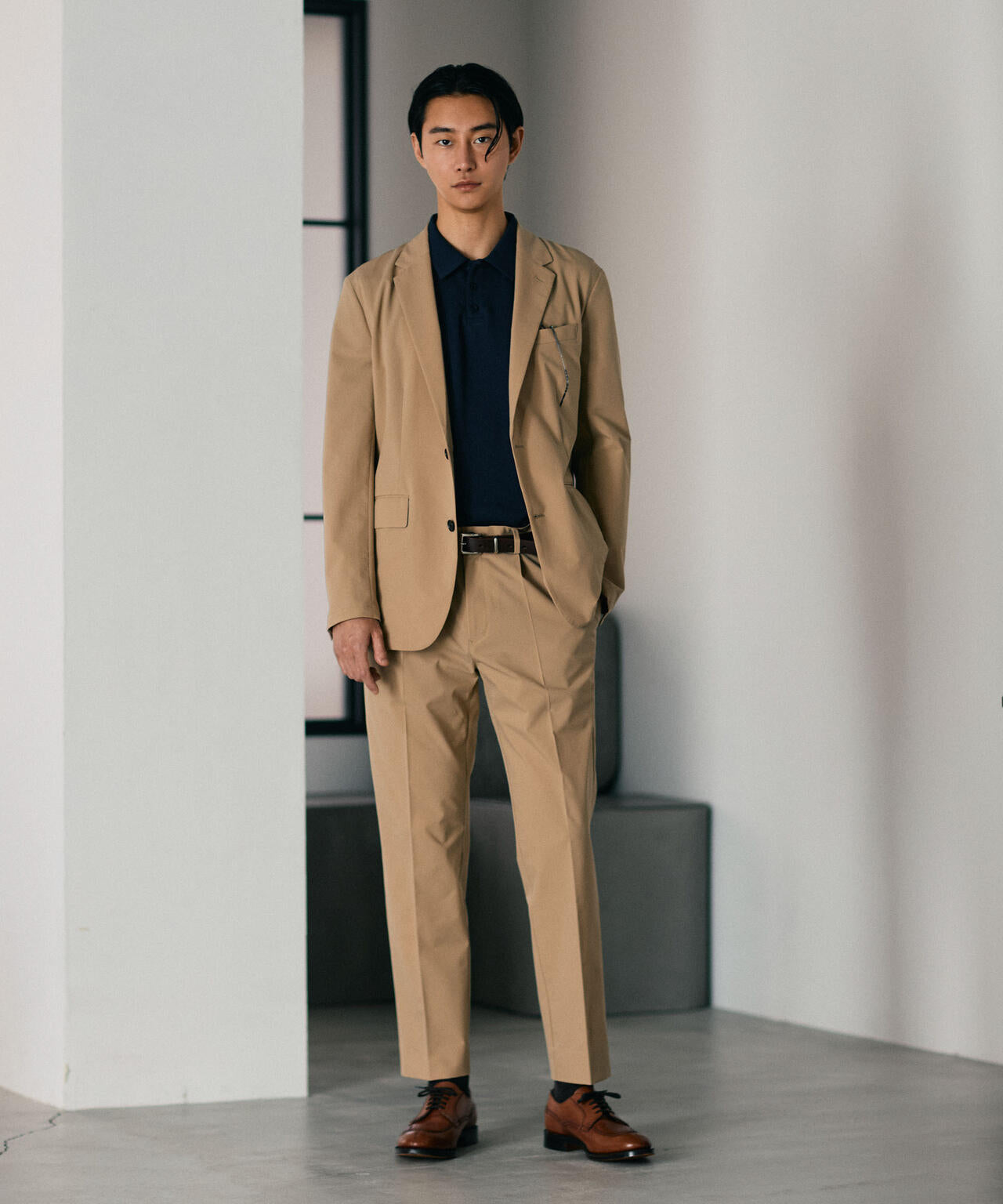 イギリス、アメリカ、イタリアなど様々な国のテーラードスタイルを取り入れ進化してきた日本のスーツの現在進行形。高伸縮機能糸の「TEXBRID」を使用した、履き心地抜群のストレッチ性が魅力のセットアップです。