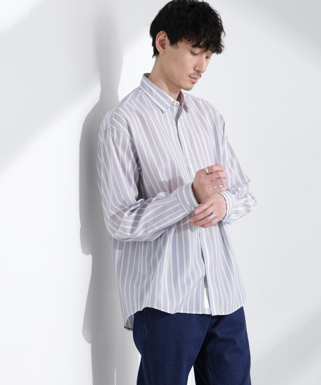 「大人のワイドシャツ」レギュラーカラー ストライプ 長袖