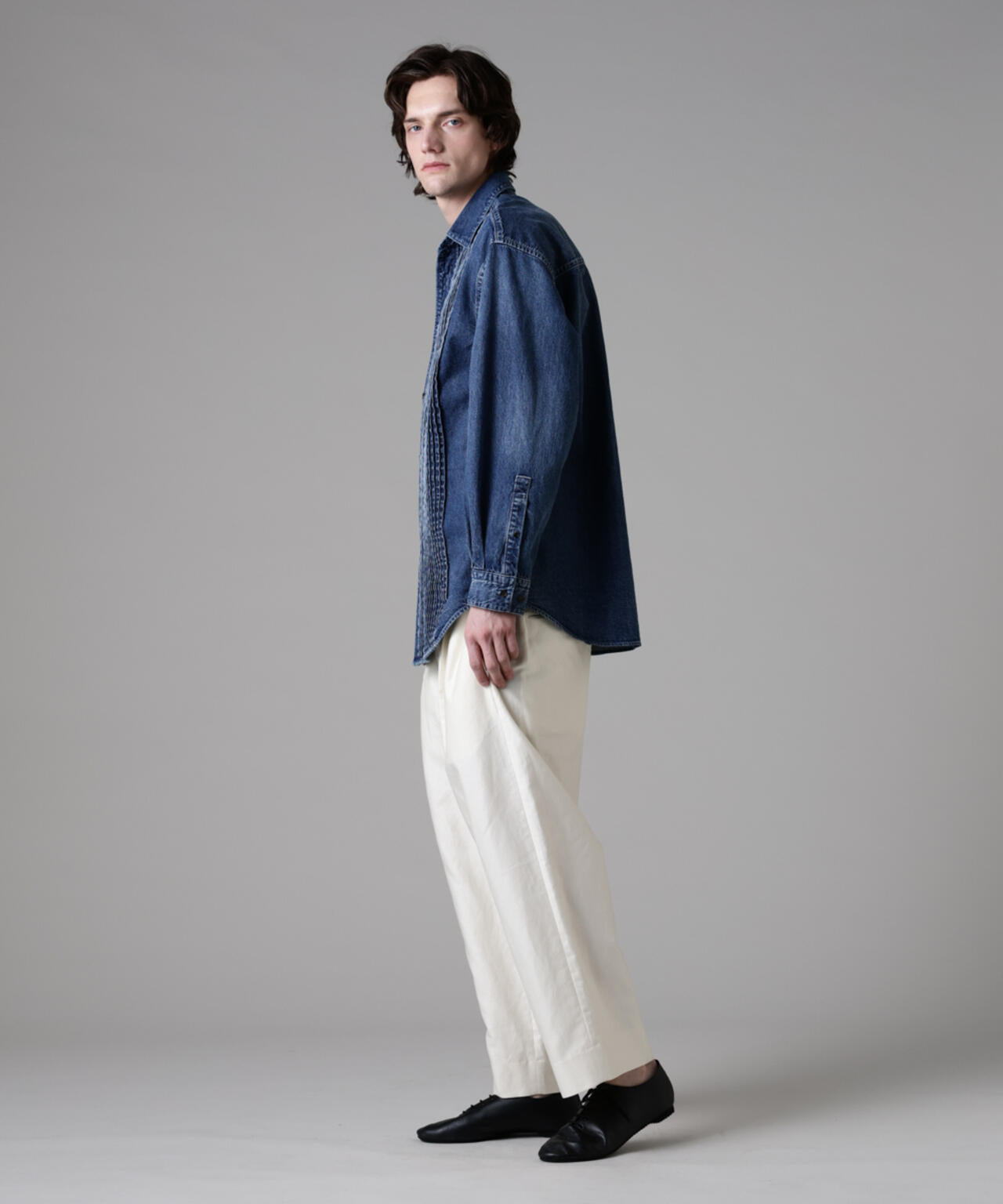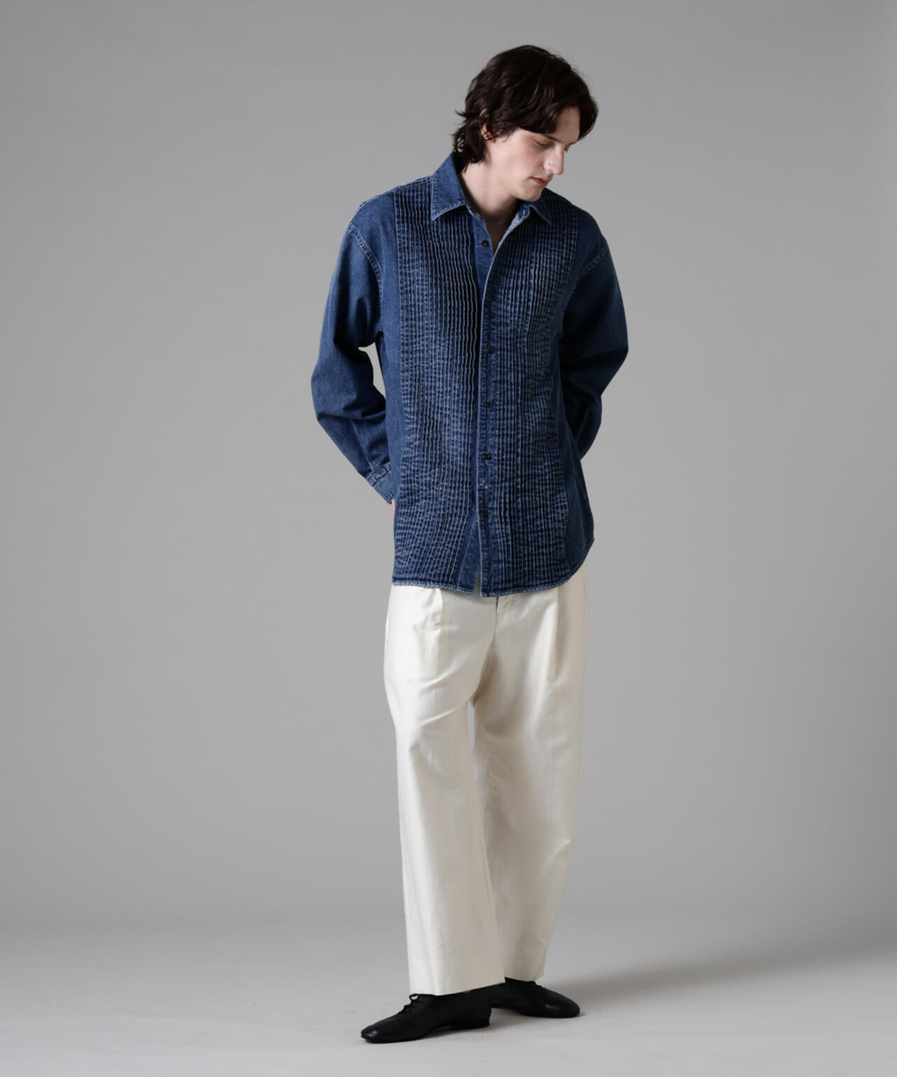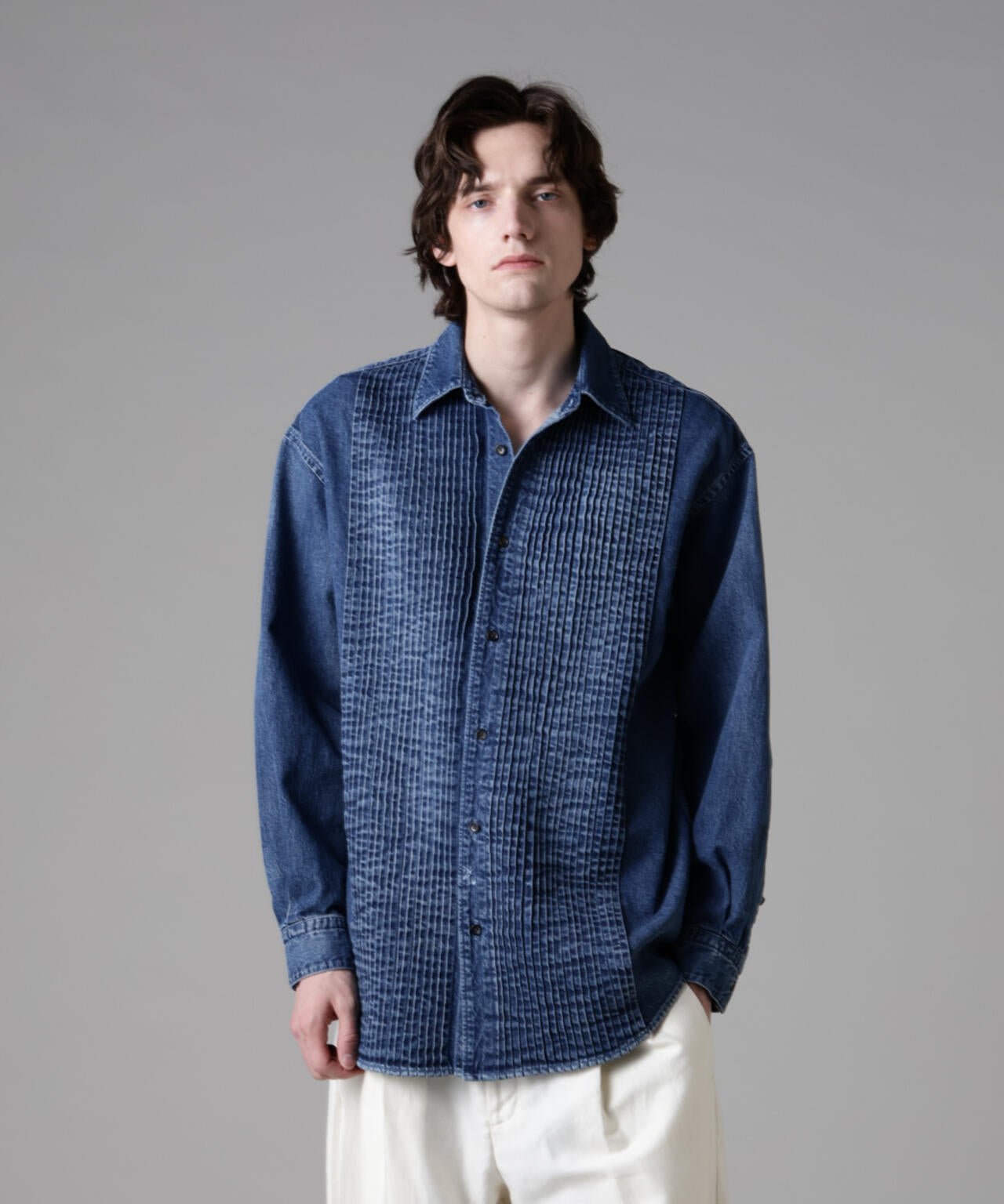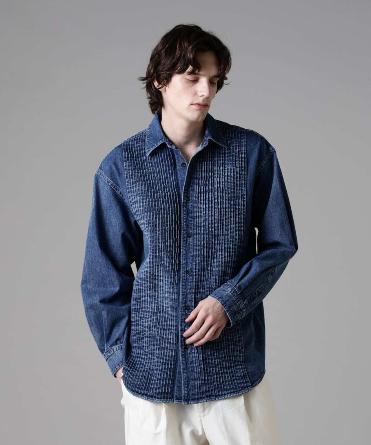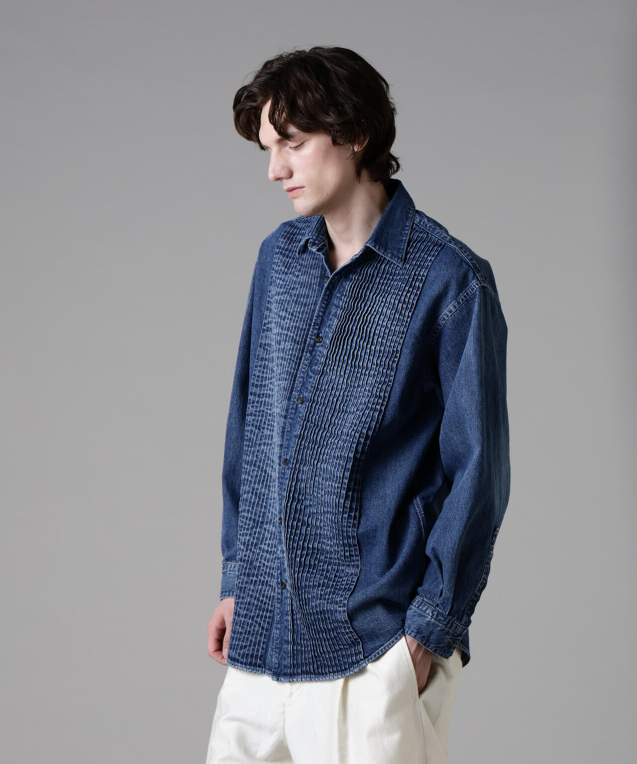 「ASSEMBLANC」ピンタックデニムシャツ
