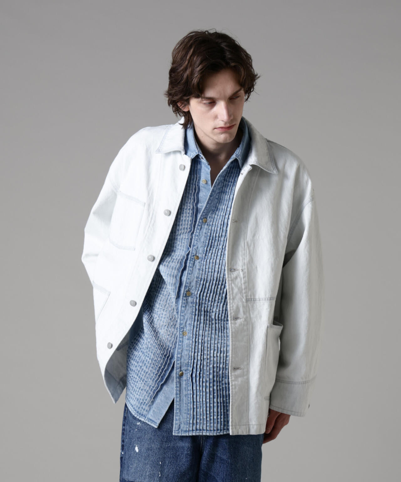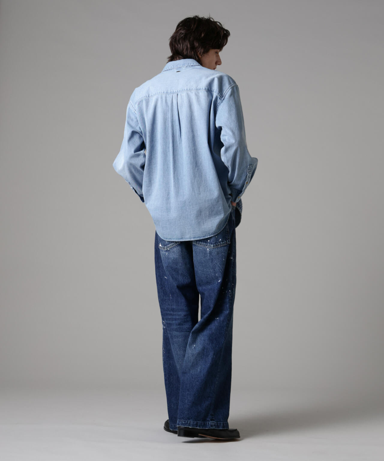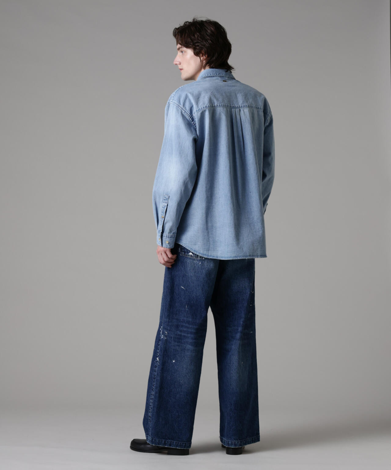 存在感のあるピンタックのデザインが目を惹くデニムシャツ。シャツに使われるシャンブレーではなく、敢えて少し薄めのデニムを使用することで迫力のある立体感と奥行きのあるヴィンテージ加工を可能にしました。インナーとしてだけではなく、シャツアウターとしても使用可能な3シーズン活躍する1着です。