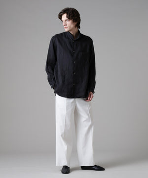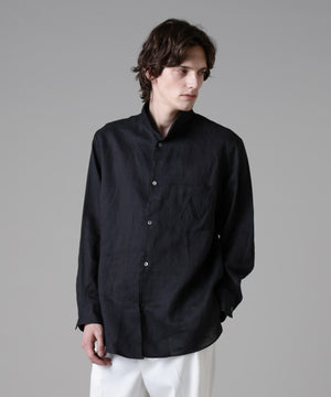 清涼感のある素材と一枚で様になるデザインが魅力のスタンドカラーシャツ。スタイリッシュで拘りの詰まったデザインがコーディネートのアクセントになる春夏オススメの一着です。