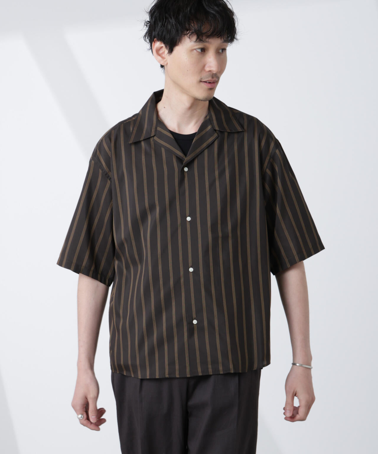 今シーズンより、パターンを全面的に見直し、更なるアップデートを行った「大人のワイドシャツ」シリーズの半袖オープンカラーシャツ。ストライプ柄が春夏のムードに最適な、おすすめの1着です。