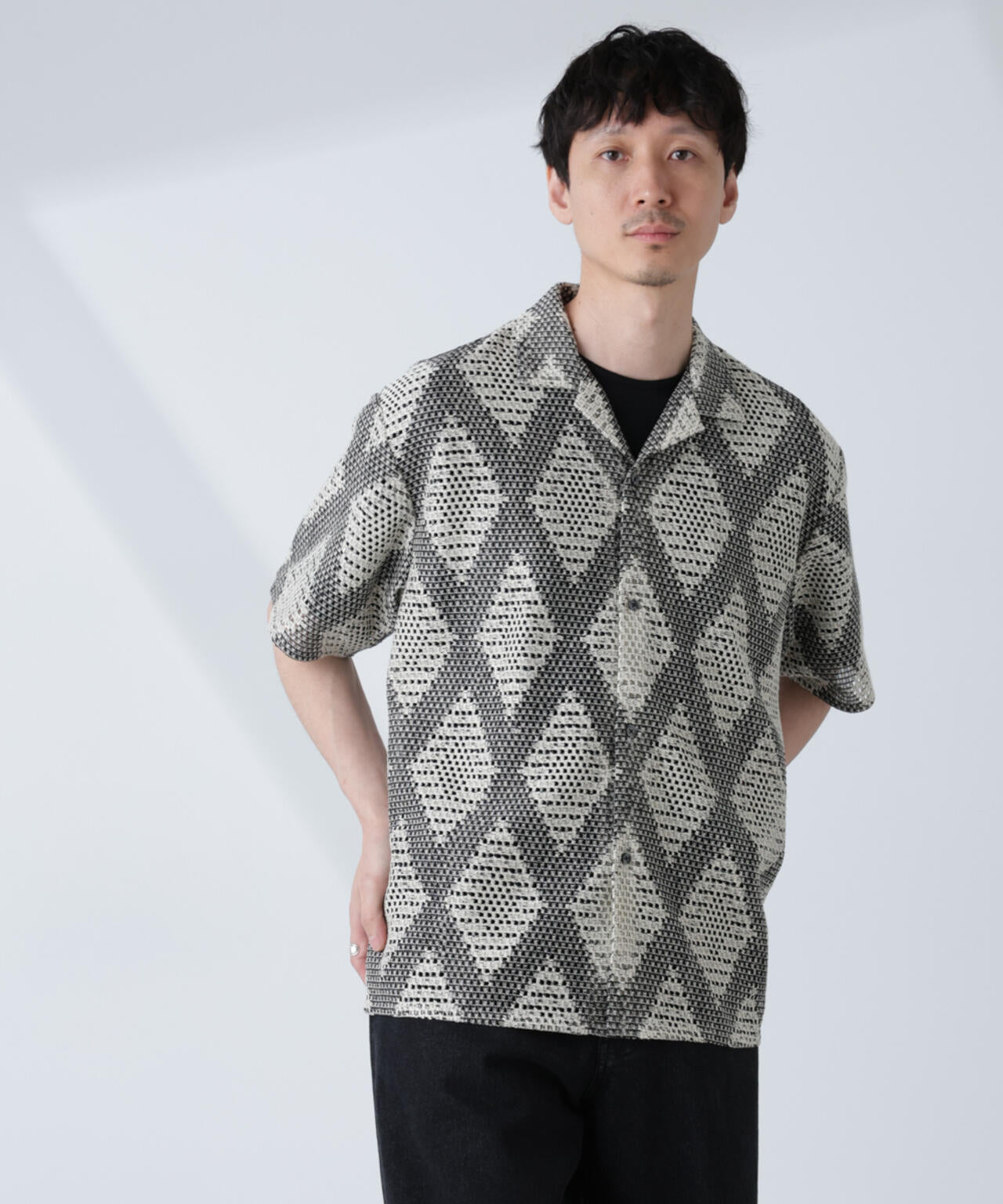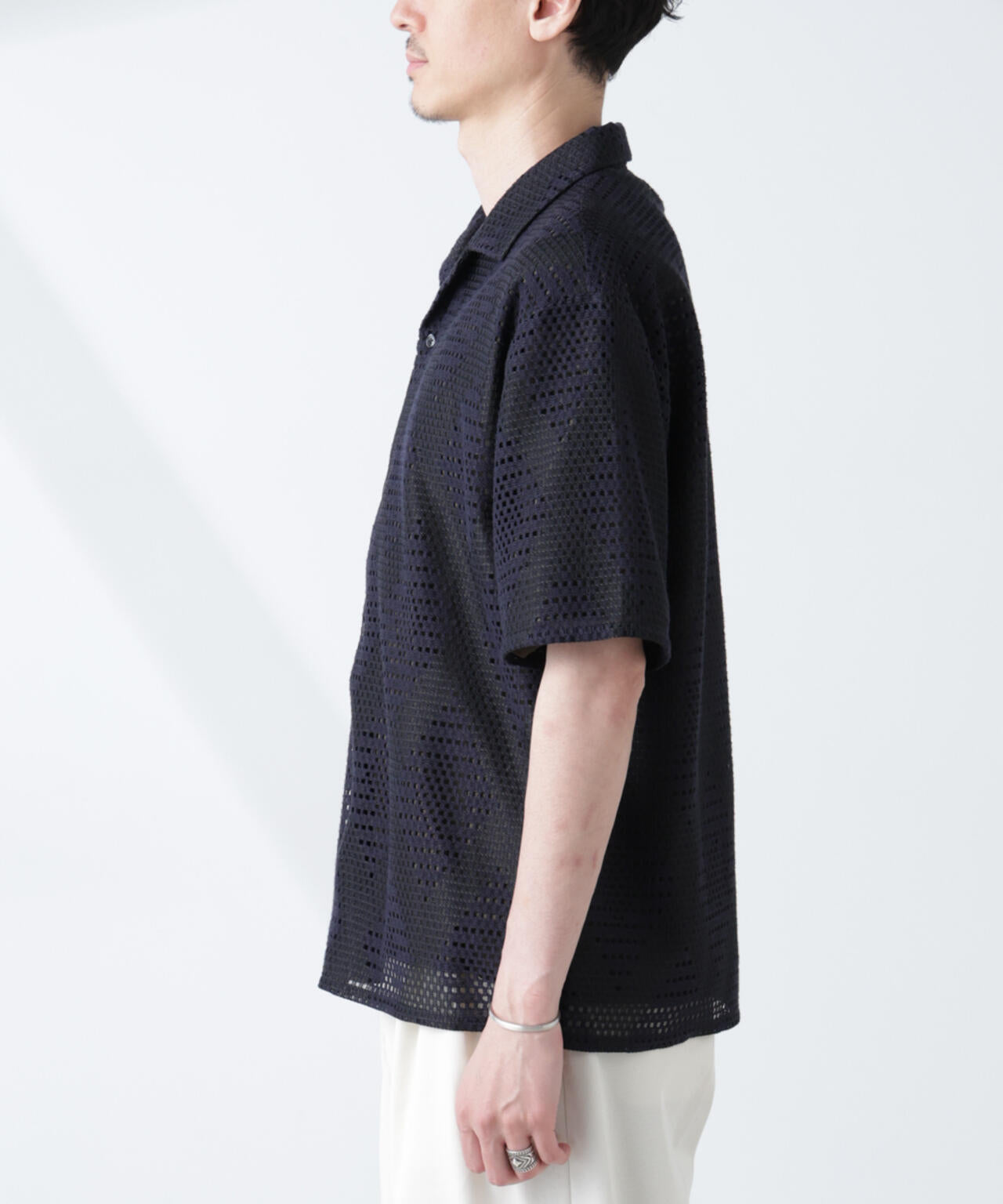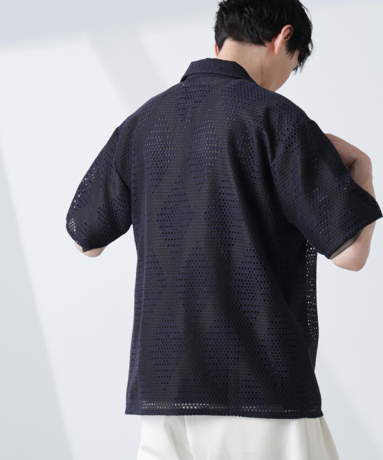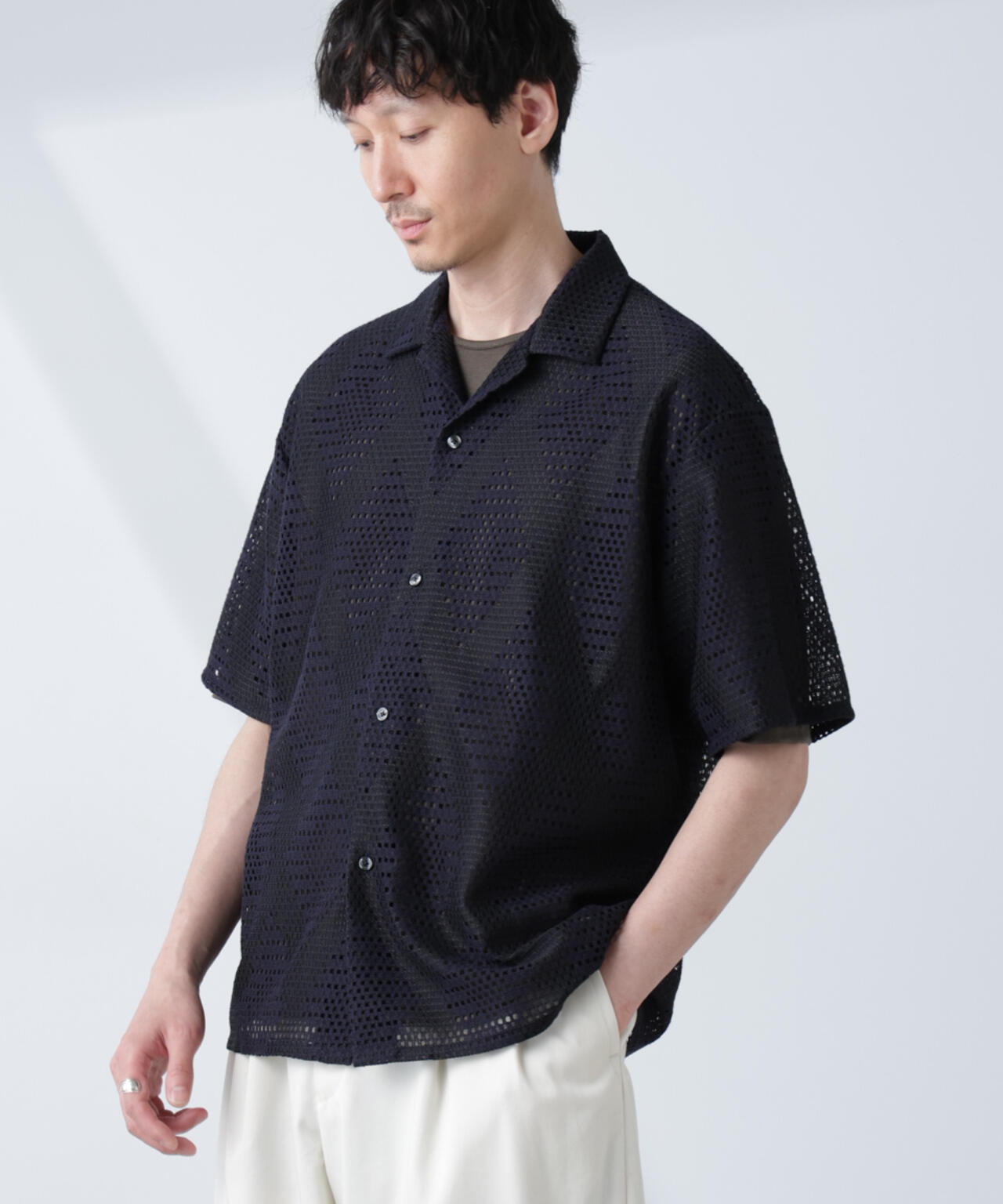 今期注目のオープンカラーデザインを採用した、ダイヤレースシャツ。Tシャツとの重ね着でも暑苦しくなく、単調なサマースタイルにアクセントを加えるアイテムです。