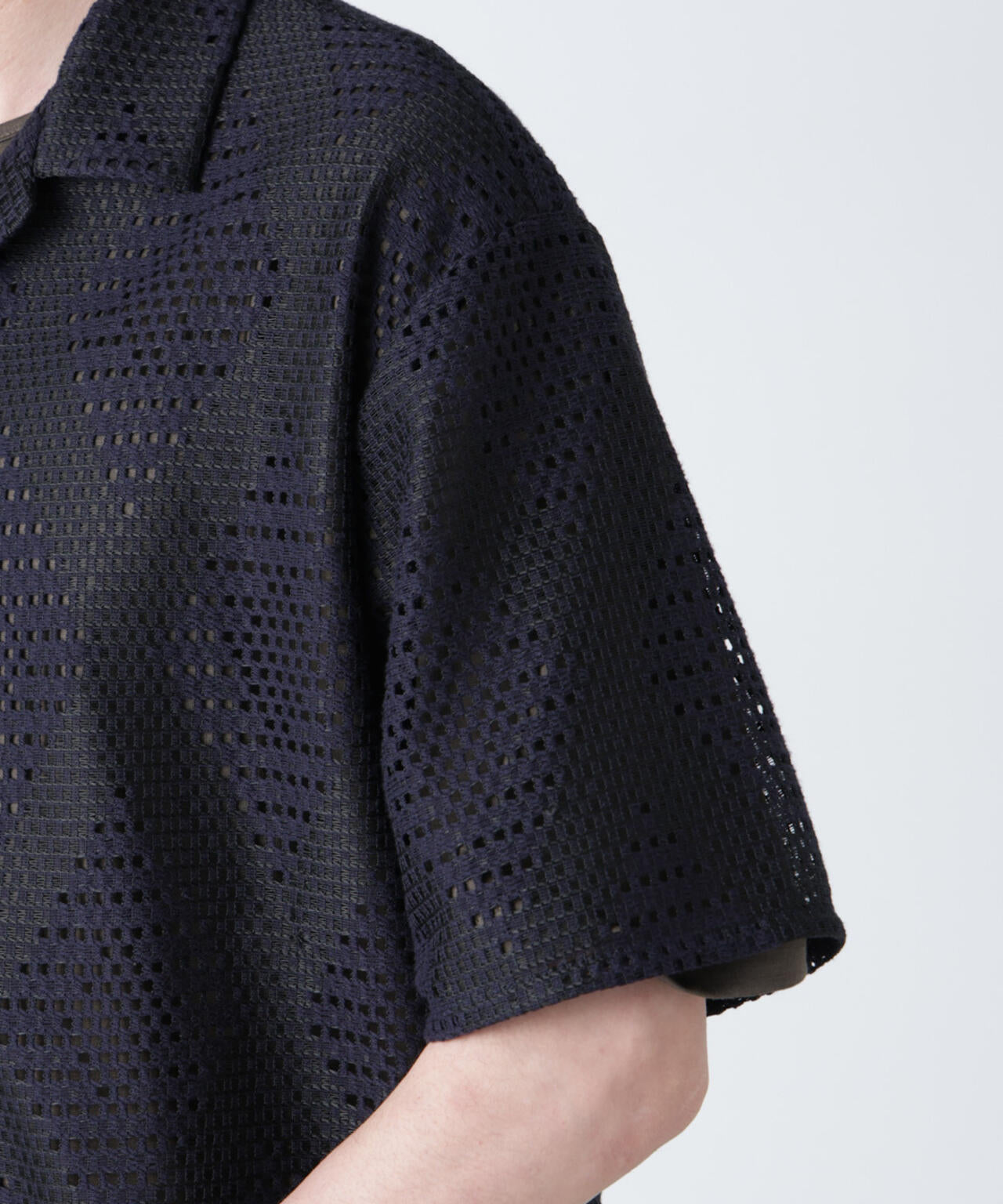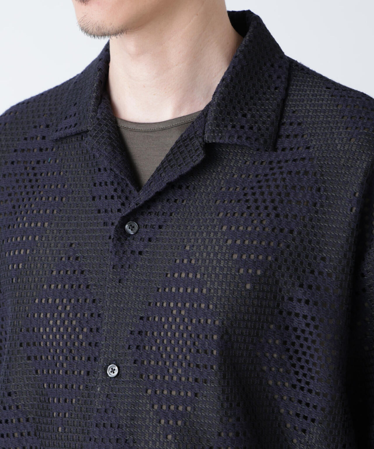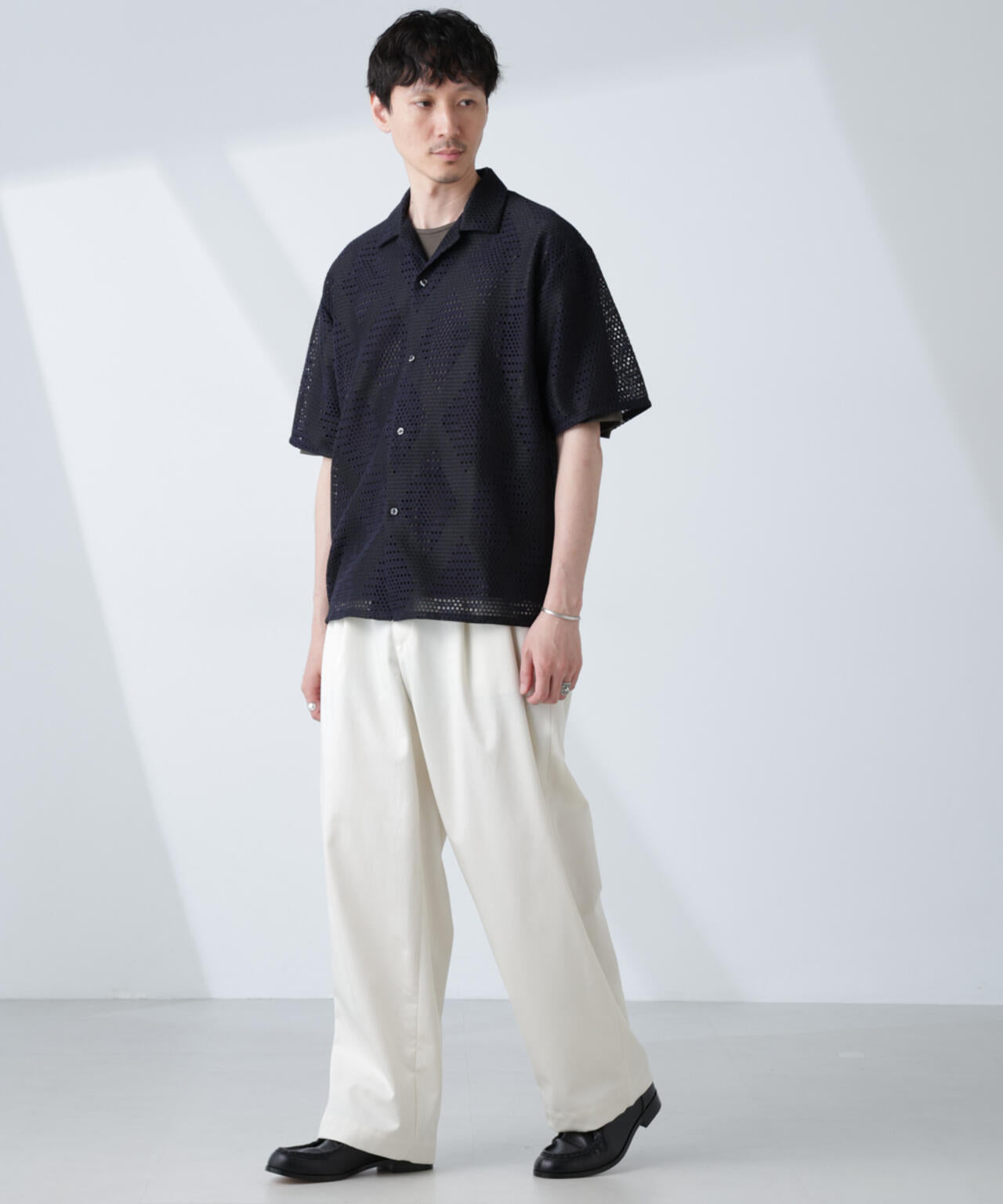 今期注目のオープンカラーデザインを採用した、ダイヤレースシャツ。Tシャツとの重ね着でも暑苦しくなく、単調なサマースタイルにアクセントを加えるアイテムです。