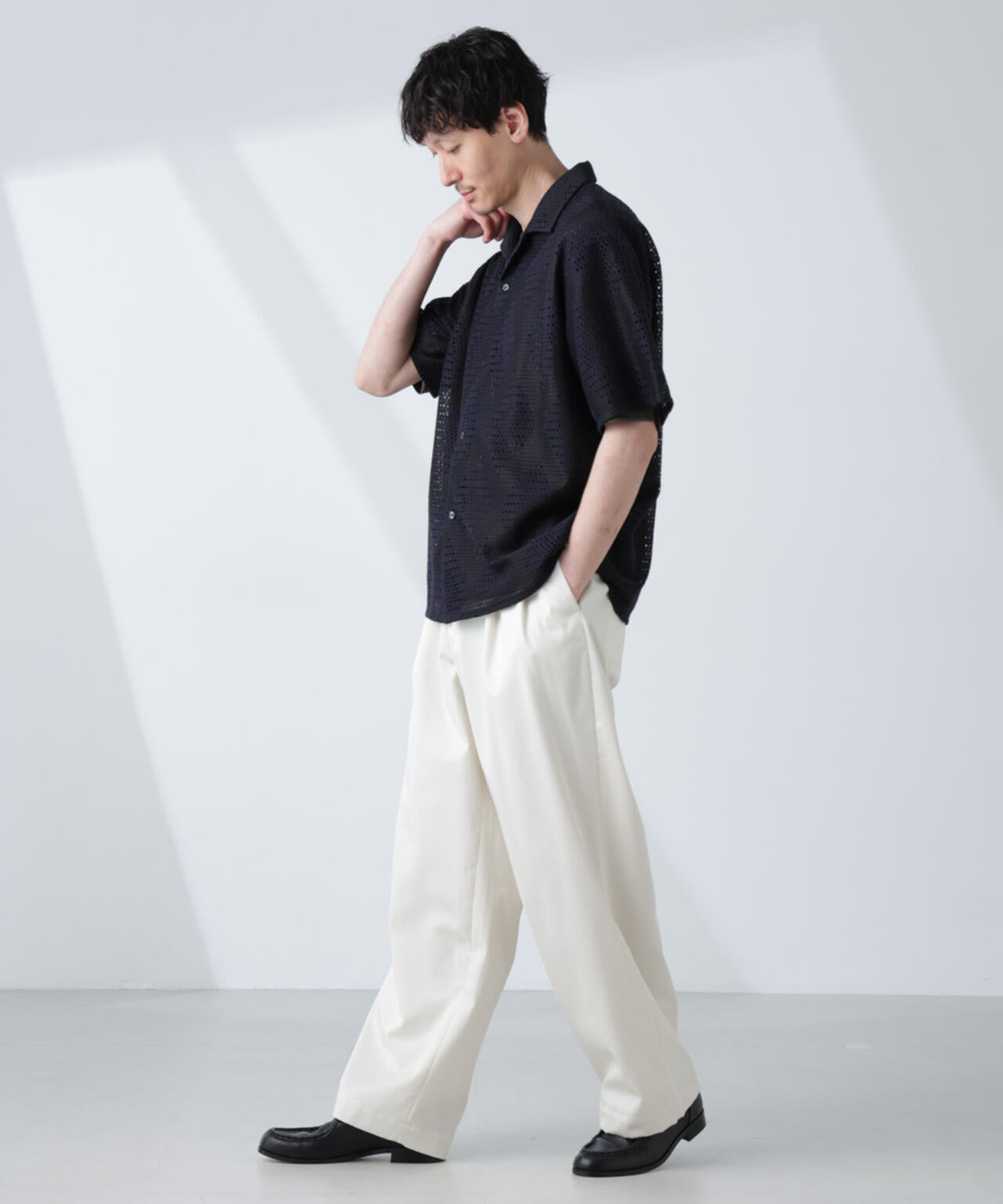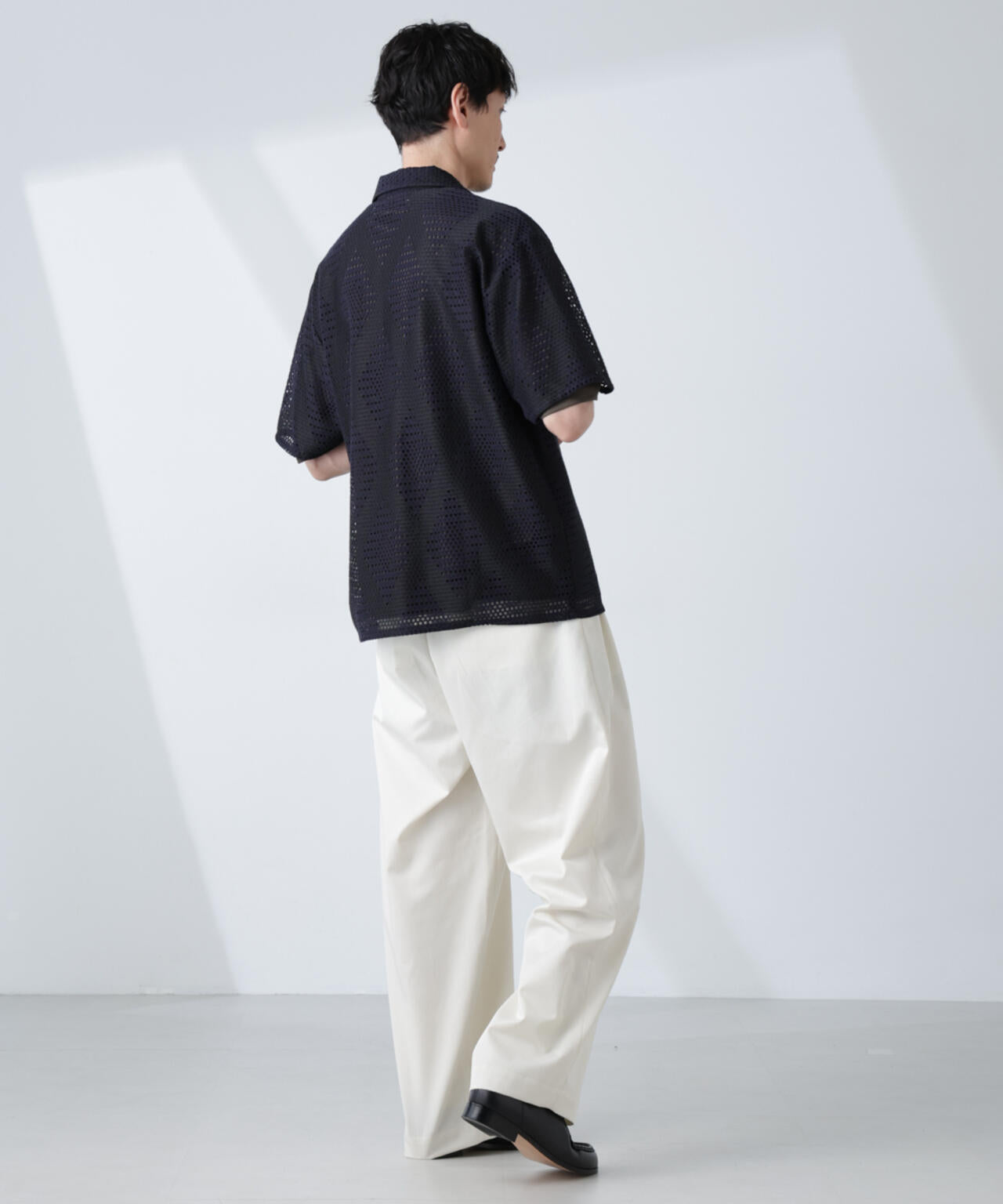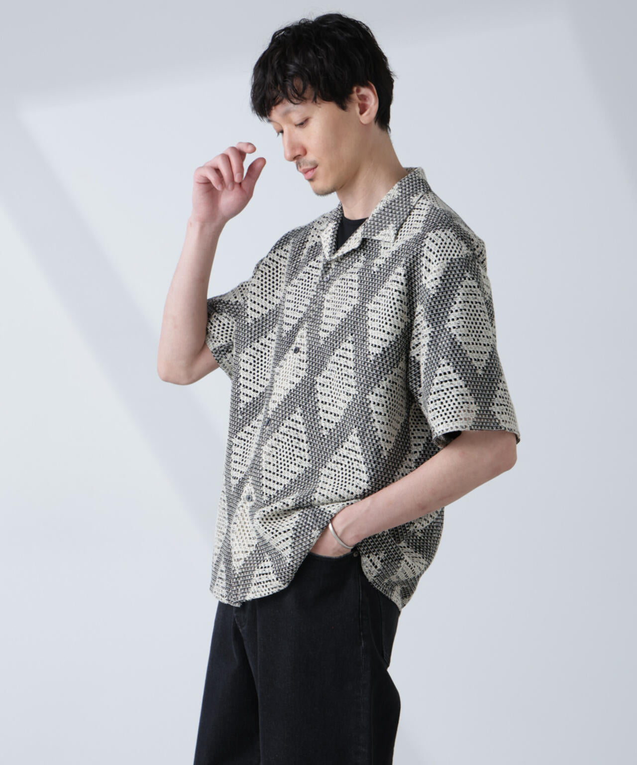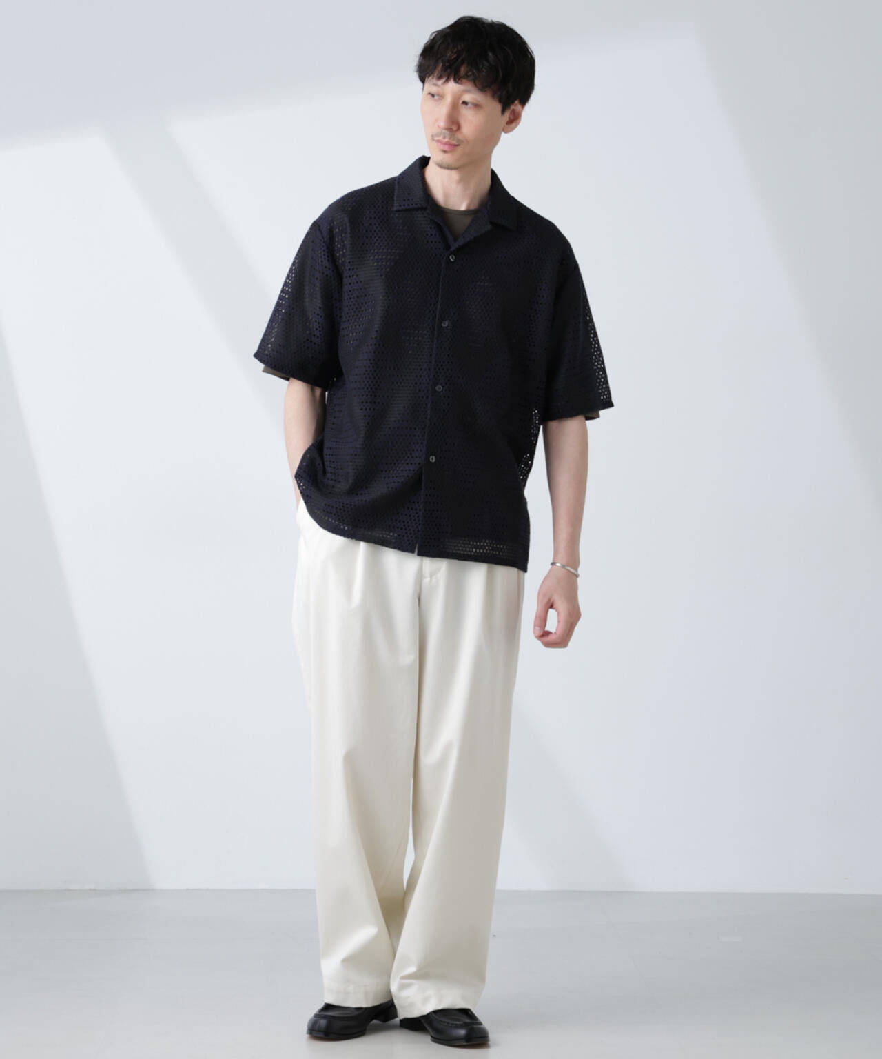 今期注目のオープンカラーデザインを採用した、ダイヤレースシャツ。Tシャツとの重ね着でも暑苦しくなく、単調なサマースタイルにアクセントを加えるアイテムです。
