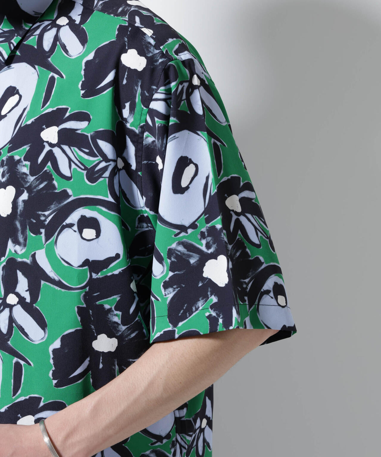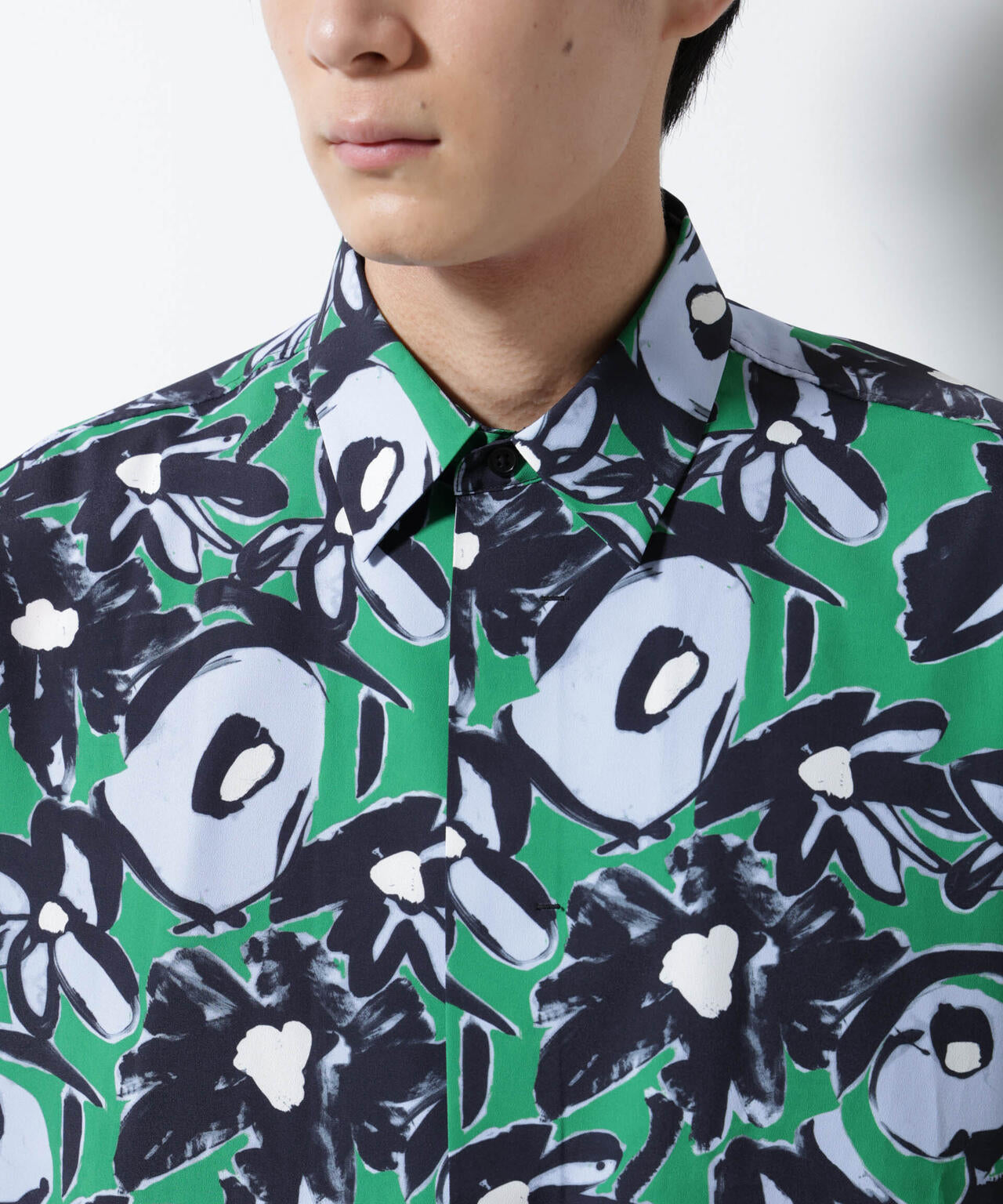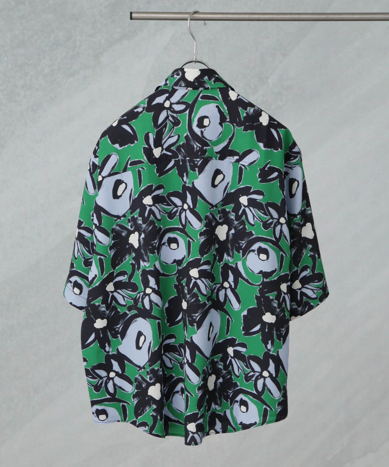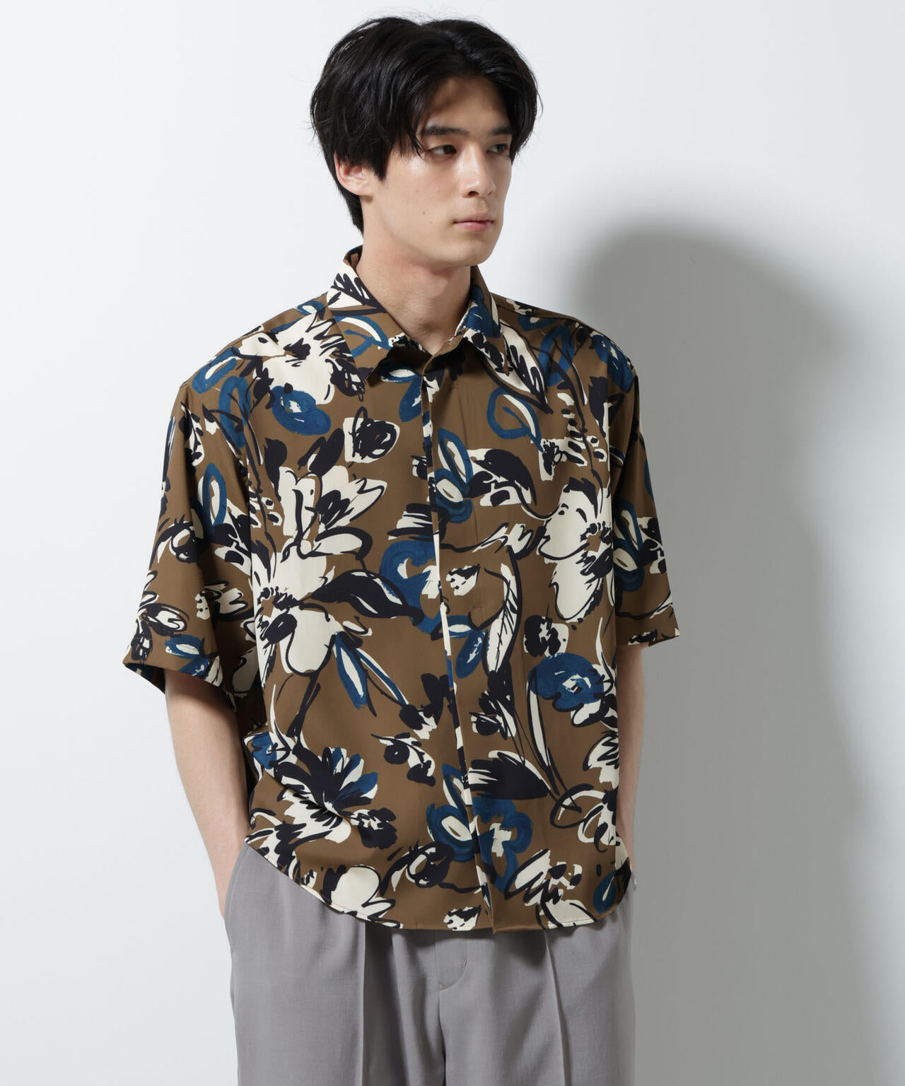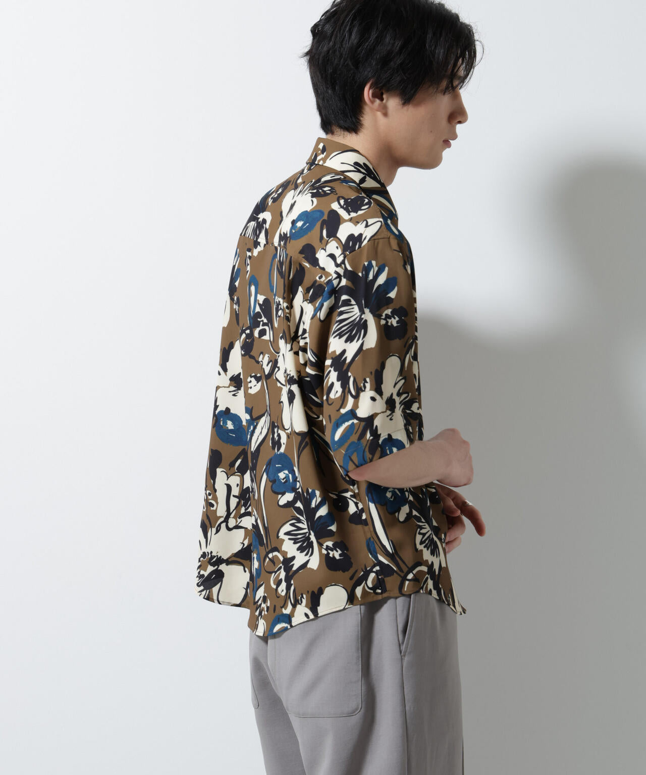 大柄のボタニカル柄を採用したトレンド感のある色彩鮮やかなシャツ。今春夏のトレンドである大きな柄のシャツは着るだけで気分が高揚する、おすすめのアイテムです。