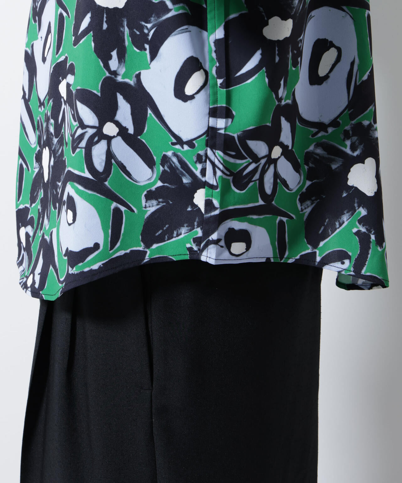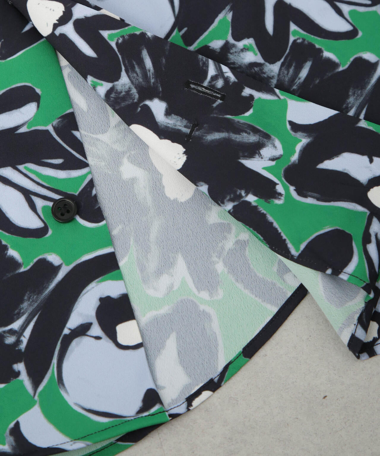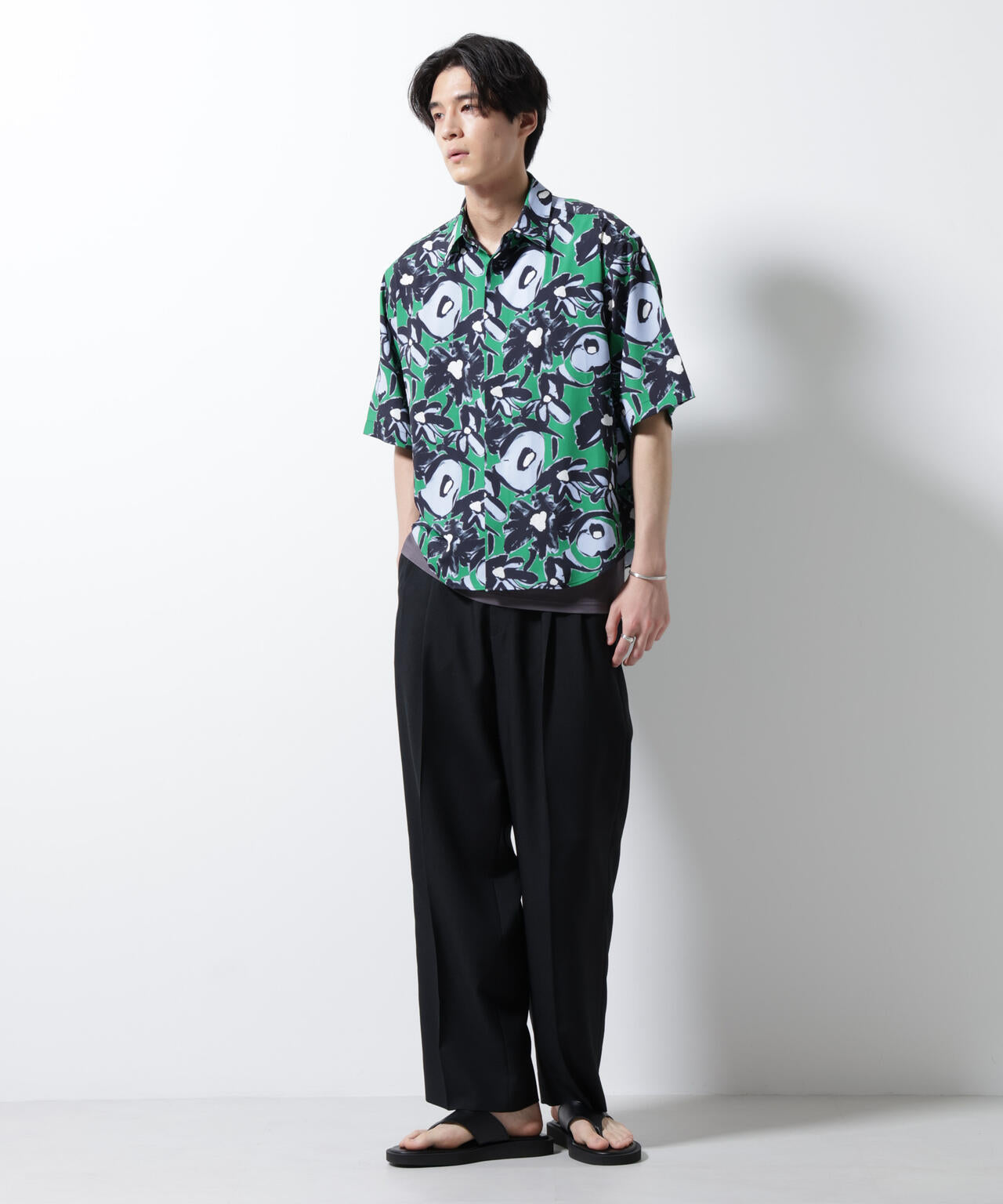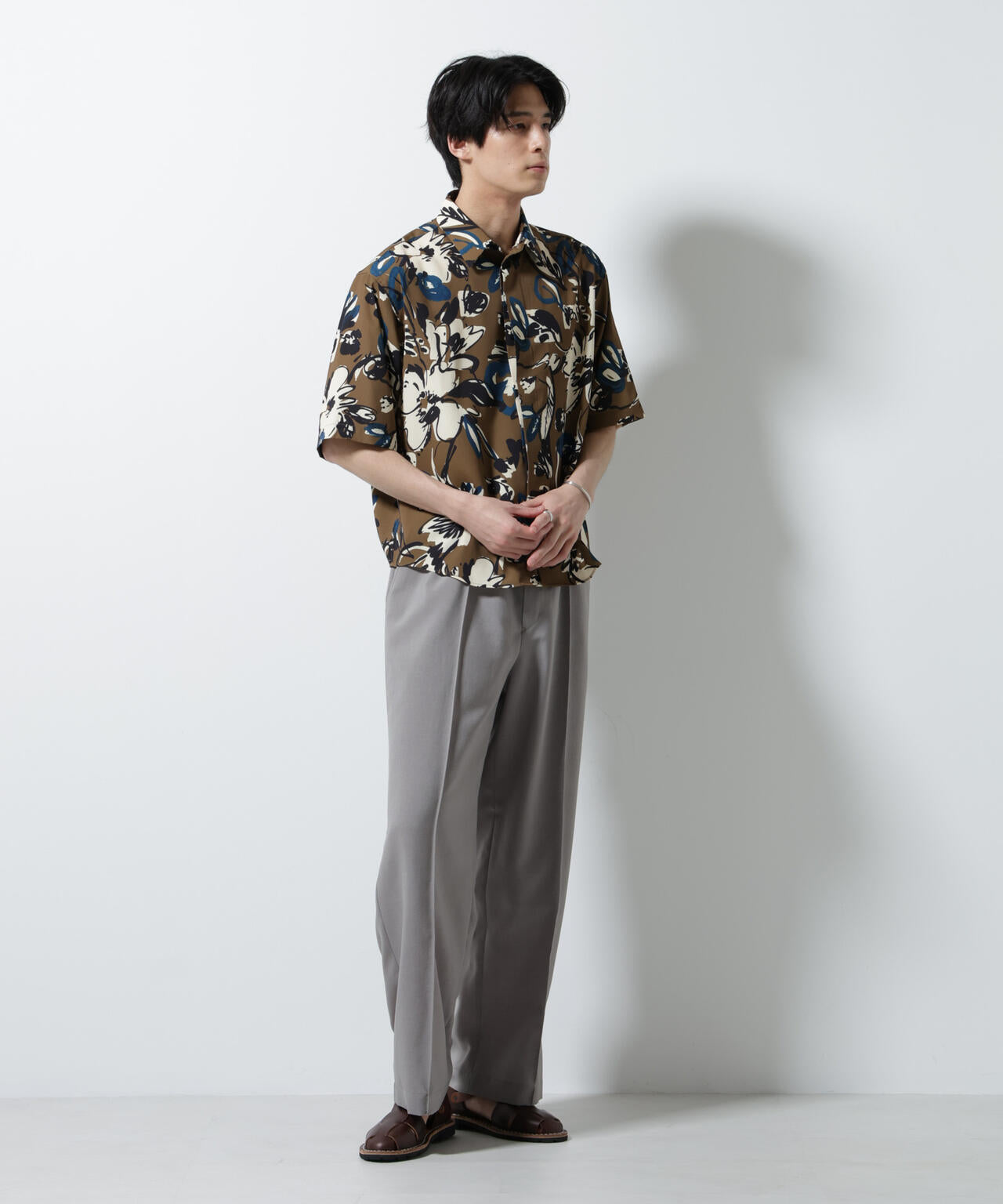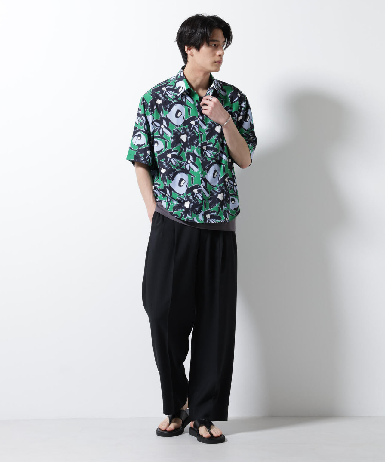 大柄のボタニカル柄を採用したトレンド感のある色彩鮮やかなシャツ。今春夏のトレンドである大きな柄のシャツは着るだけで気分が高揚する、おすすめのアイテムです。