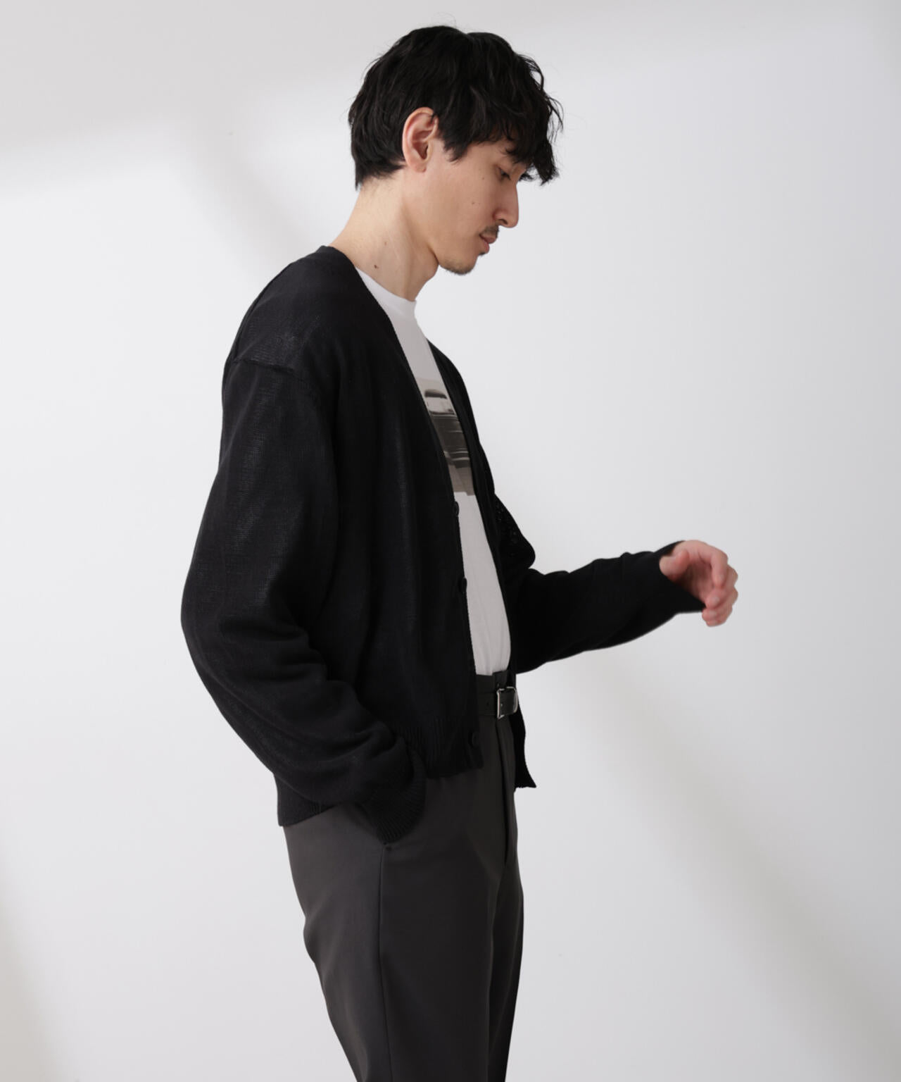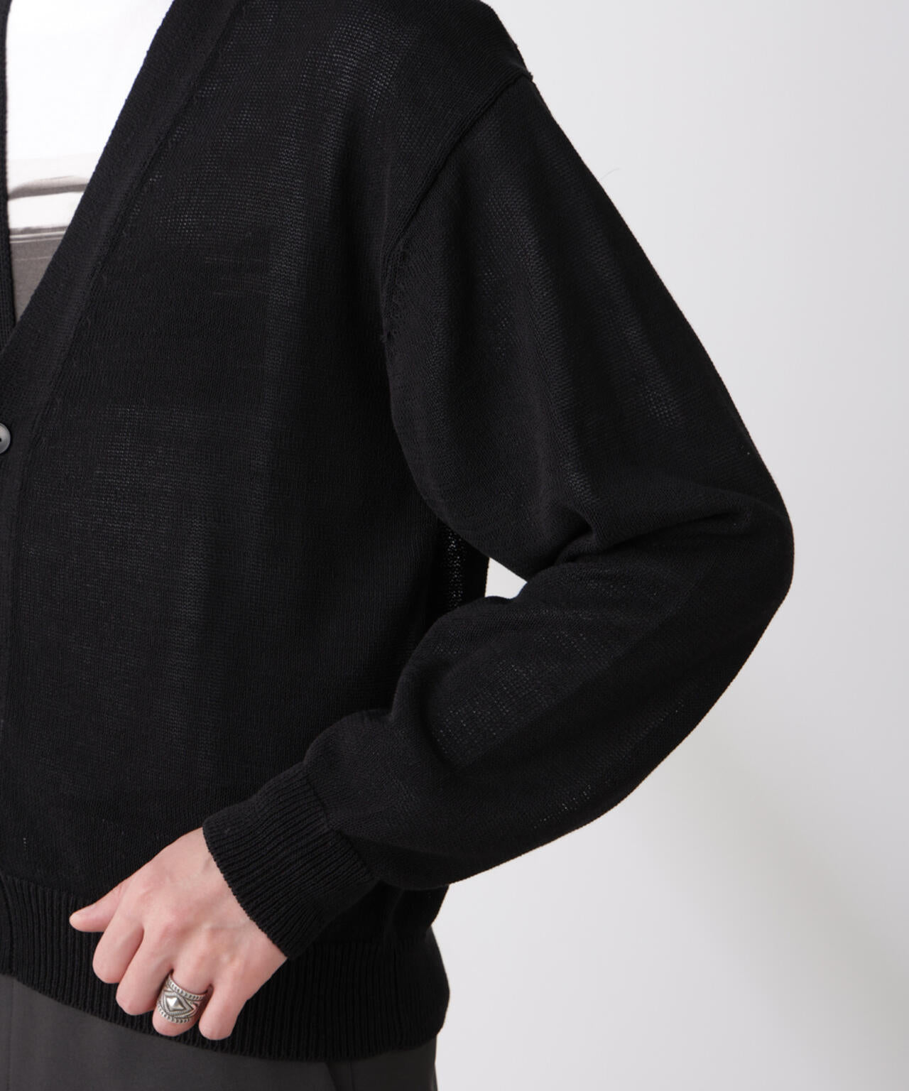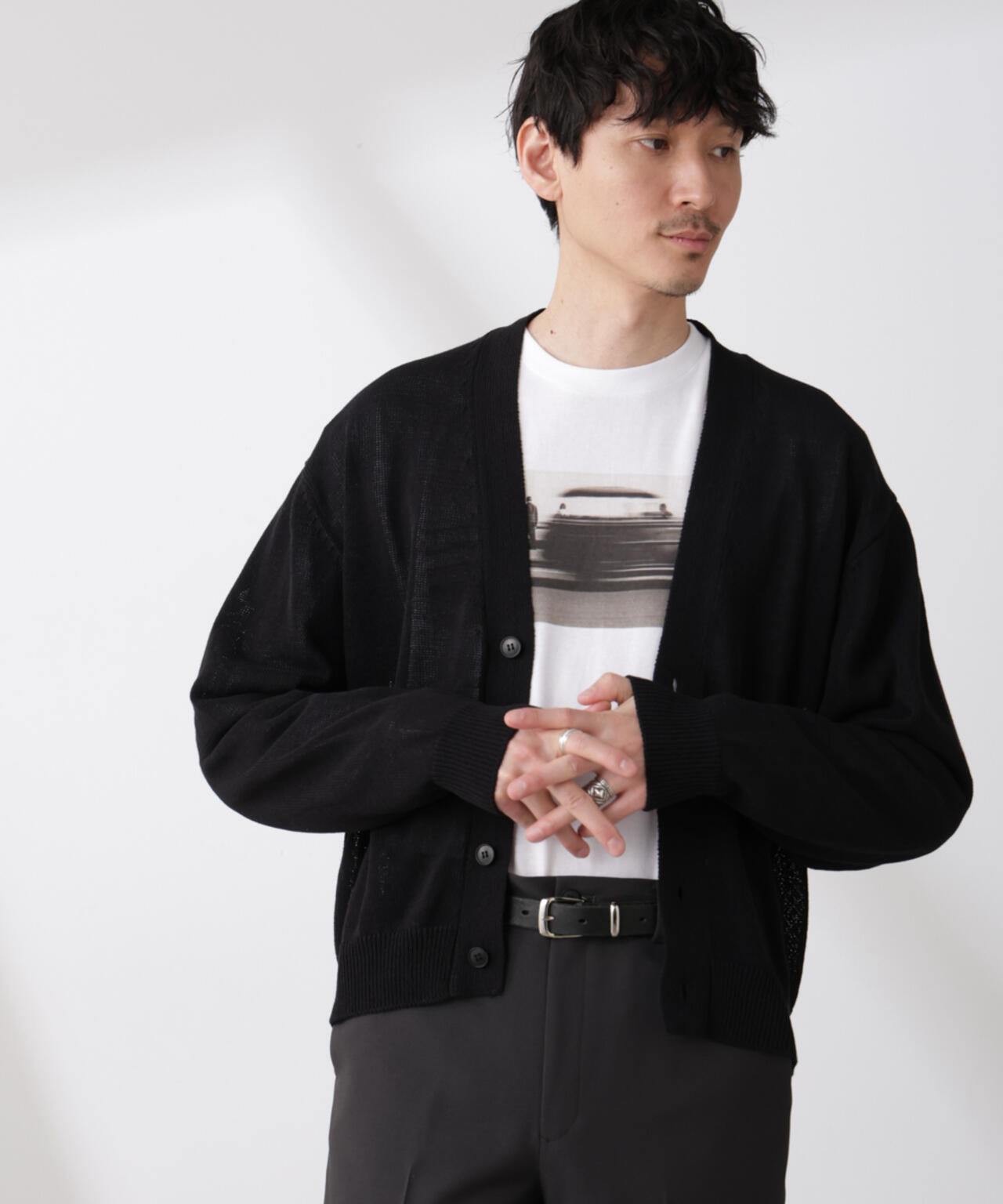 トレンドであるシアーな編地を使用したニットカーディガン。大人でも着用しやすいよう透け過ぎない編地に仕上げたました。程よいリラックス感のあるシルエットも相まって抜け感のあるムードを演出できるアイテムです。
