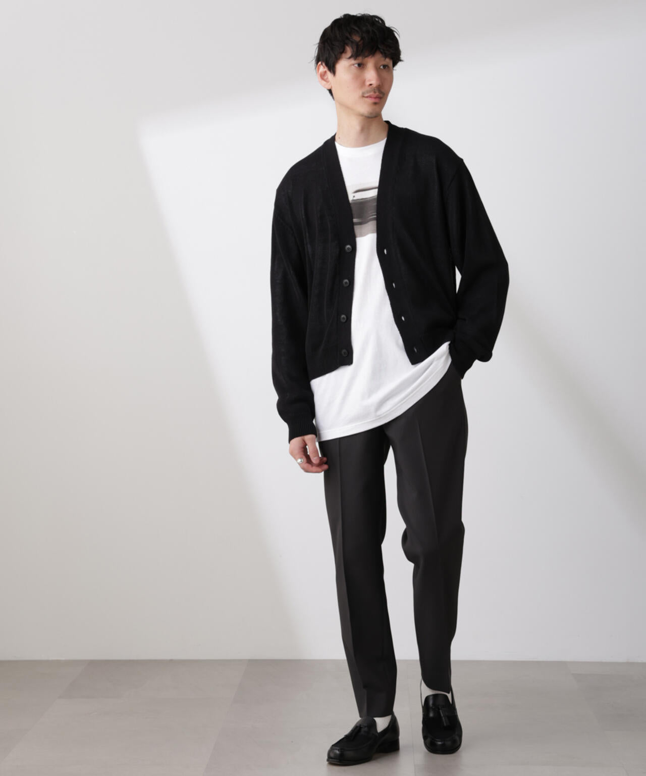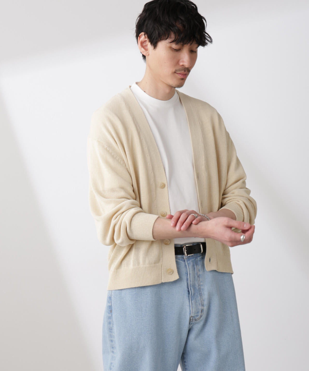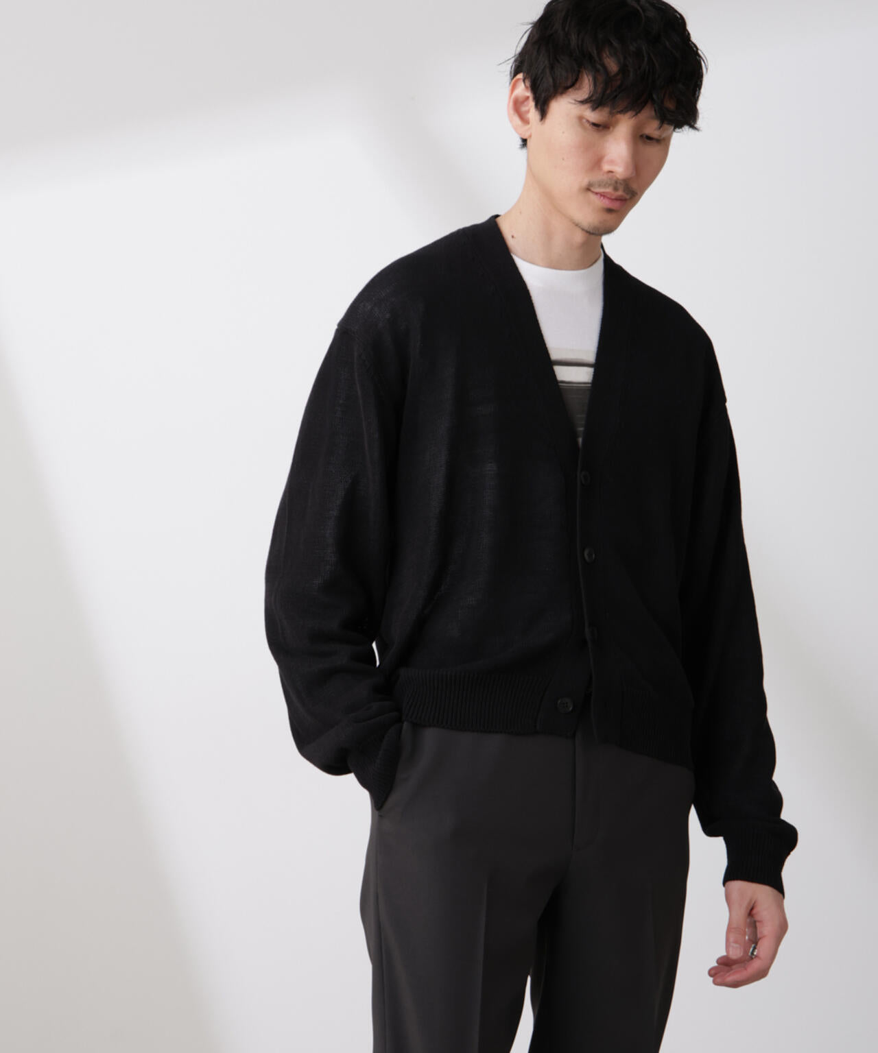 トレンドであるシアーな編地を使用したニットカーディガン。大人でも着用しやすいよう透け過ぎない編地に仕上げたました。程よいリラックス感のあるシルエットも相まって抜け感のあるムードを演出できるアイテムです。