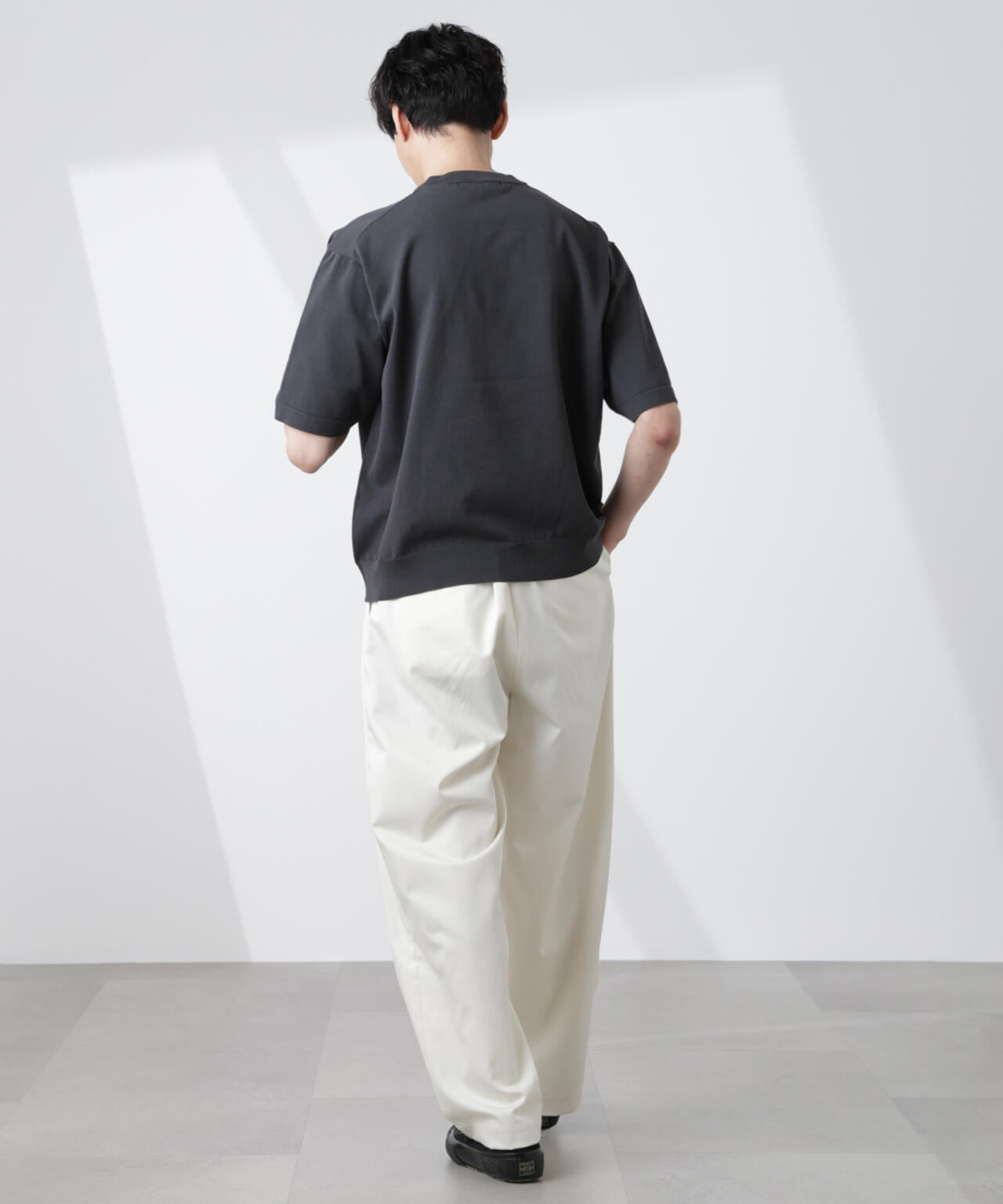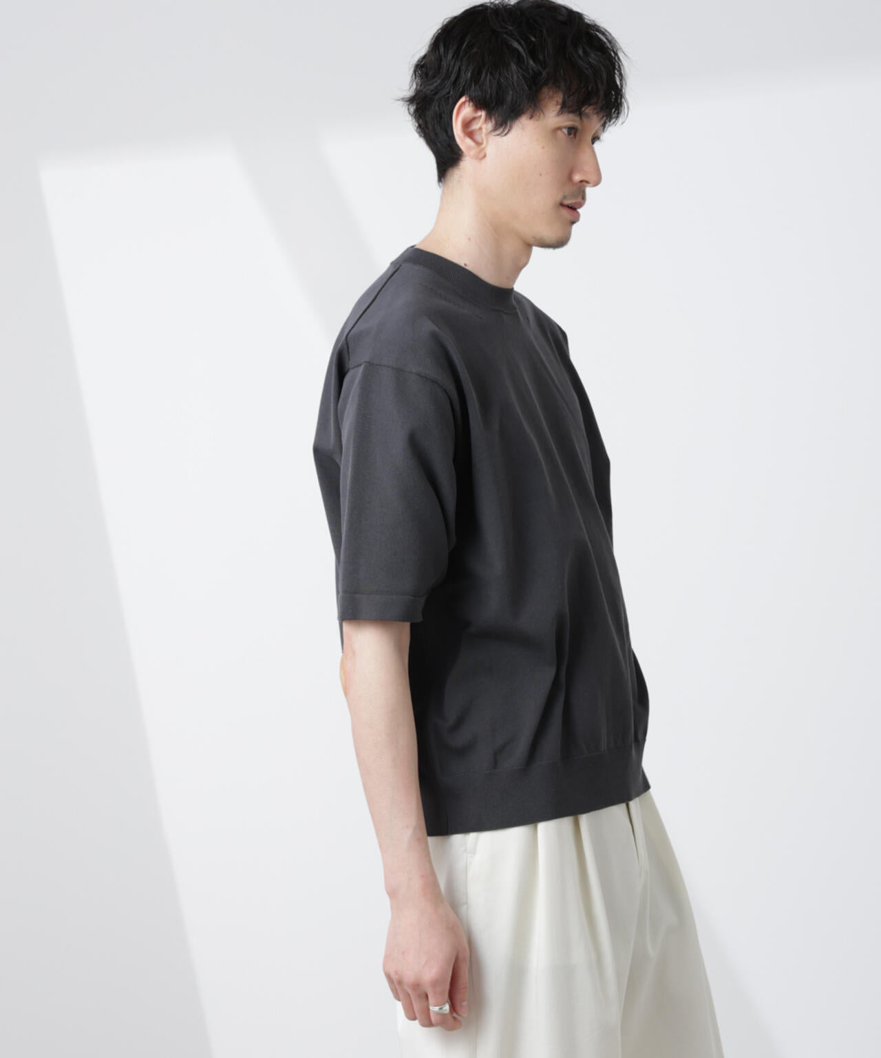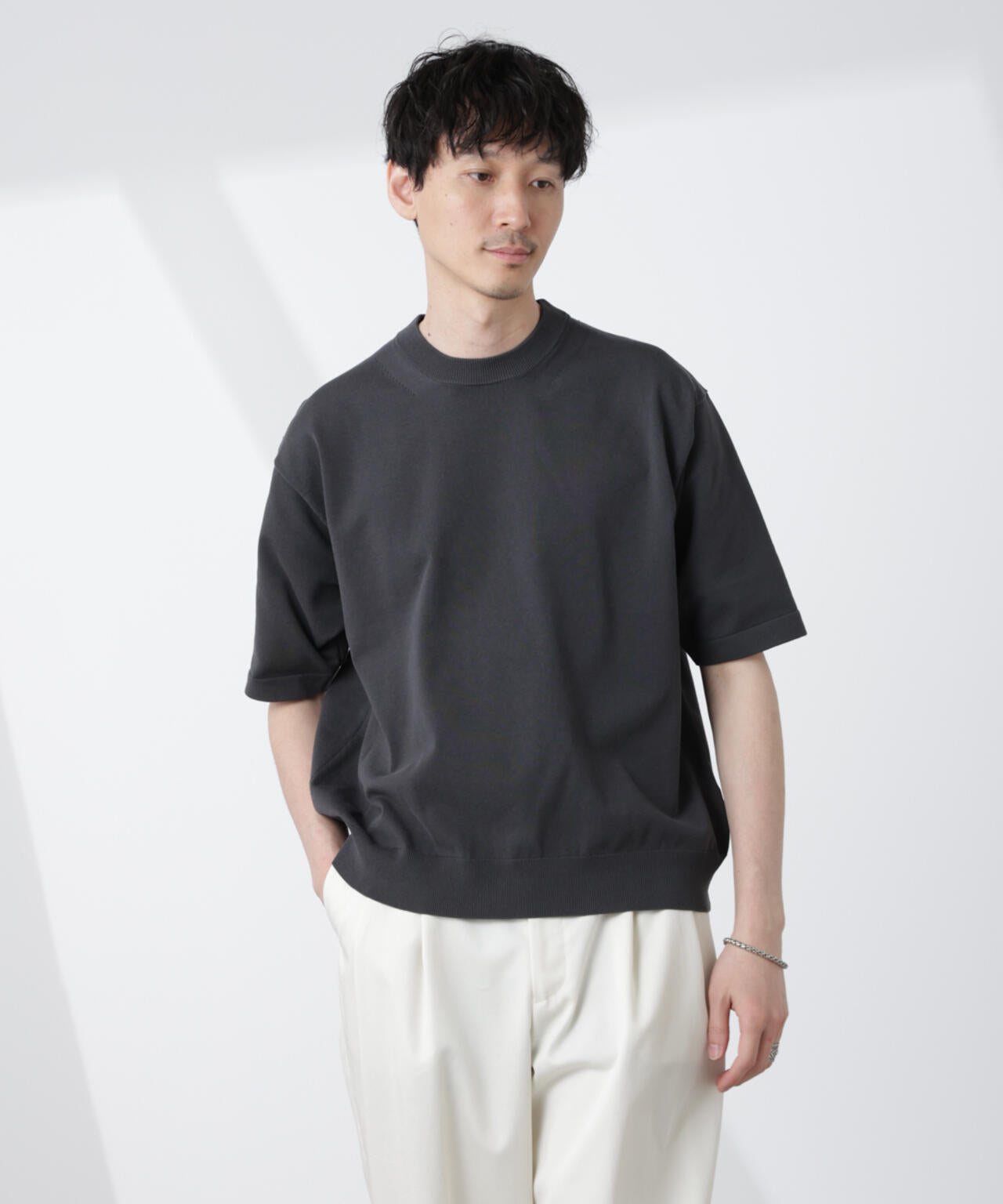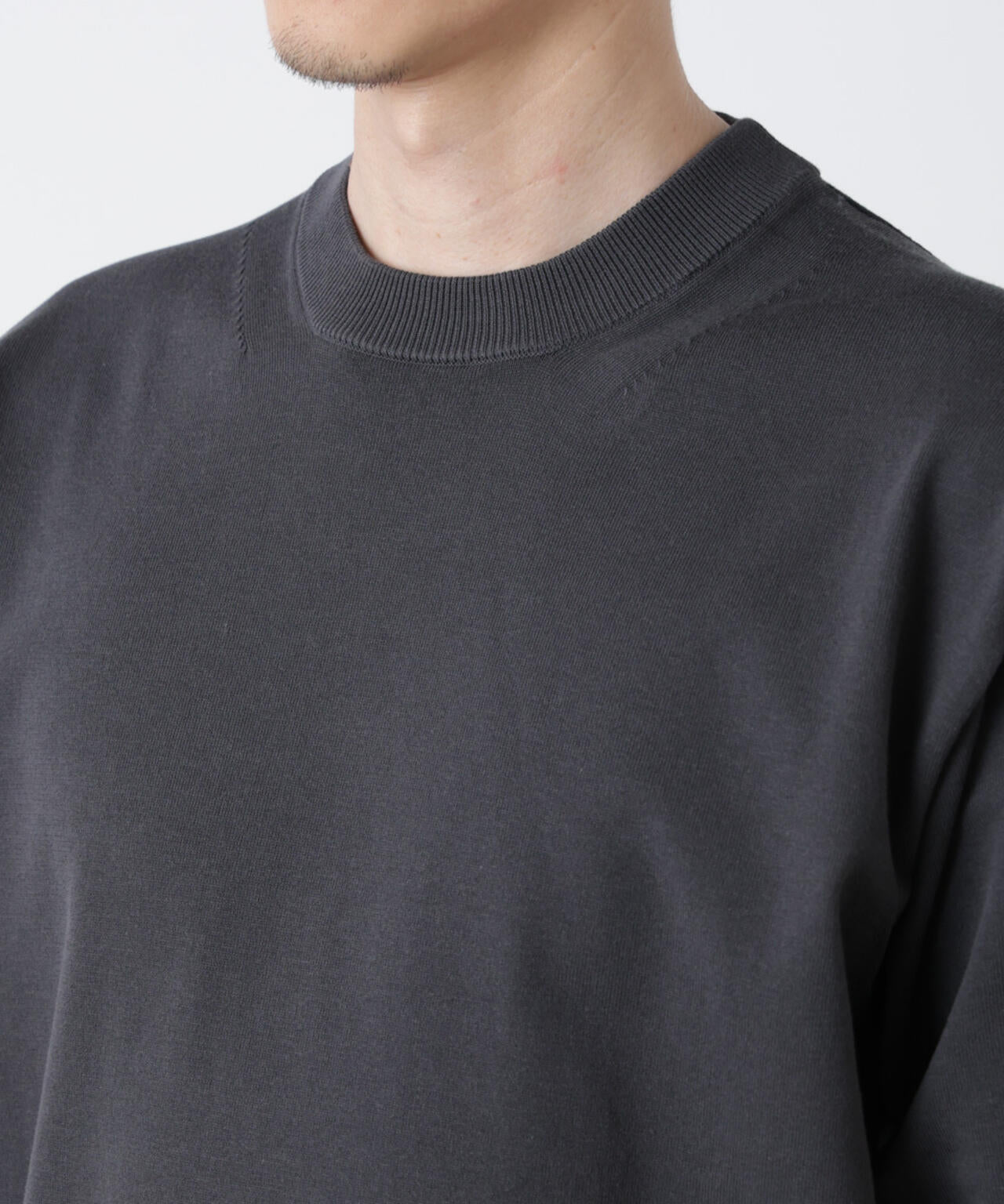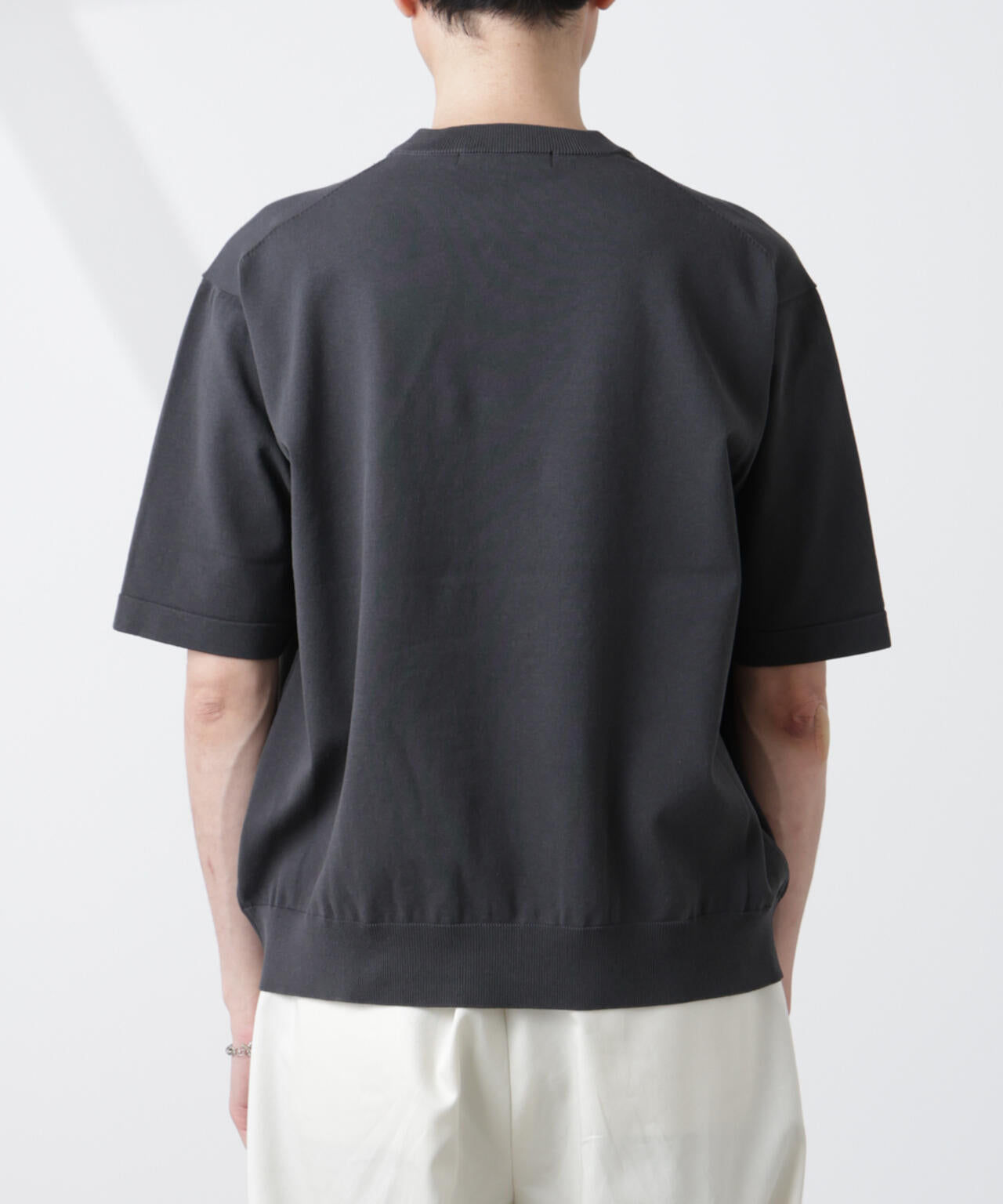 24SSで好評だった二重組織の天竺編みを使用したニットクルーネックTEE。幅広いスタイルに合わせやすいシンプルデザインでデイリーシーンに重宝します。