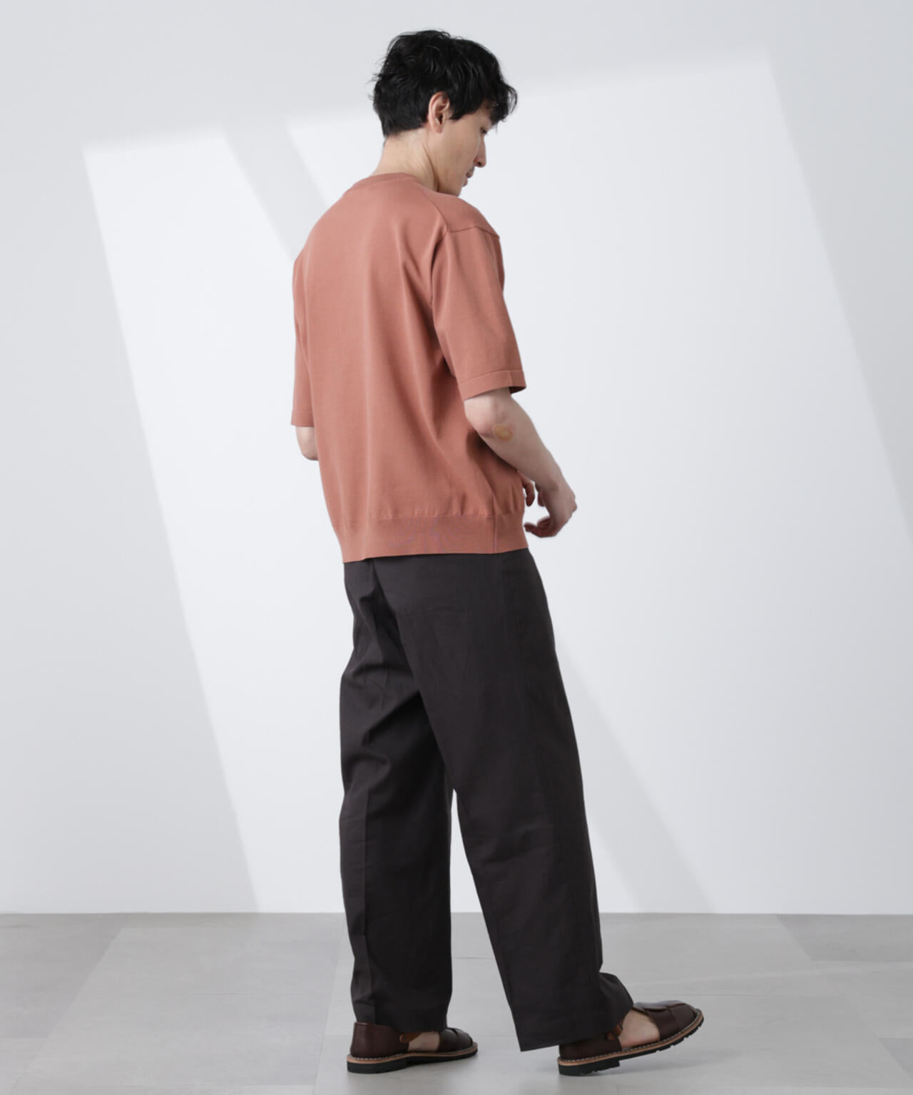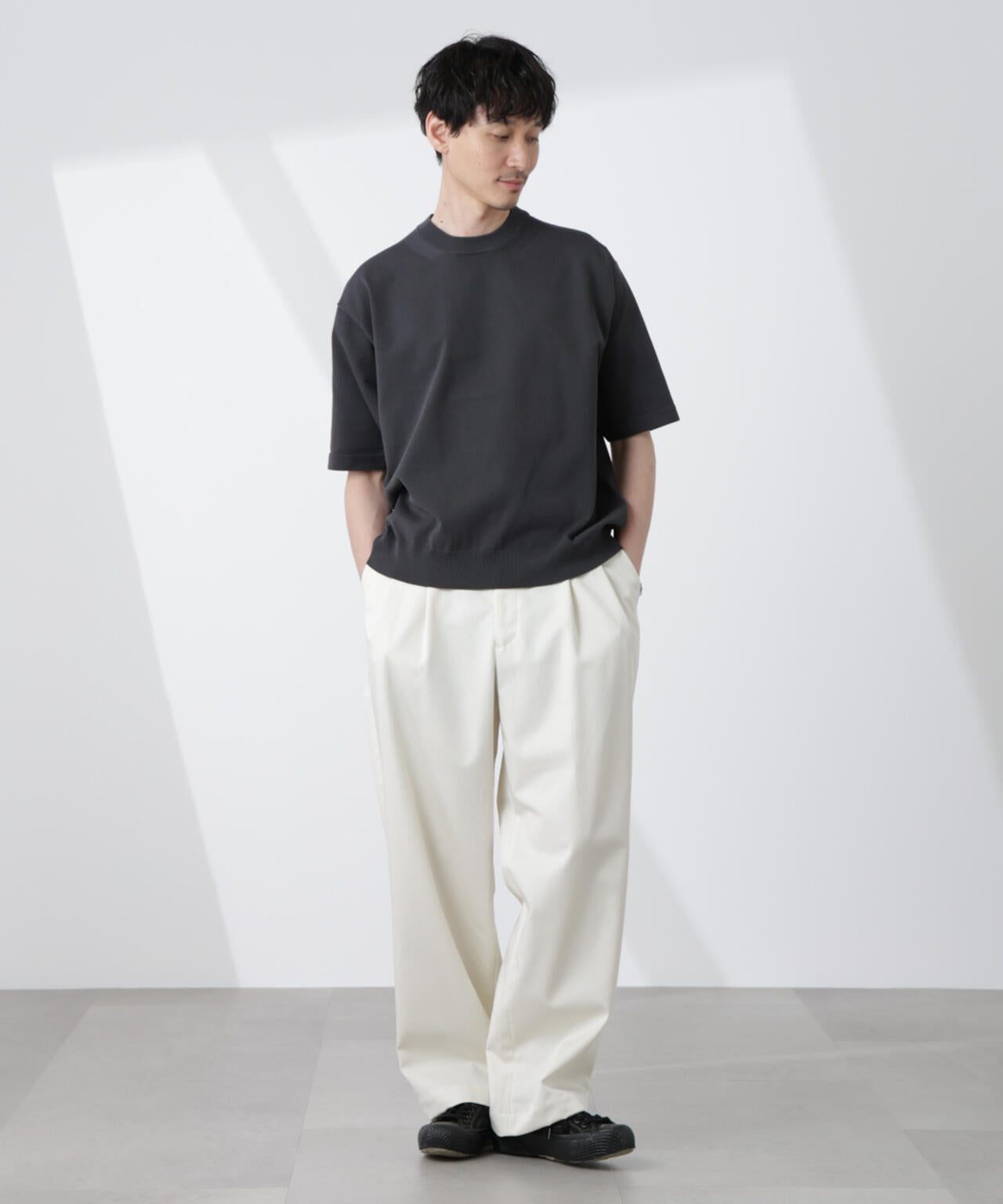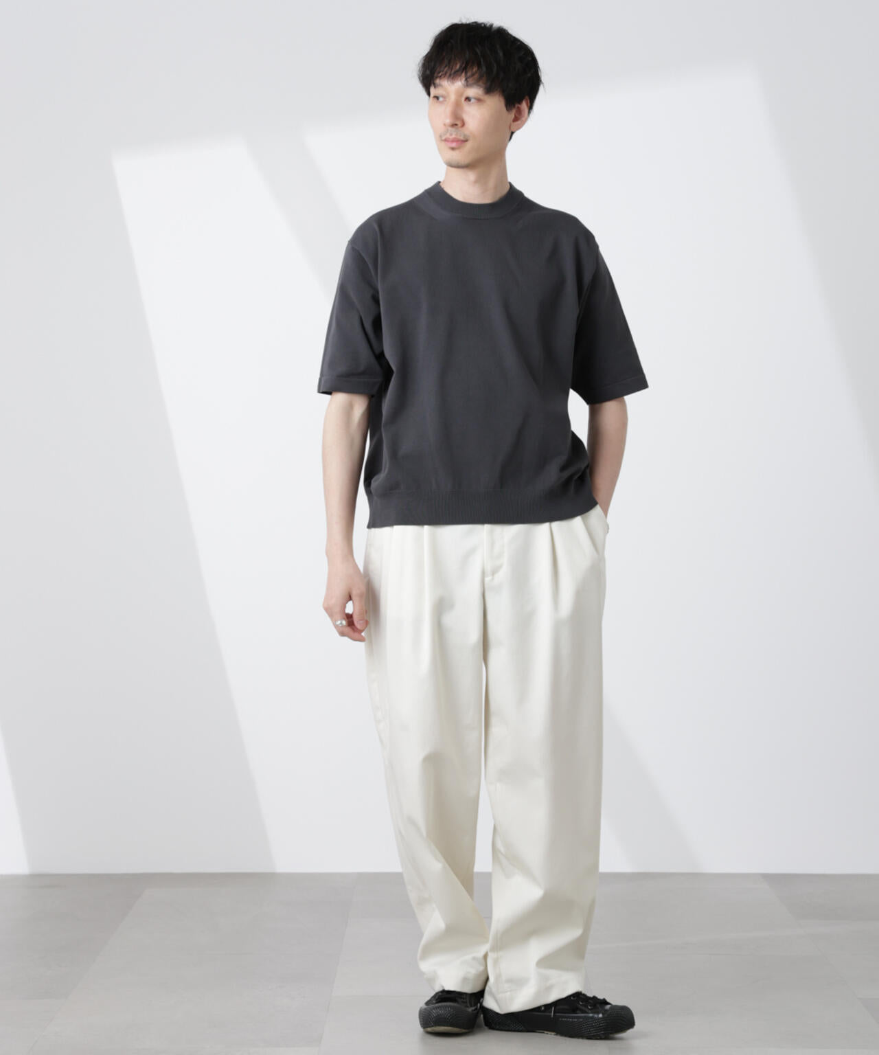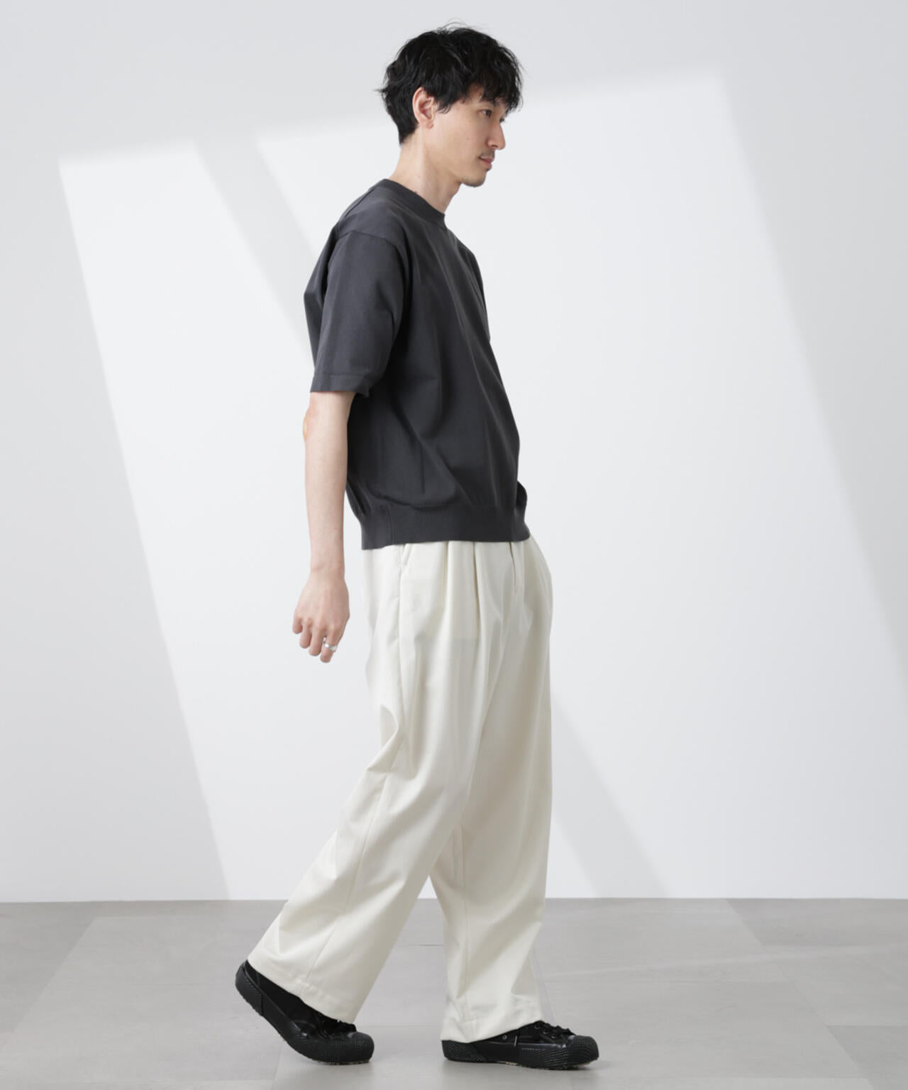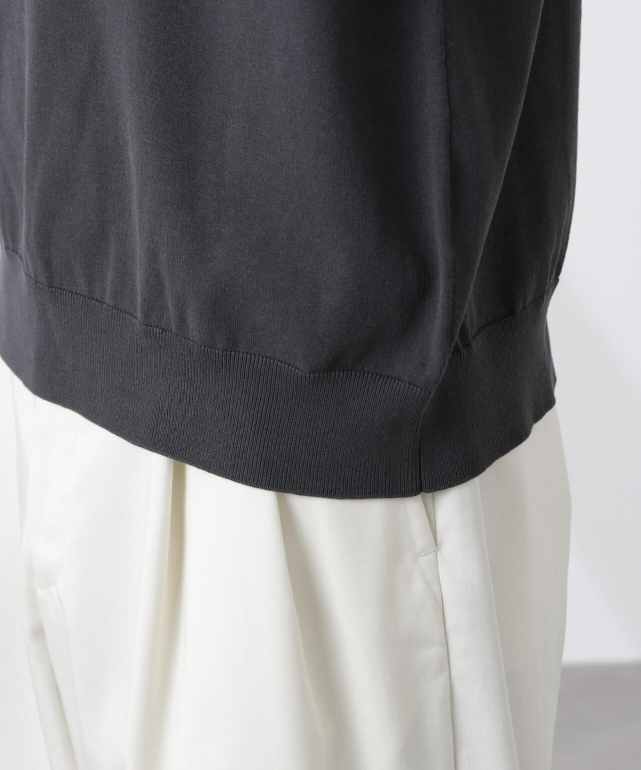24SSで好評だった二重組織の天竺編みを使用したニットクルーネックTEE。幅広いスタイルに合わせやすいシンプルデザインでデイリーシーンに重宝します。