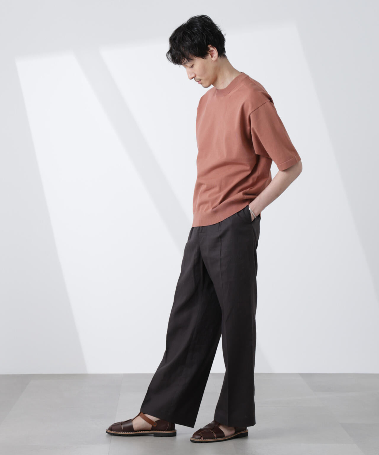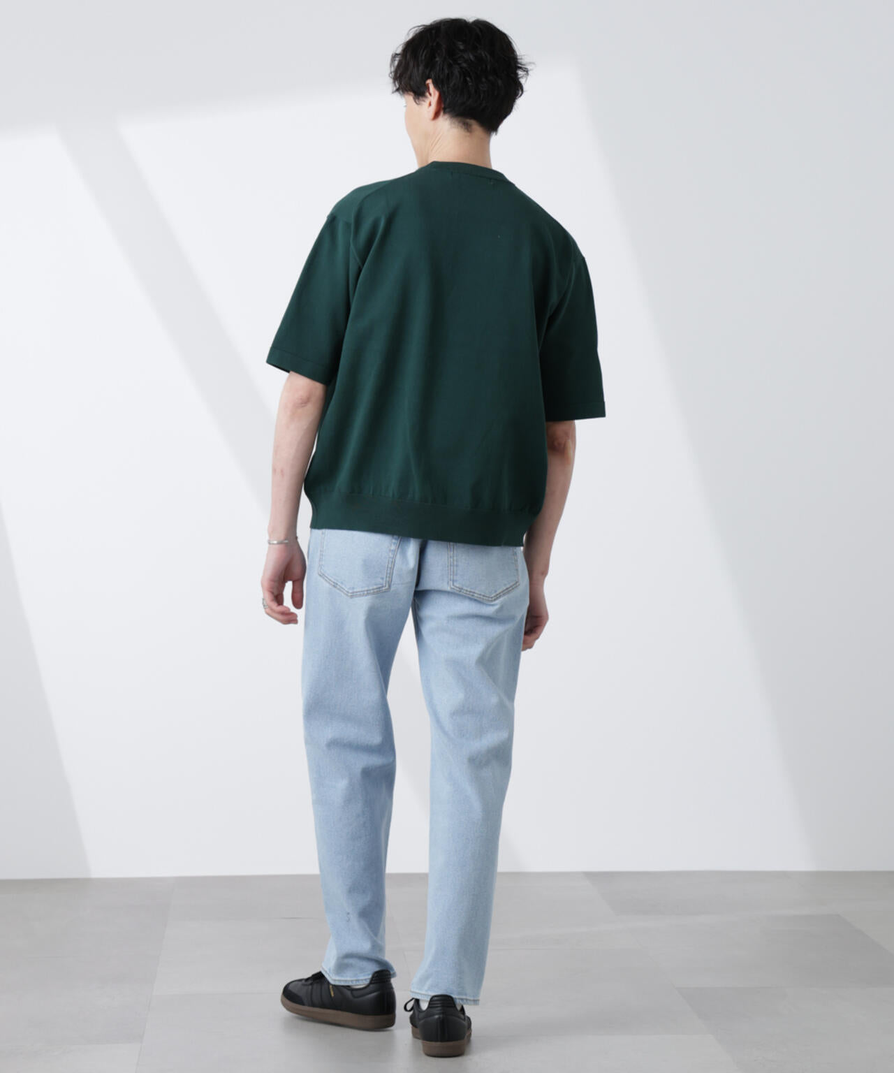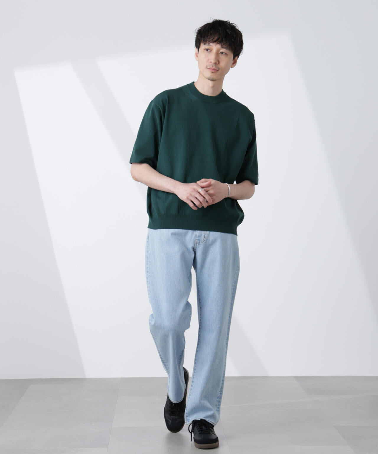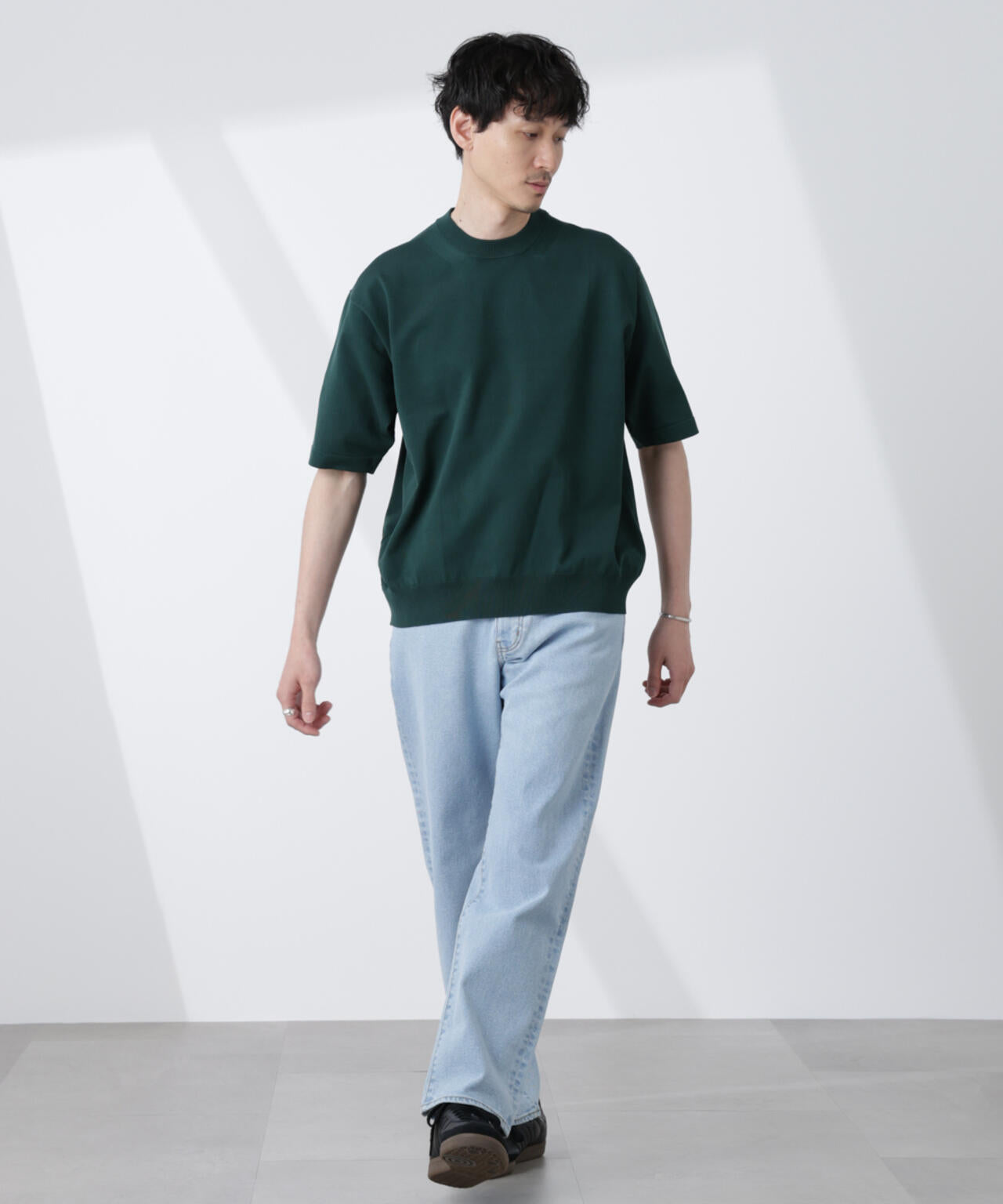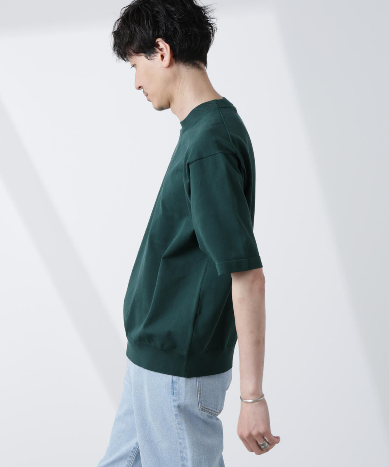 24SSで好評だった二重組織の天竺編みを使用したニットクルーネックTEE。幅広いスタイルに合わせやすいシンプルデザインでデイリーシーンに重宝します。