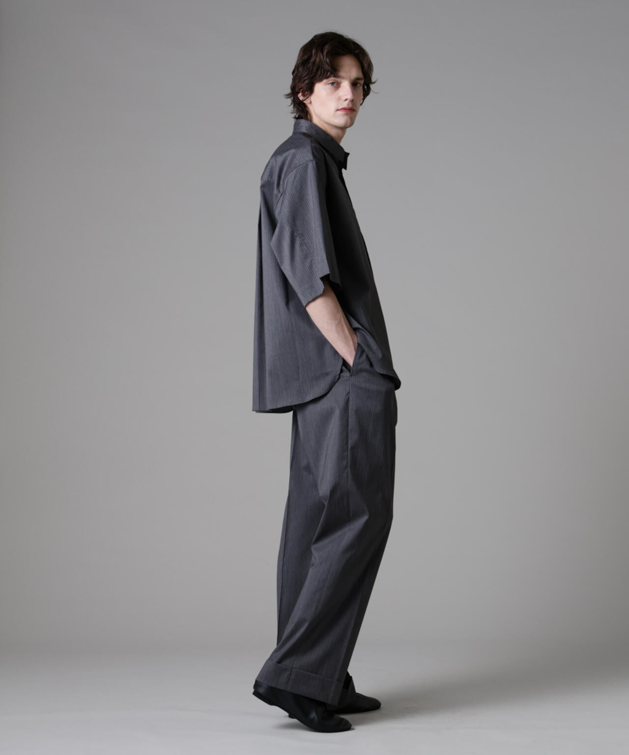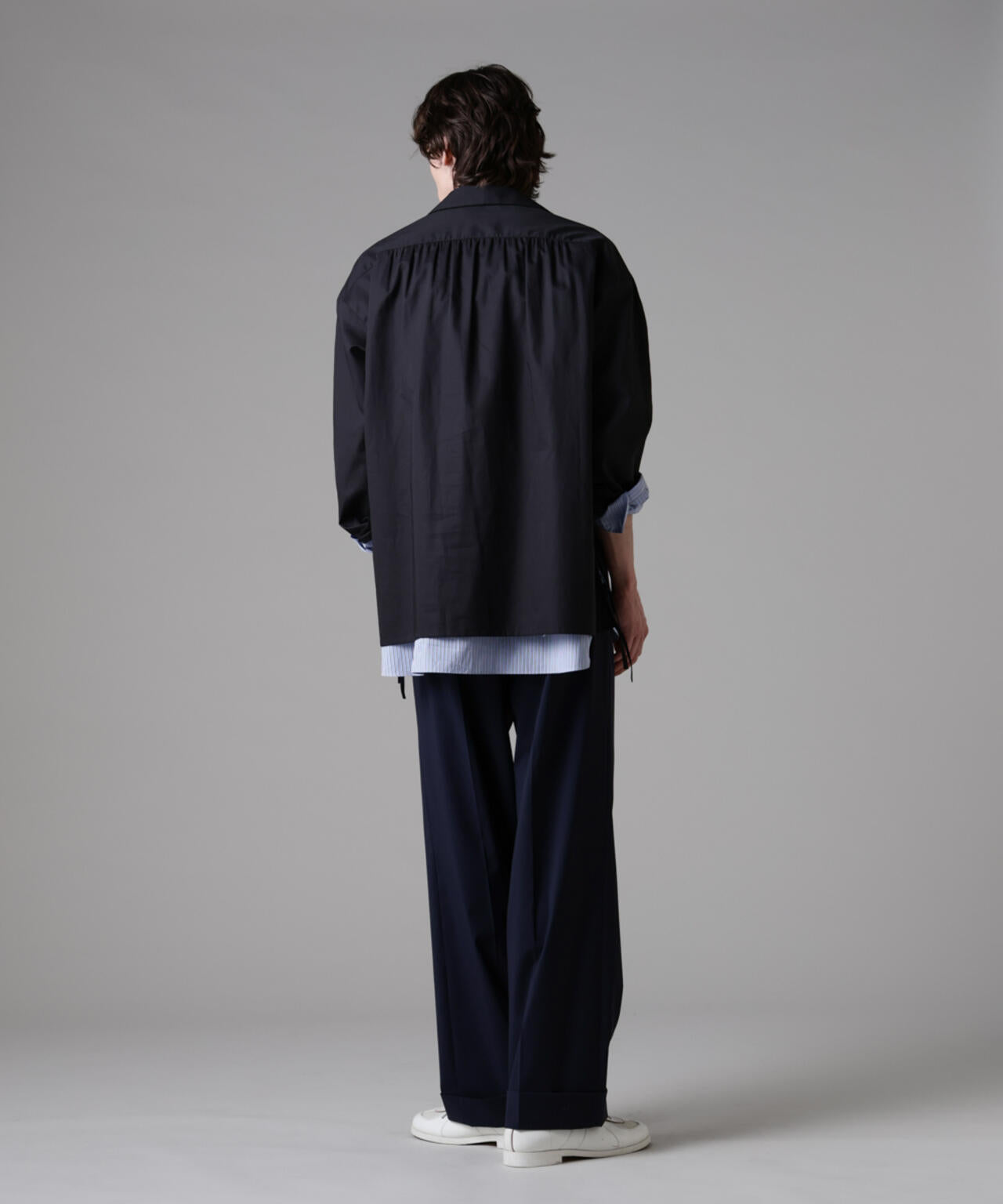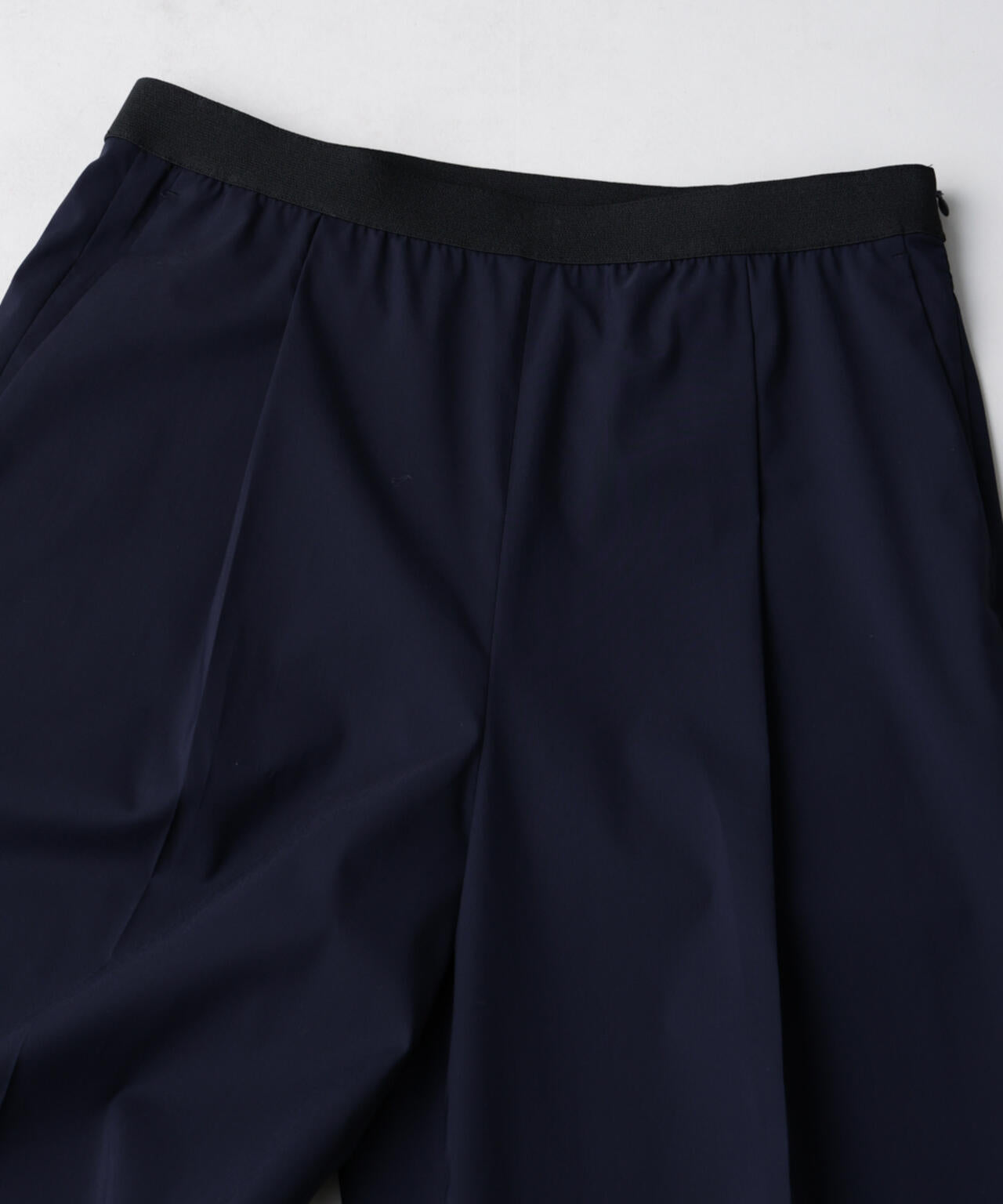 ウエストゴムをデザインポイントにしたイージーパンツ。同素材のビッグシャツとセットアップで合わせれば、つなぎ風の洗練された着こなしも楽しめます。