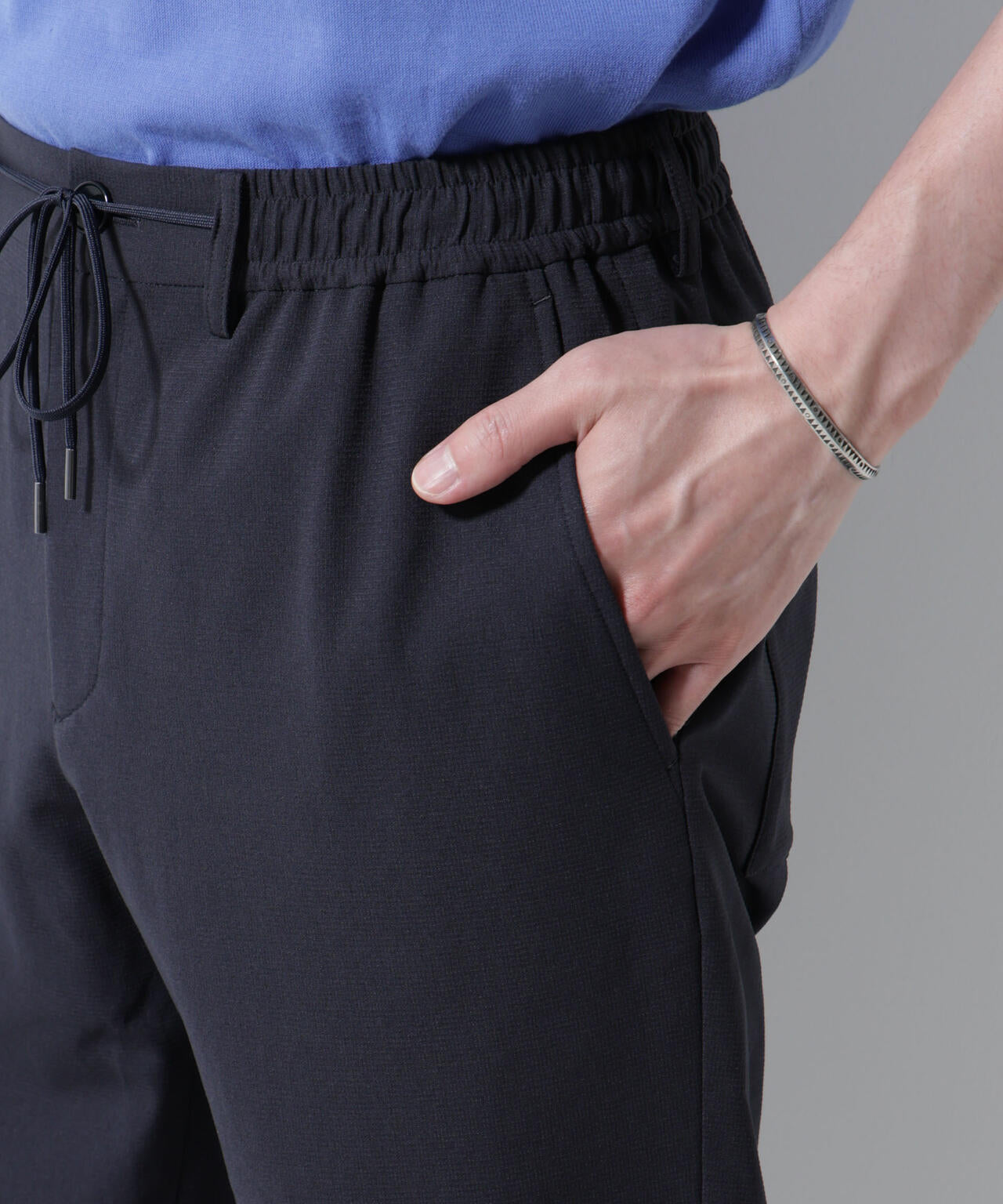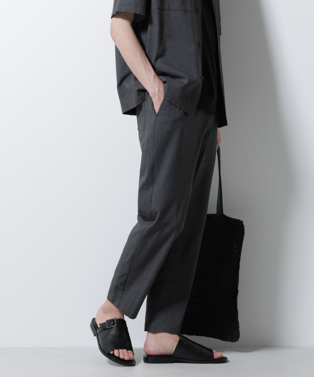 通気性や軽さに優れた素材を活かし、夏場でも快適に着用できるイージーパンツ。シンプルながら細部にこだわった夏の万能アイテムです。