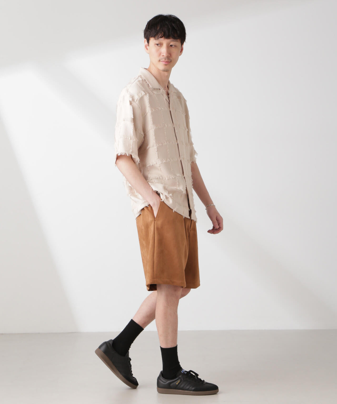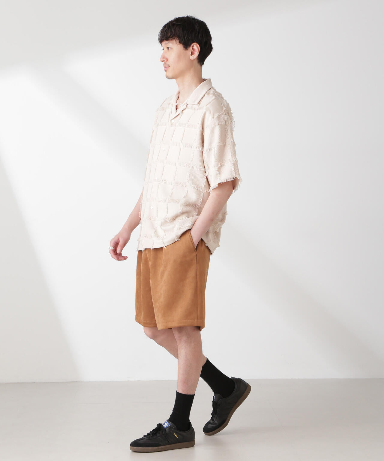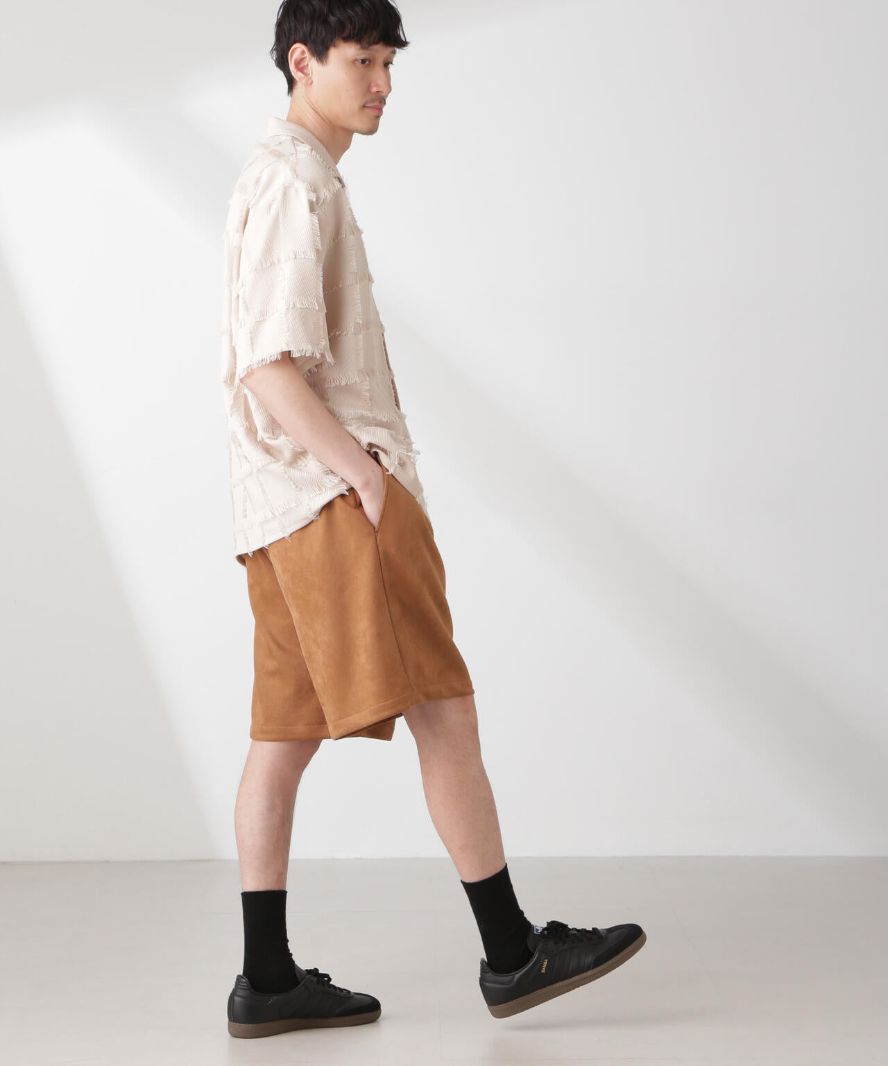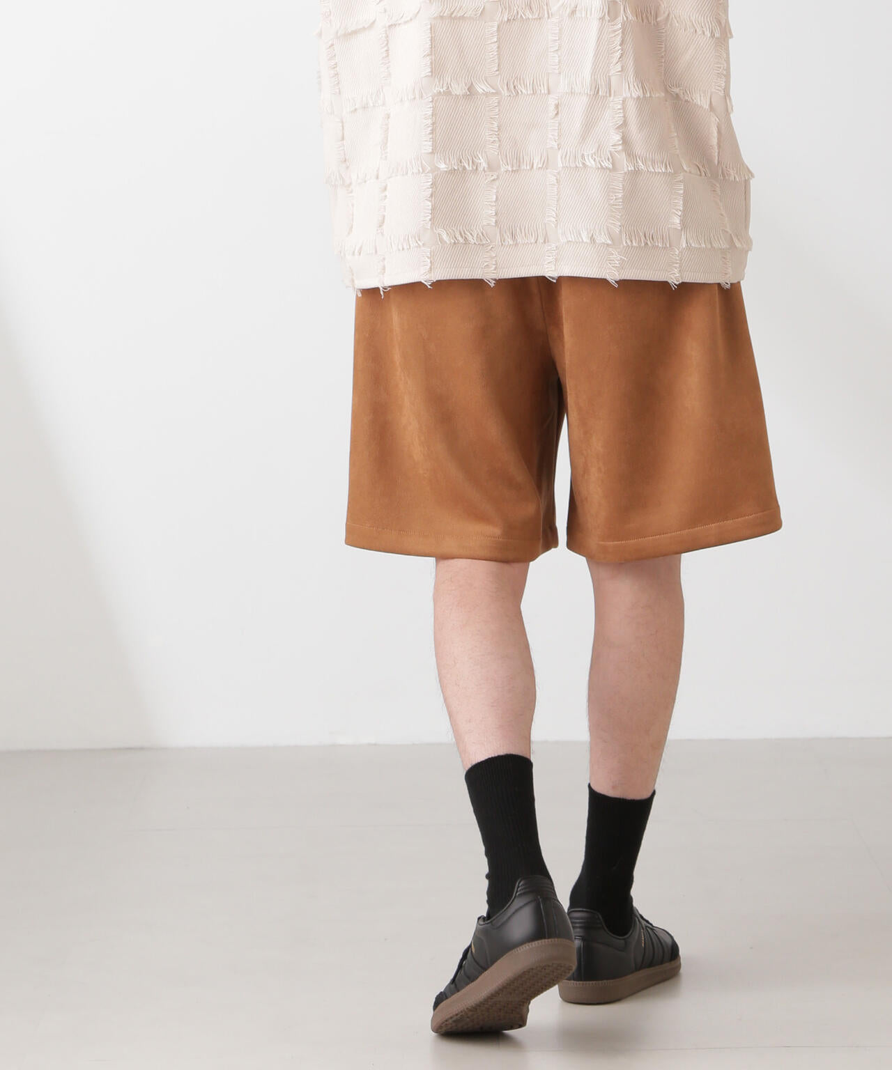 軽くこしがあり、しなやかな質感が特徴的で上品な雰囲気のあるフェイクスエードショートパンツ。今シーズンのトレンドのアイテムです。