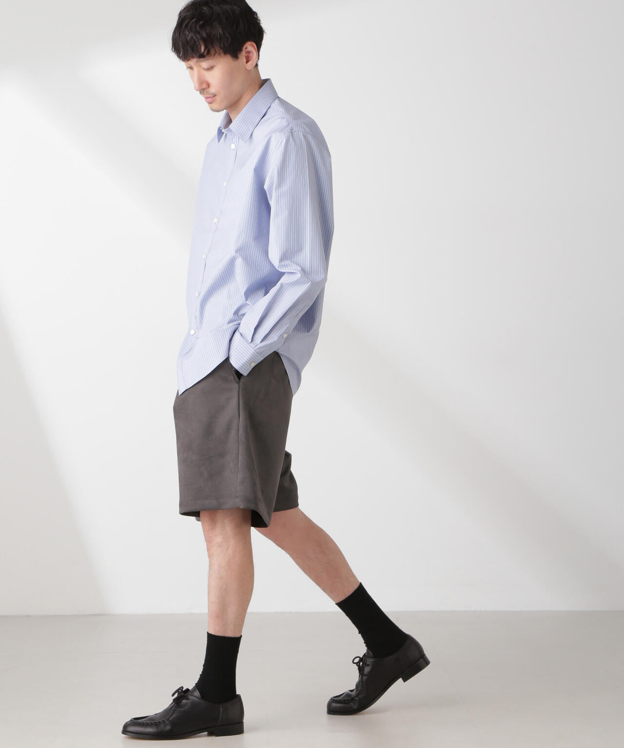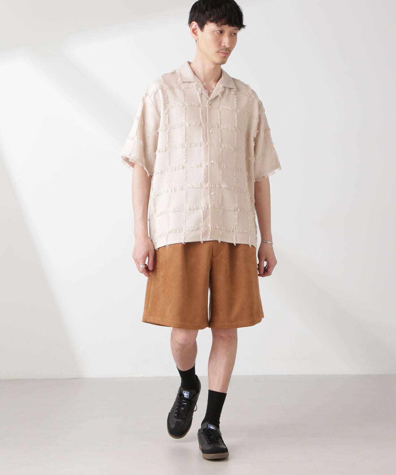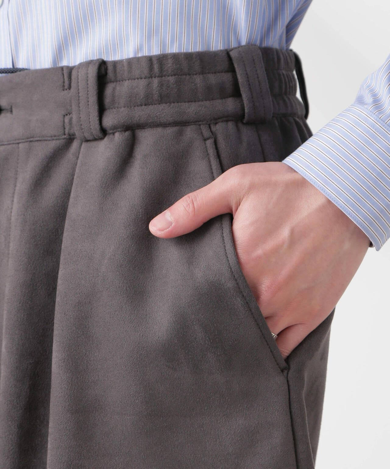 軽くこしがあり、しなやかな質感が特徴的で上品な雰囲気のあるフェイクスエードショートパンツ。今シーズンのトレンドのアイテムです。