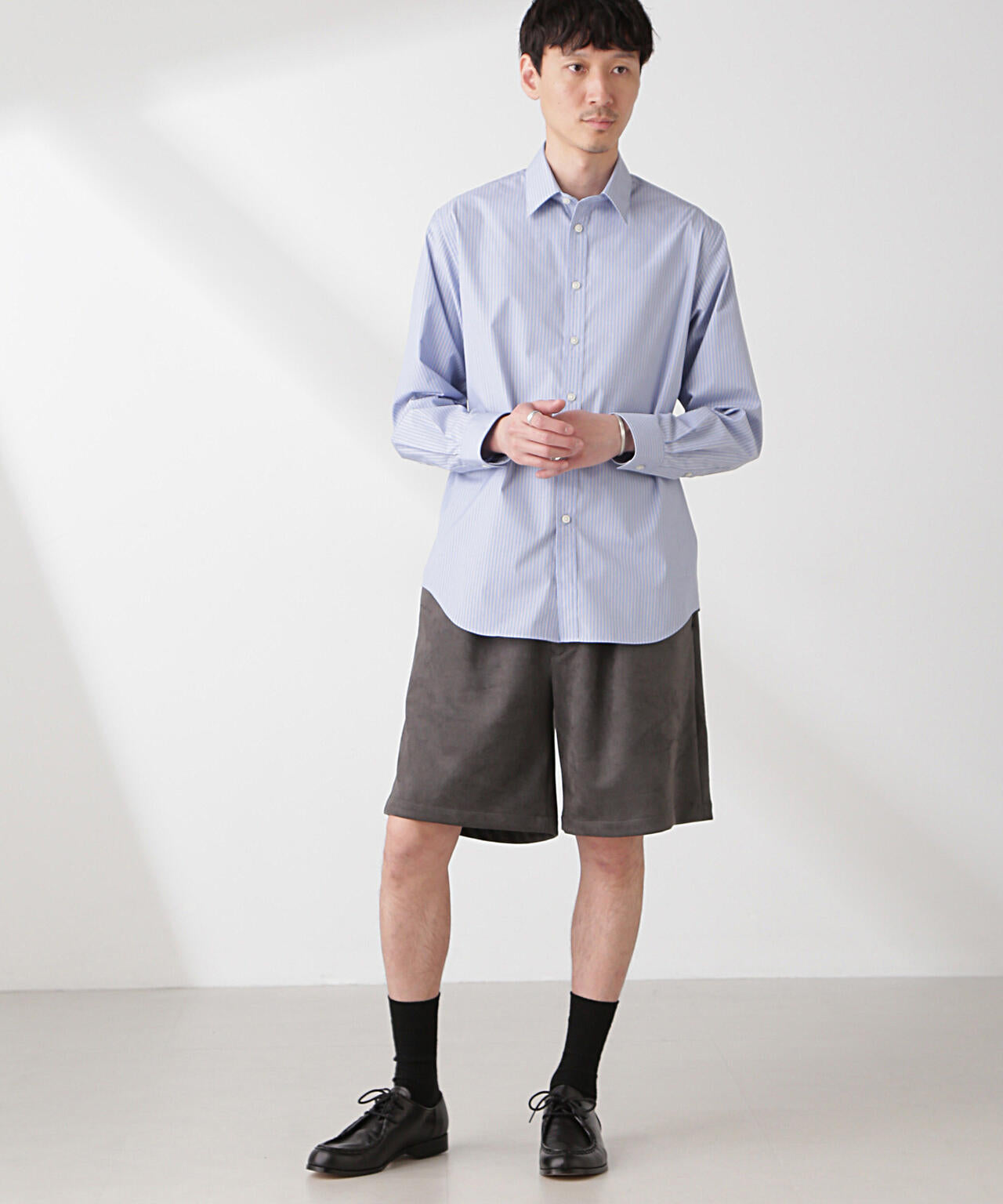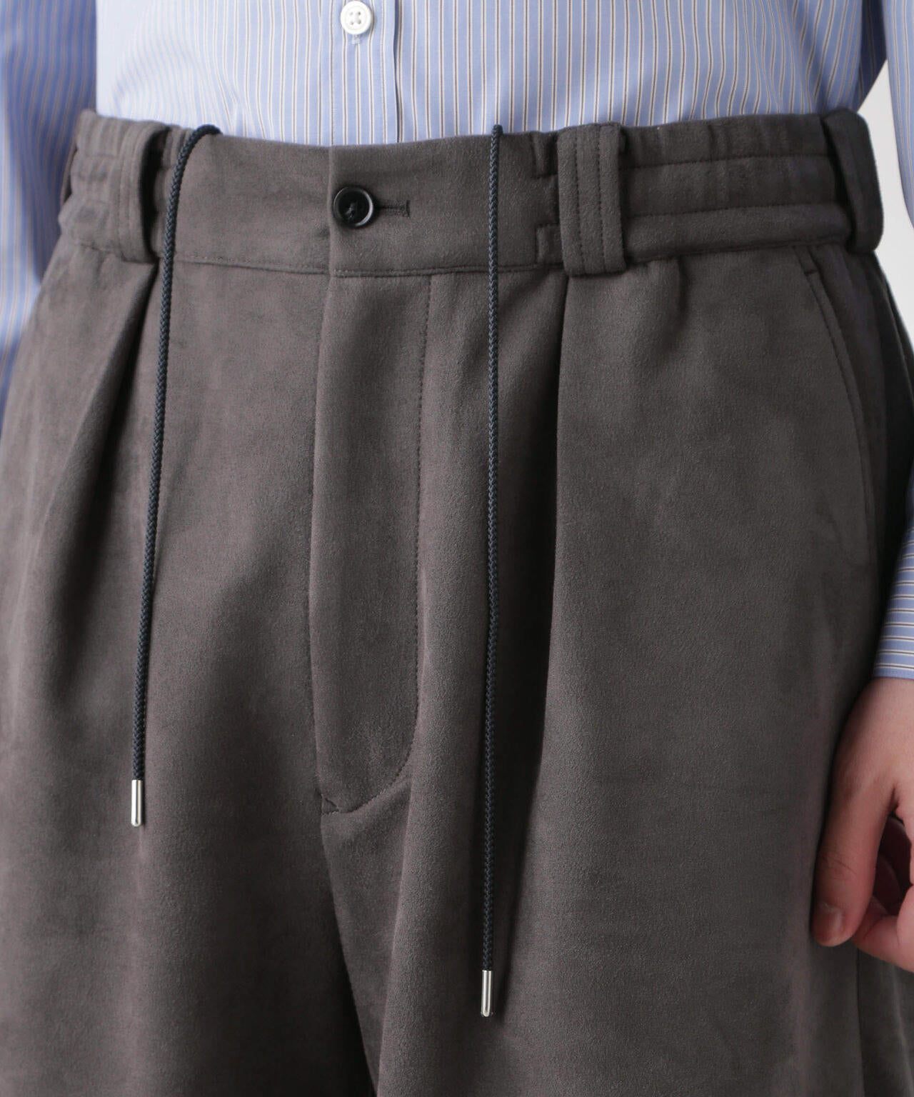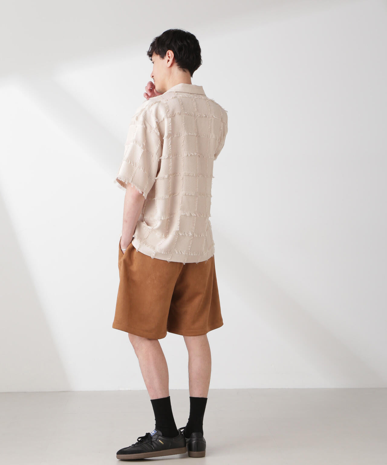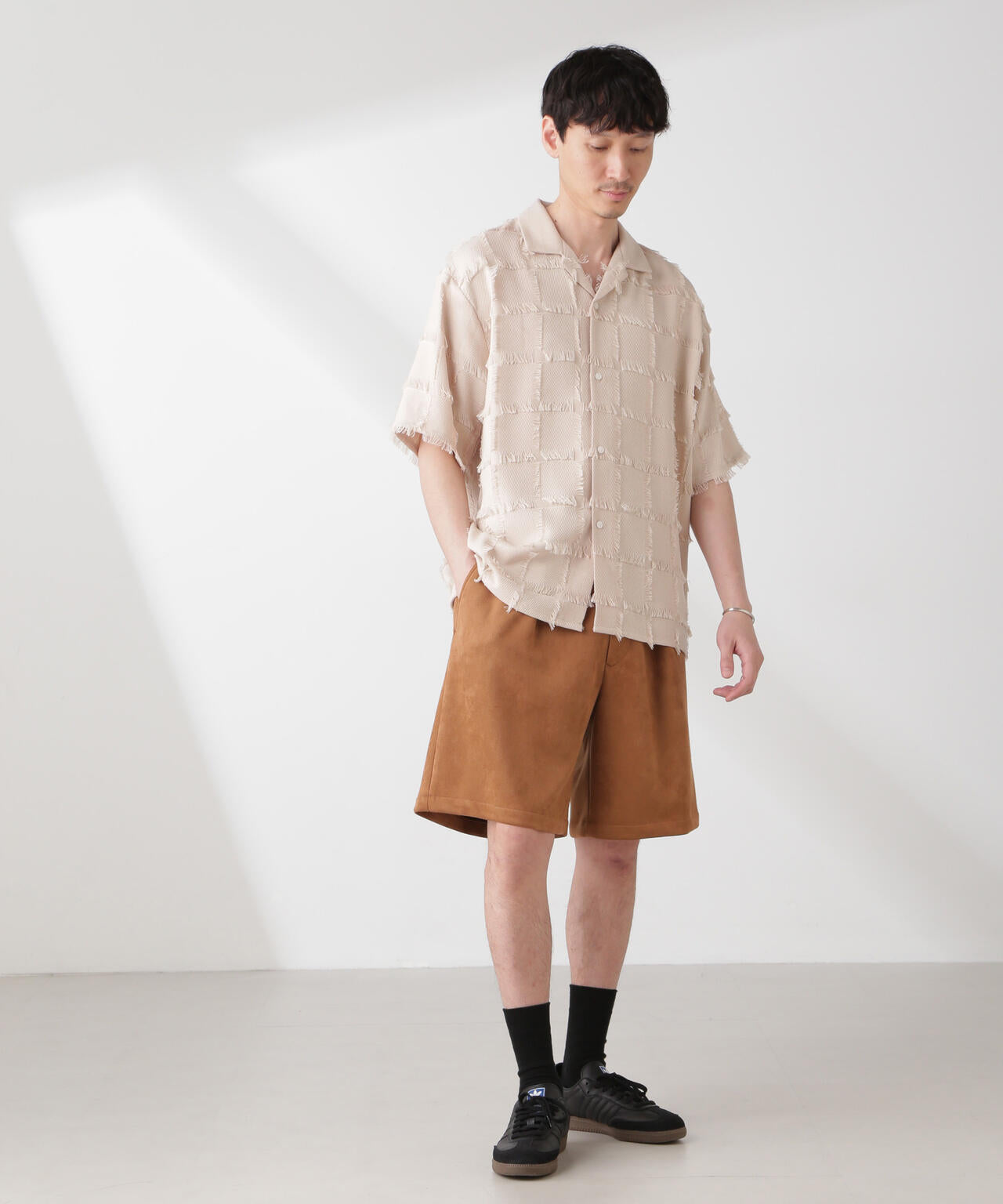 軽くこしがあり、しなやかな質感が特徴的で上品な雰囲気のあるフェイクスエードショートパンツ。今シーズンのトレンドのアイテムです。