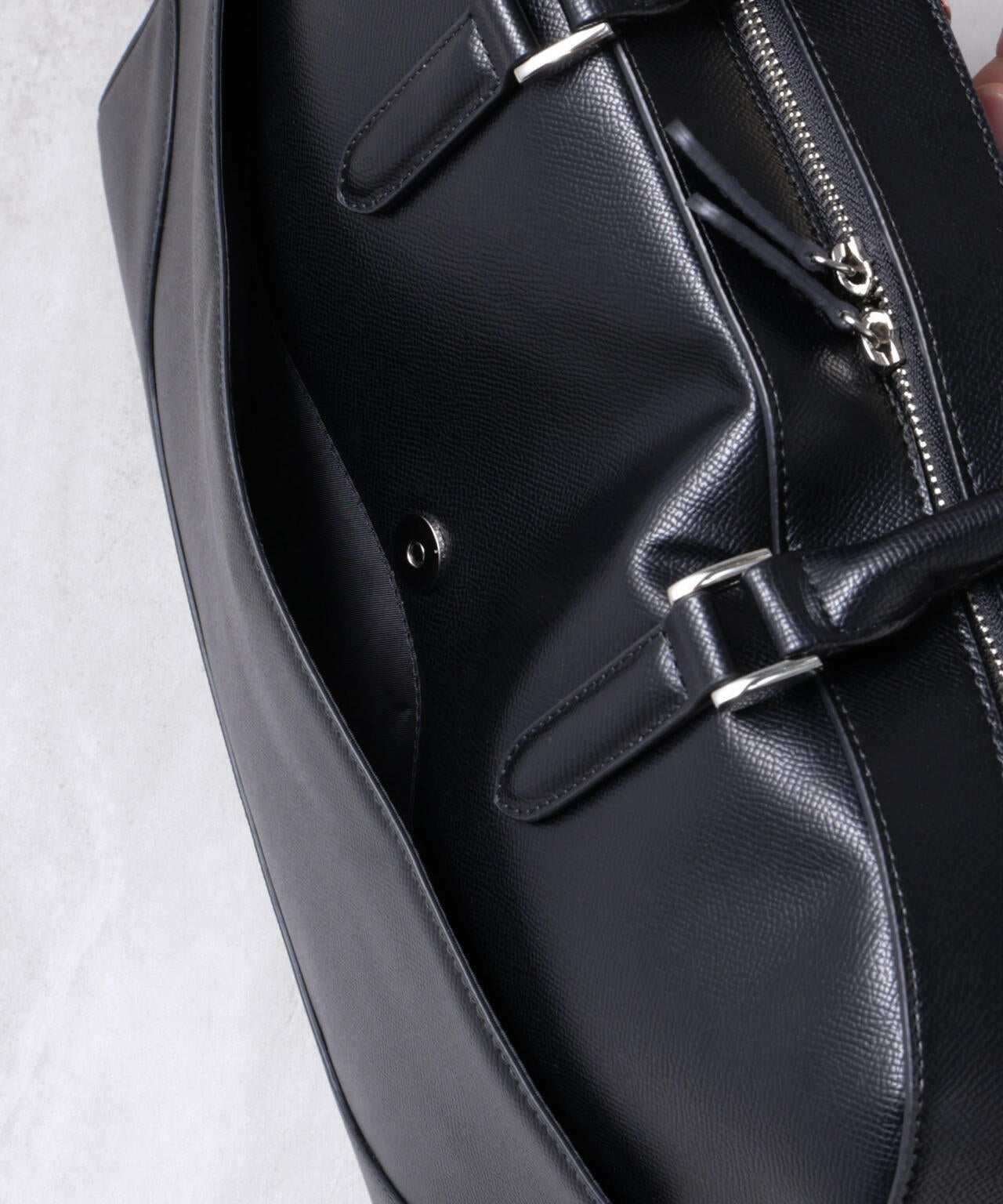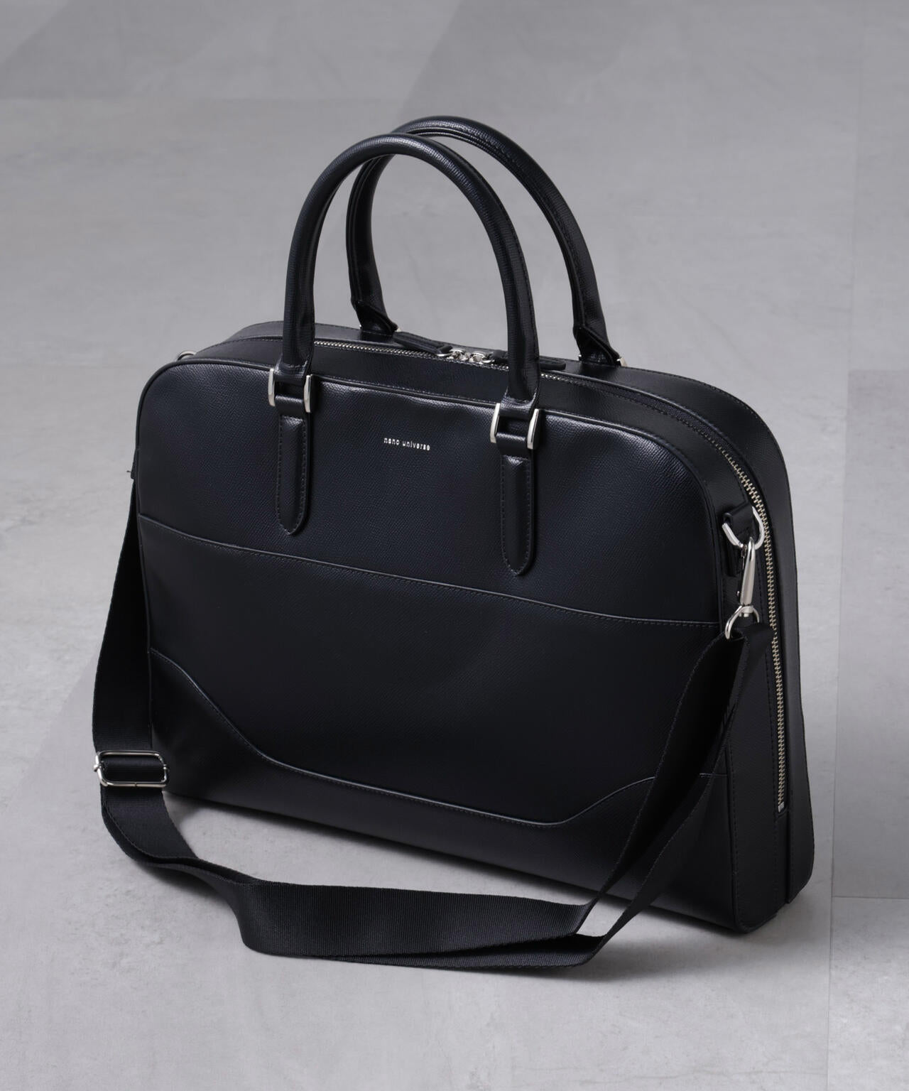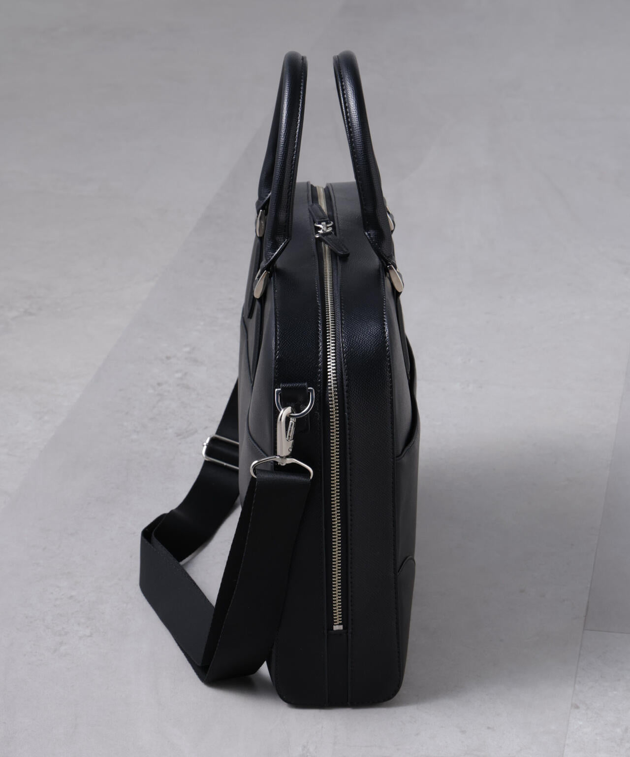 上品な印象のスマートなブリーフバッグ。機能的なポケットでPCをはじめマルチに収納ができ、ボトムには底鋲付きでしっかりと自立します。スーツやキレイめなセットアップと合わせたスタイルがおすすめです。