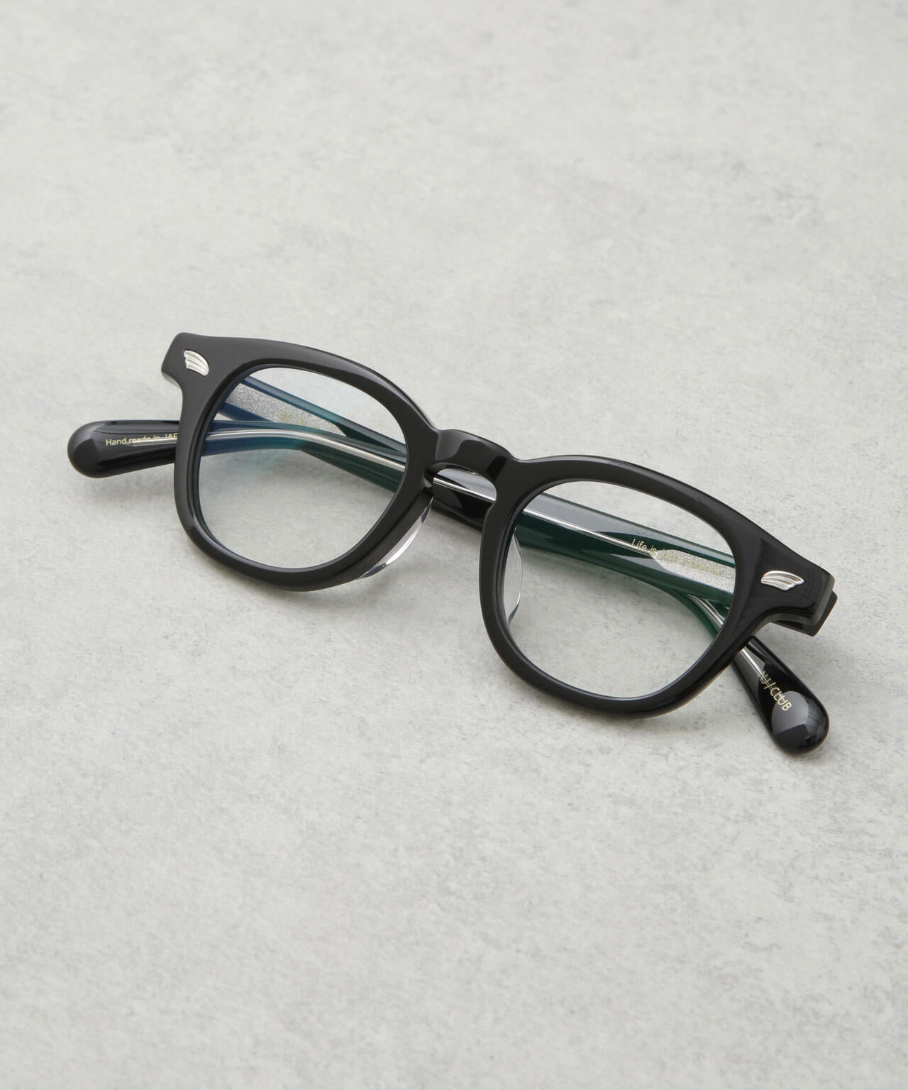 アセテート枠は、透明感と深みのある素材です。丁寧に磨き上げられていますのでとても滑らかで肌触りが良いです。1枚のアセテート板から眼鏡のカタチに削り出し、曲げ、磨きで艶を出すなど、手作業で造られています。こだわりの、手触り質感を感じられるはずです。テンプルには金属の芯がシューティングしてありますので掛け具合の調整も可能です。黒枠は、その芯をあえて見える仕様になっております。環境に優しい繊維として注目。アセテートは植物由来の繊維である為、自然界に放置されても生分解されることから、環境に優しい繊維として注目されています。