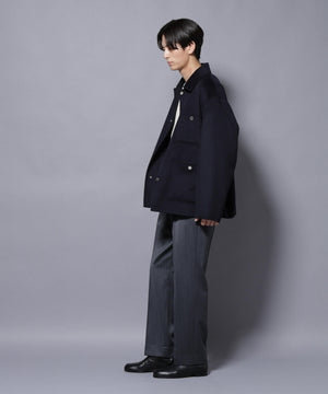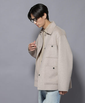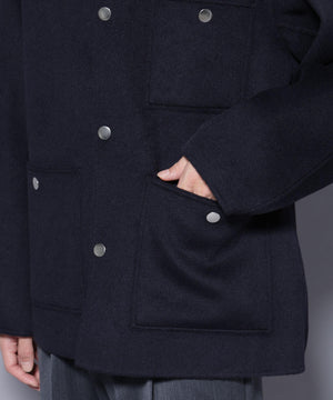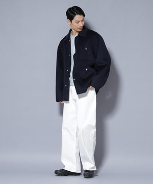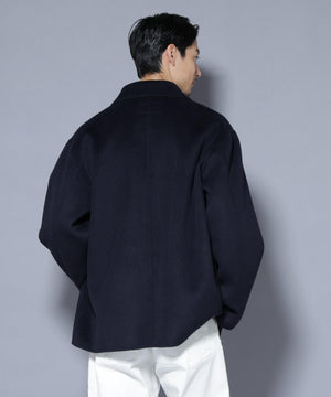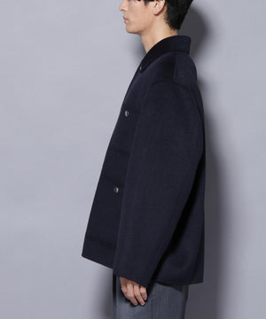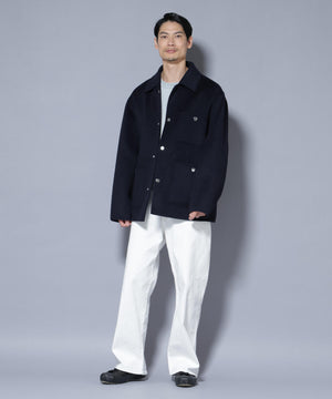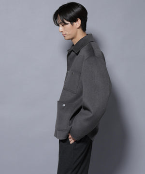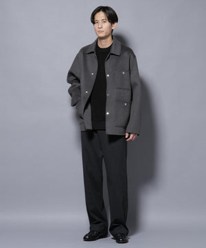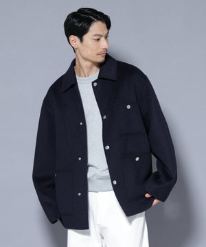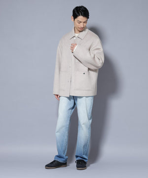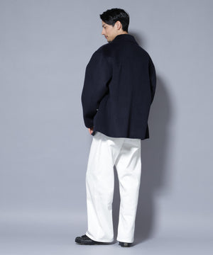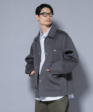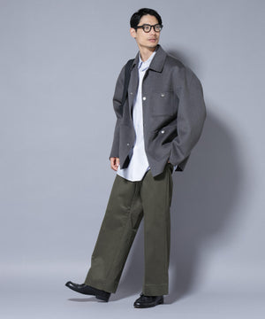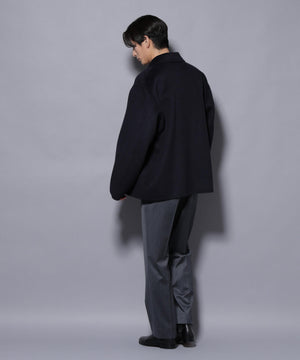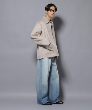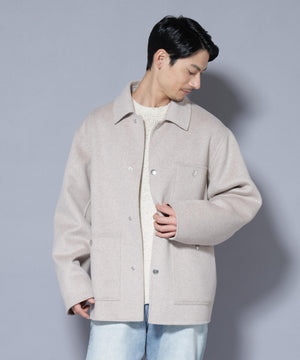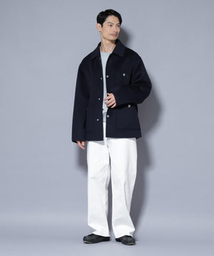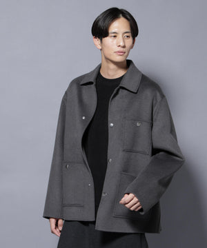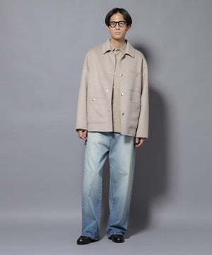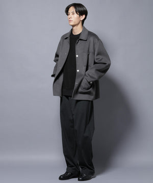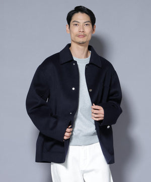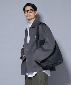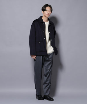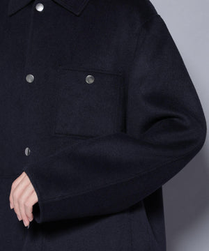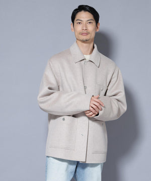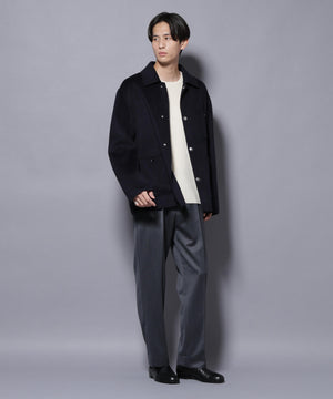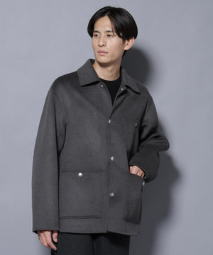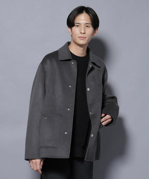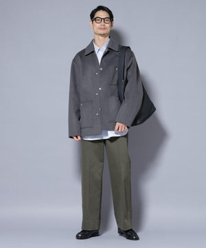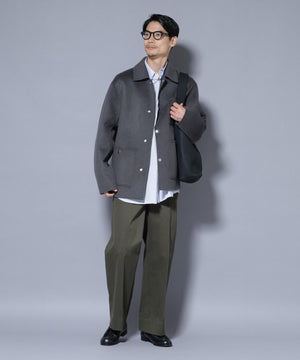 ウールリバーでカバーオール型を採用。ジャケットもすっぽり隠れる丈感に加え、一重仕立てならではの羽織った時の軽やかさが最大の魅力です。