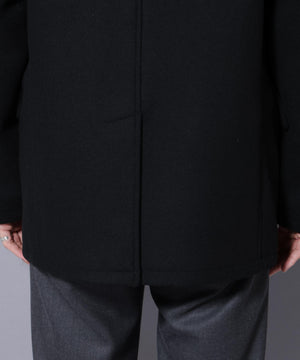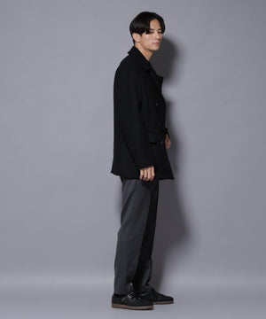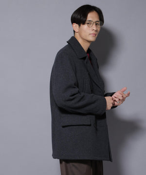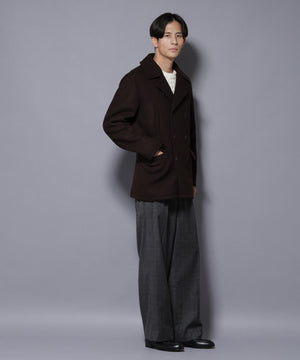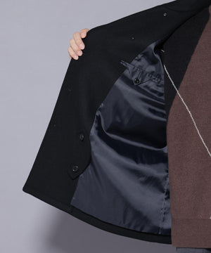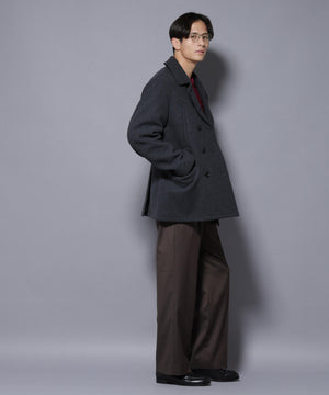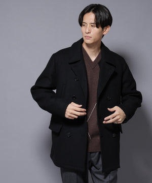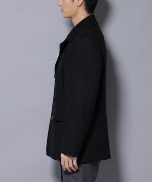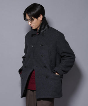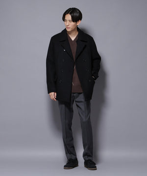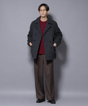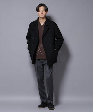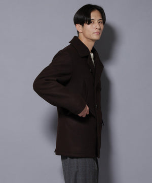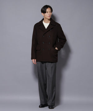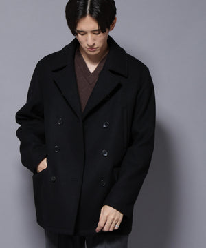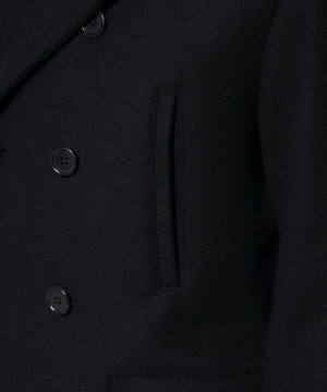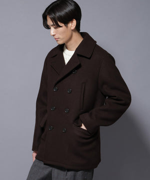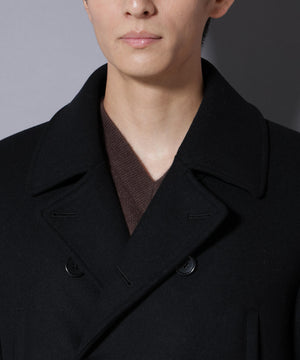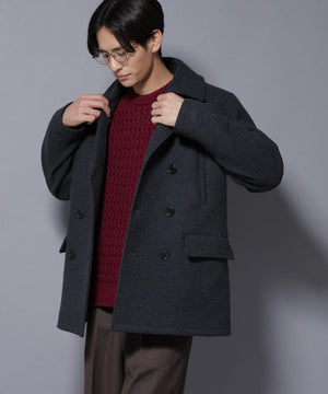 クラシックなU.S. NAVYの10ボタンPコートをベースに、現代的な感覚でややリラックスしたシルエットにアップデート。ダブルブレストの力強いデザインと、しっかりと立ち上がる大ぶりの襟が印象的な1着。