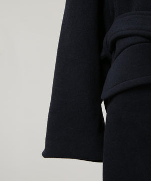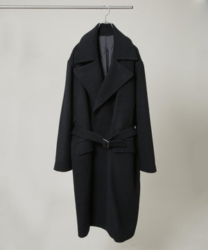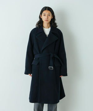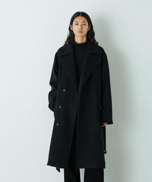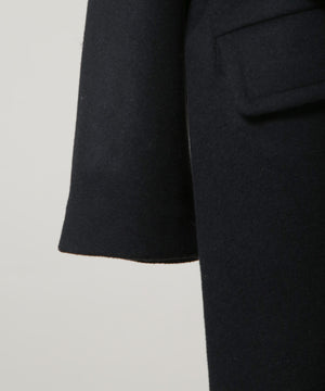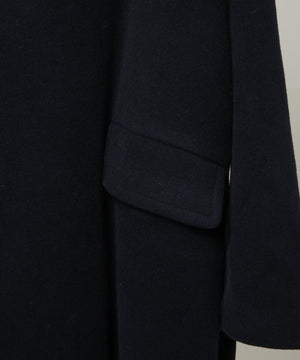パリのパン職人が着用しているイメージでエレガントにデザインされたロングコート。上質なウールにカシミヤをブレンドした素材を使用。上品な表面感が、コーディネート全体にクラス感をプラスする1着です。