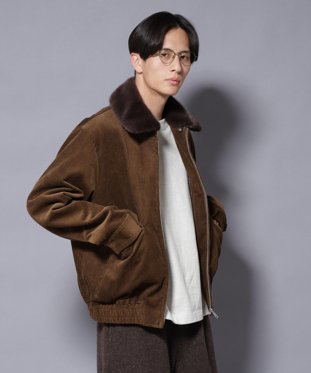 ファーの付け襟が特徴的なコーデュロイのブルゾン。今季のトレンドでテーマの一つでもある「BOHO CHIC」なデザインをナノユニバースらしい雰囲気で表現した1着です。
