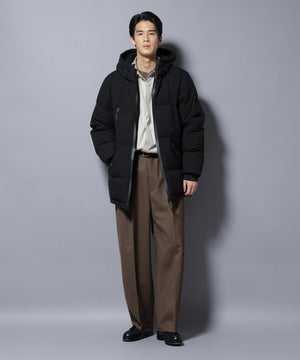 黒の配色を利かせたスポーティなディティールと、Aラインシルエットで男性でも着やすいデザインに落とし込んだ「SOLOTEXダウン」。ミドル丈のバランスや袖口のスポーティなリブ使い、配色附属使いなどアクティブで今っぽく仕上げたデザインも魅力。撥水性や防風性を備えたこの冬おすすめの1着です。