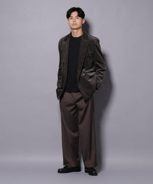 16Wの上品な畝感のあるコーデュロイを使用したダブルブレストジャケット。ダブルブレスト仕様の為、ボタンを閉じてタイトに見せたり、フロントを開けて颯爽と着こなしたりと、スタイルに合わせて素敵に見せることが可能。セットアップでの着用はもちろん、単品でも着回しやすい1着です。