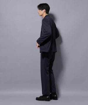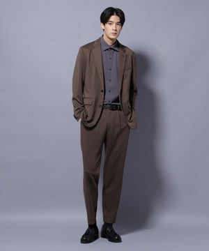 イギリス、アメリカ、イタリアなど様々な国のテーラードスタイルを取り入れ進化してきた日本のスーツの現在進行形。クラシックの基本(ゴージ位置、ラペル幅、ポケット位置、ボタン位置、フロントカットバランスなど)は崩さず、余計な装飾を省きクリーンで現代的、10年着続けられるデザイン、オーセンティックなフィッティングに落とし込んでいる。ゴージ位置、角度、ラペルラインからフロントのカッティングラインがスマートな印象を生み出している。素材はポリエステルをベースとしたNEW STANDARDとなりうる素材。天然素材でなければならないという伝統的な思考ではなく、伝統を踏まえた見え方かつ、未来思考の素材。