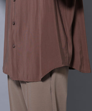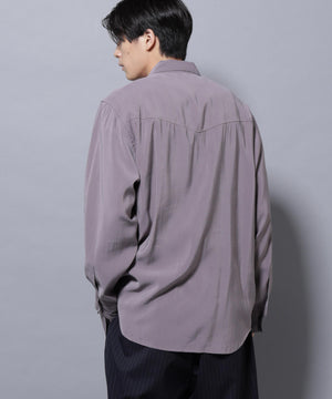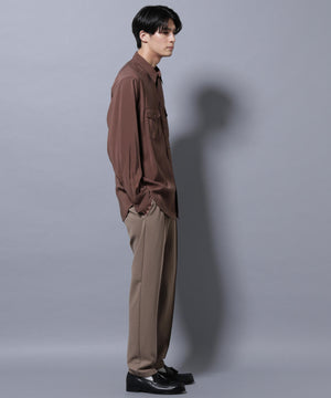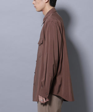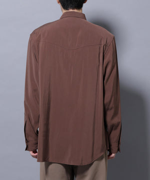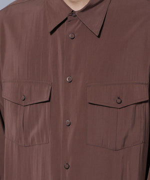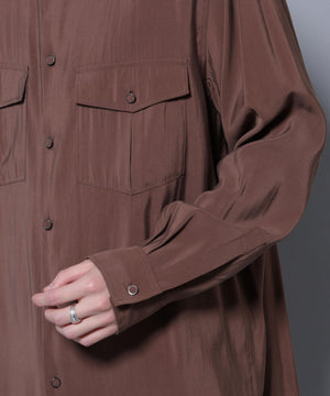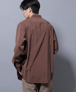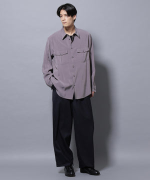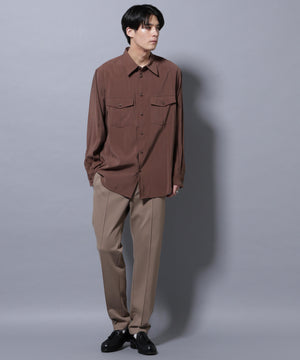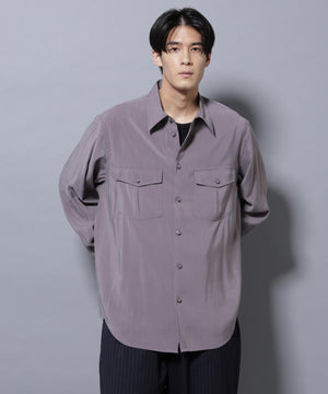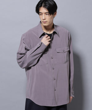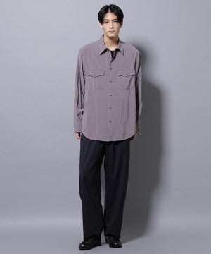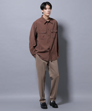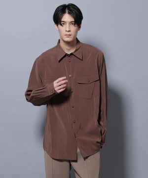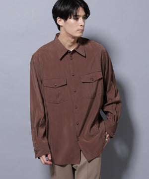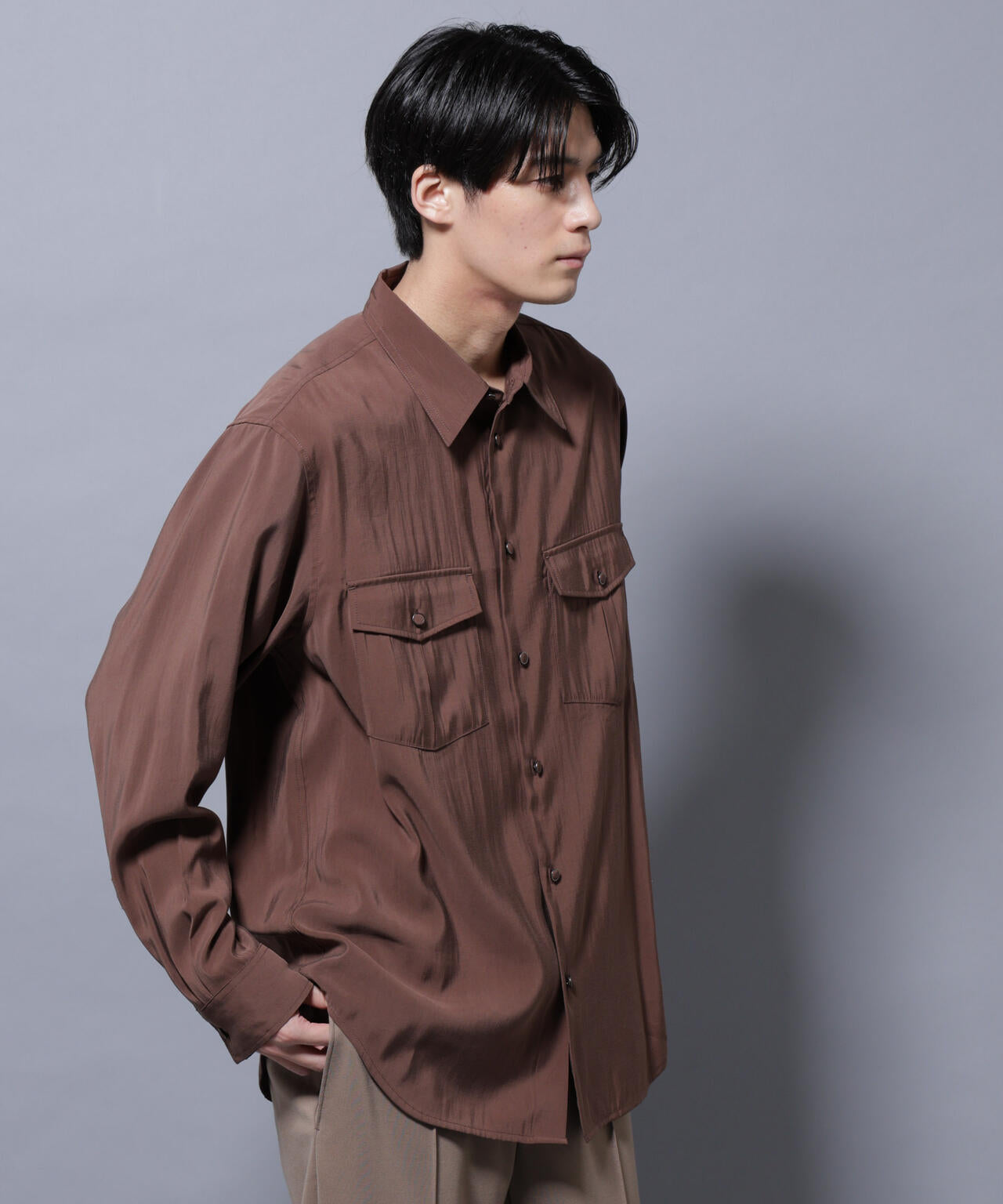 70~80s古着のような襟型とポケットデザインが特徴のシャツ。レーヨン高混率の落ち感のあるサテン素材を使用することで、メリハリのついたコーディネイトが可能な今秋冬おすすめアイテム。