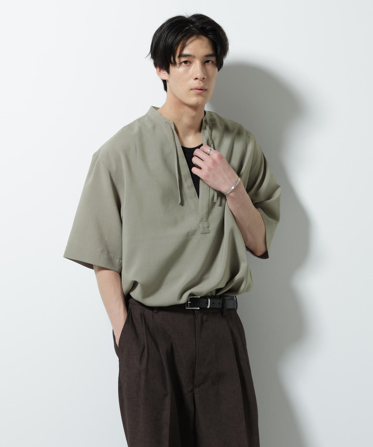 シャツでありながら、アノラックのような抜け感を持つ、モダンで新しいプルオーバーシャツ。スキッパータイプの胸元が自然なヌケ感を生み、リラックスしながらも都会的な印象で着用できる1枚です。