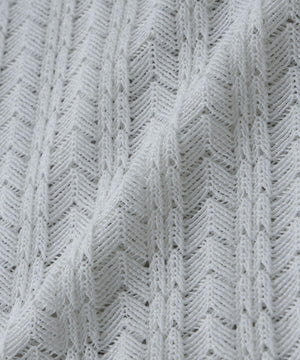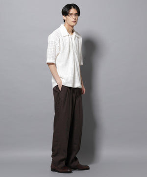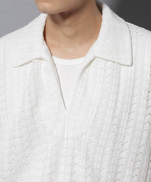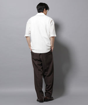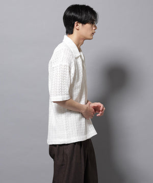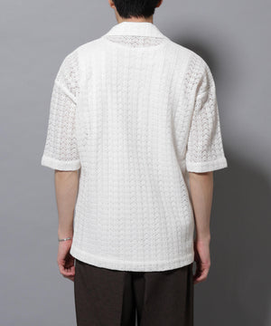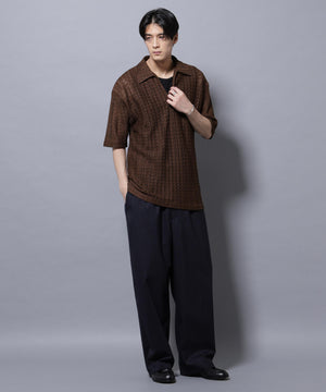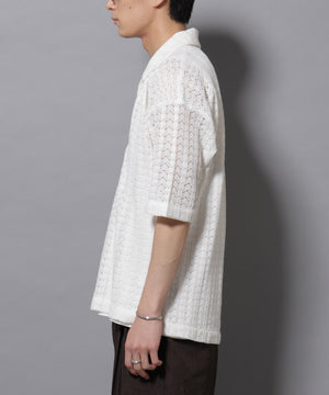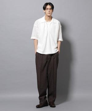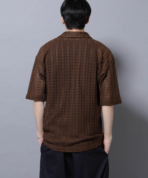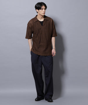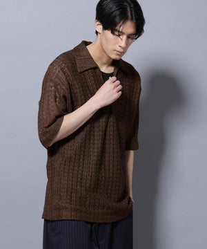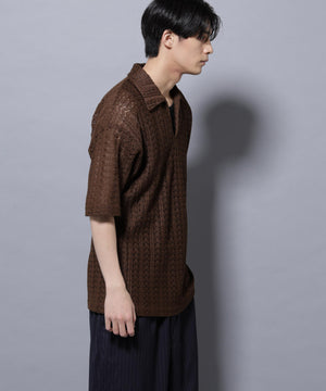 経編素材「ラッセル」ジャージを使用した透け感のある素材が特徴のスキッパーポロシャツ。真夏の暑い季節に、スタイリングの幅を広げてくれるアイテムです。
