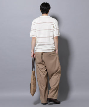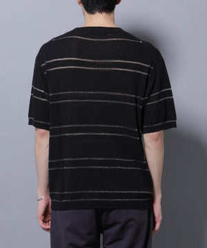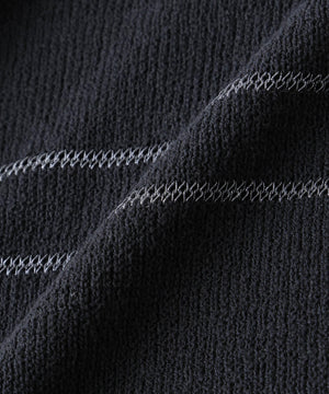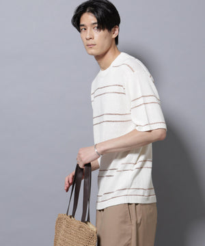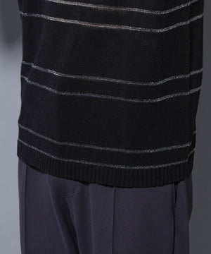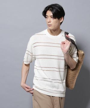 トレンドのグリッターをボーダーで効かせた遊び心のあるニットTシャツ。ブークレー糸とラメの糸でボーダーを組むことで、表情のあるデザインに仕上げた1着です。