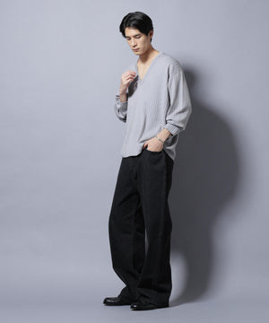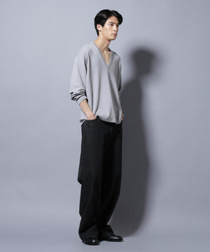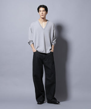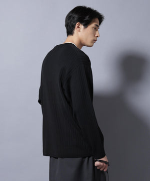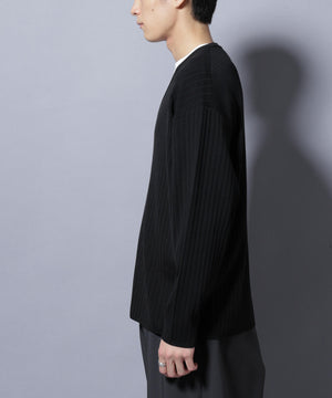 細番手の糸をハイゲージに編んだ針抜きのニット。天然スキンケア成分のCICAを配合した、柔らかな着心地が魅力の1着。デイリーに着られ、時代に左右されにくいワードロープの定番になるようなアイテムです。