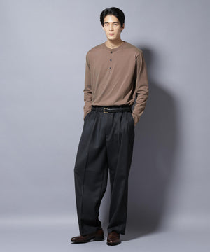 鮮やかで深みのあるカラーが大人の色気を感じるヘンリーネックTシャツ。いつものTシャツから変化できるヘンリーネックは他と差のつく一枚です。