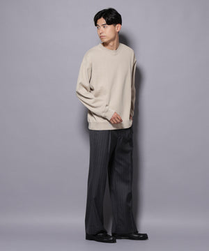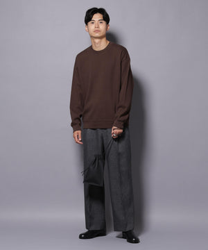 オーセンティックなデザインで汎用性の高いニットプルオーバー。30sコットンの長綿で編み立てた凹凸感のあるワッフル生地を使用。製品染めで色を入れた後、ハードバイオ加工で洗い込み、こなれたフェード感のある色合いに仕上げました。
