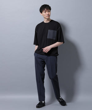 配色ステッチとスエード切り替えが映えるポケットTシャツ。一枚で様になるデイリースタイルに重宝するアイテムです。
