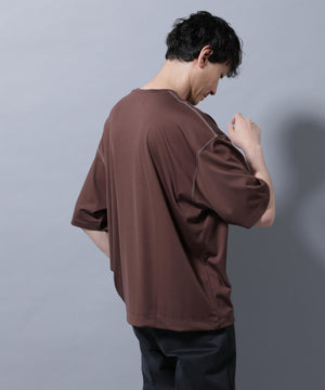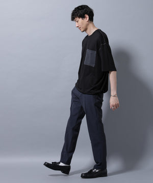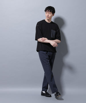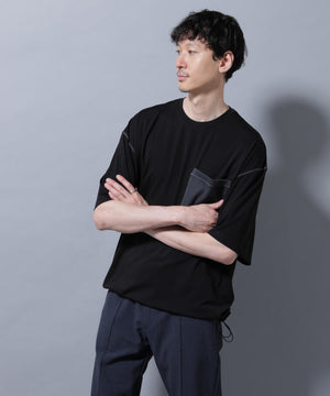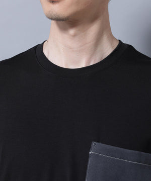 配色ステッチ フェイクスエードポケットTシャツ