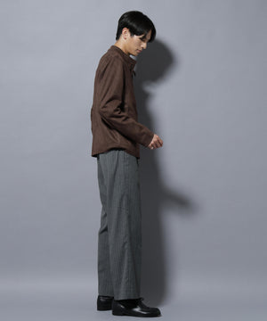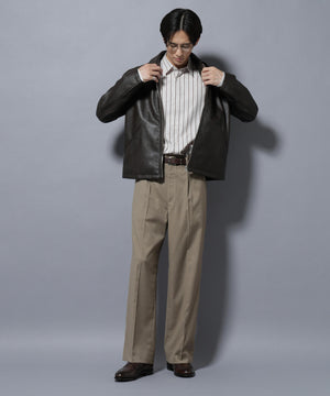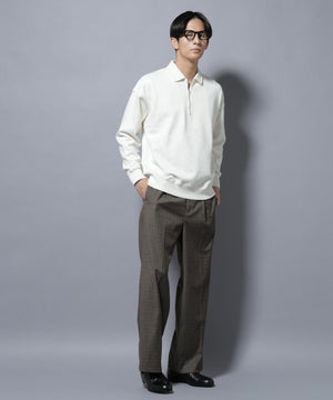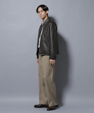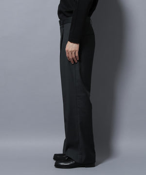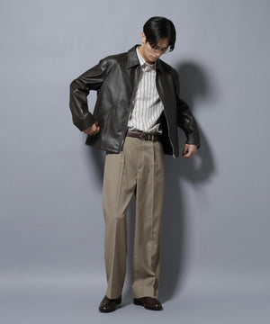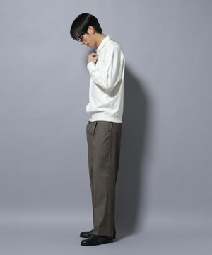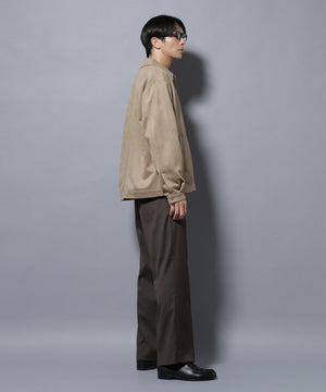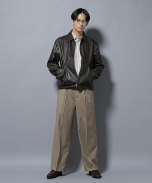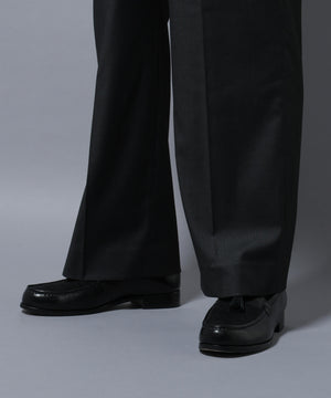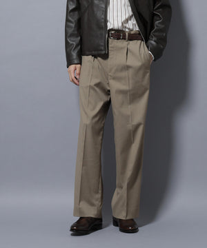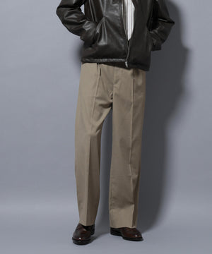 フランスの「DELEGANT社」の素材を使用したストレートパンツ。程よく膨らみがあり、柔らかな手触りや斜めに織模様が入っているのが特徴。他にはない独特な品と、艶やかさやストレッチ性を兼ね備えた、シーズンレスで活躍すること間違いなしの1着です。