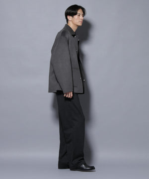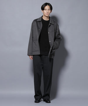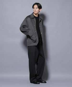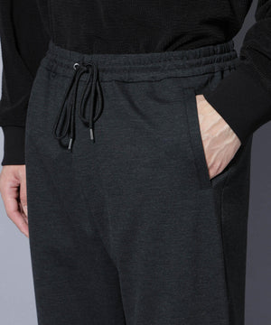フランスの「DELEGANT社」の素材を使用したトラックパンツ。程よく膨らみがあり、柔らかな手触りや、杢調の雰囲気が特徴。他にはない独特な品と、艶やかさやストレッチ性を兼ね備えた、シーズンレスで活躍すること間違いなしの1着です。