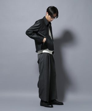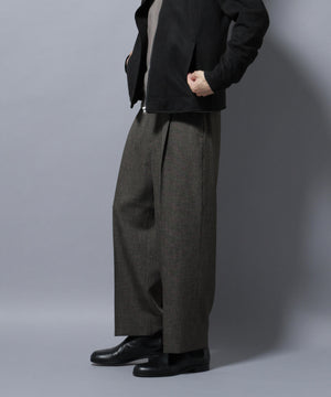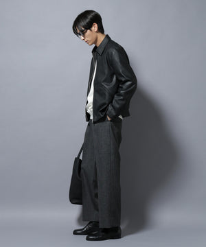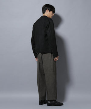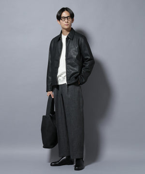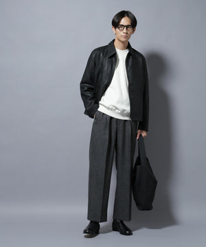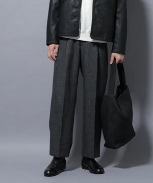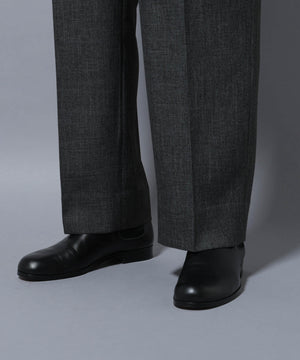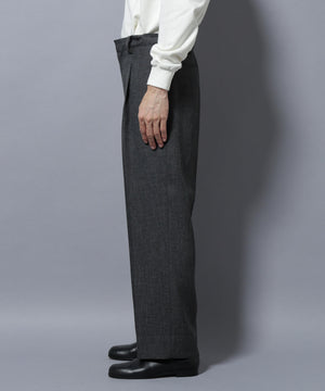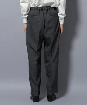 大人のワイドパンツシリーズから新たなデザインが登場。LANATECのクラシックなシャークスキン素材を使用し、従来のシルエットよりもややスッキリとさせたシルエットに仕上げた一枚。ウールのような質感と上品な見た目を印象としながらも、ご自宅でのお洗濯が可能な嬉しいアイテムです。