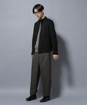 ふんわりと紡績されたウーリーポリエステルヤーンを使用。ポリエステル100%でありながらもウールのような上質な見た目でふくらみを持ちながら、シワになりにくく洗濯機でも洗うことができるイージケアな生地です。ストレッチ性も持ち、抗ピリング性にも優れており、温かみのあるウールライクな質感を表現した好感度・多機能素材。
