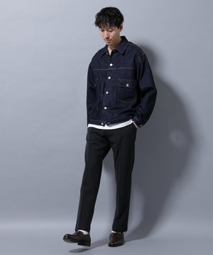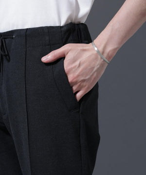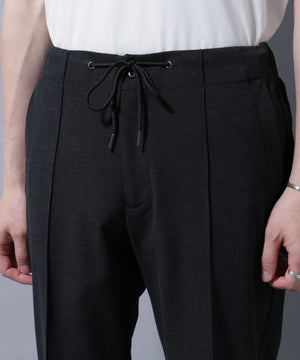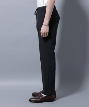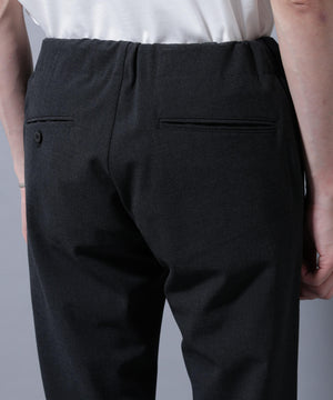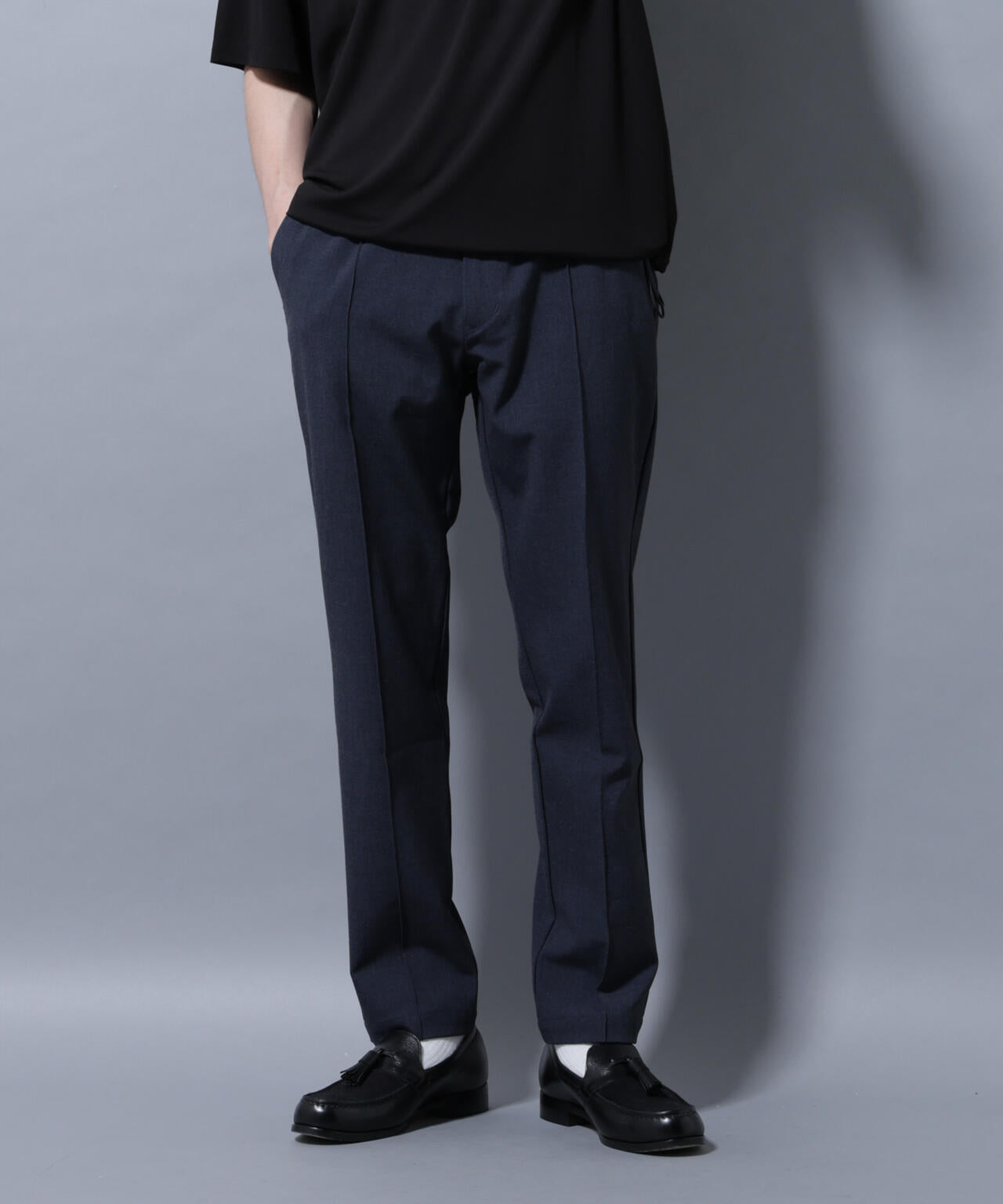 印象的なデザインと履き心地が魅力のイージースラックス。どんなアウターやトップスでもきれいめコーディネートに変身させる1着です。