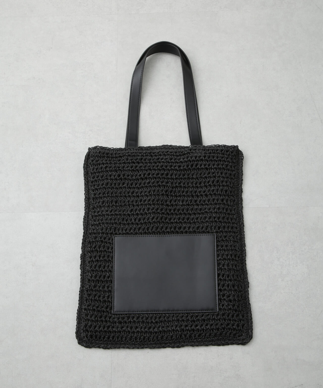 軽やかなクロッシェ素材をベースに、フェイクレザーで洗練されたアクセントを加えた夏仕様のトートバッグ。手編みならではの表情豊かな編み地と、フェイクレザーの持ち手・ポケットが絶妙なコントラストを生み出し、ナチュラルでありながらも都会的で色気のあるルックスに仕上がったアイテムです。
