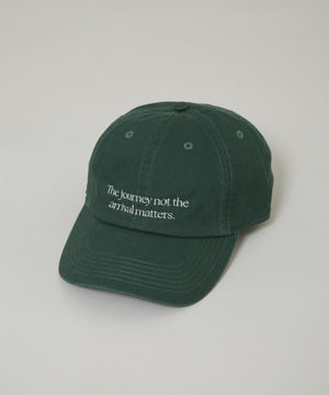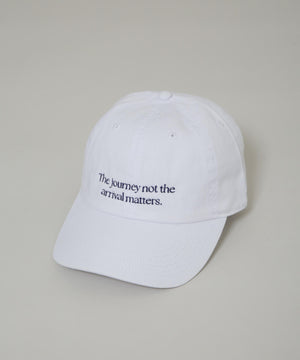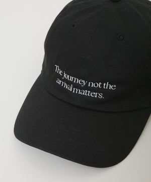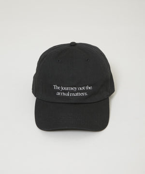 無駄を削ぎ落としたプレーンなデザインに、フロントの刺繍メッセージが映えるベースボールキャップ。「The journey not the arrival matters.(旅とはどこかに辿り着くことが重要なのではない)」という言葉をフロントに配した、ユニセックスで使える汎用性の高いアイテムです。