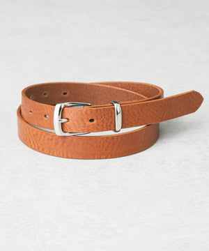 メタルのベルトループがポイントのレザーベルト。キレイめからカジュアルまでスタリングの幅を選ばず、ウエストをおしゃれに飾ってくれるアイテムです。