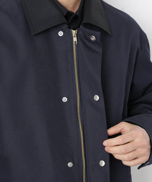 ・衿はフェイクレザーディテールで切り替えたデザイン