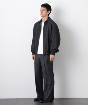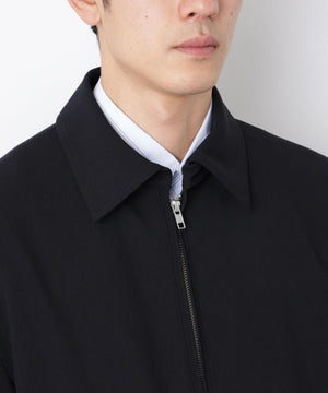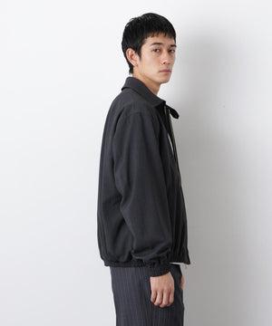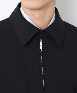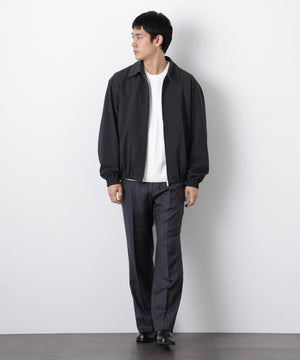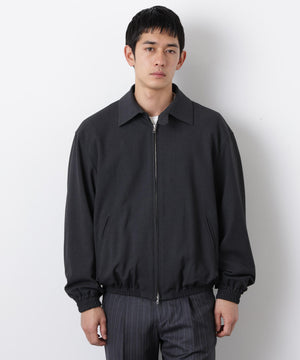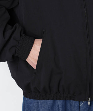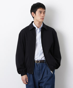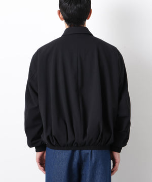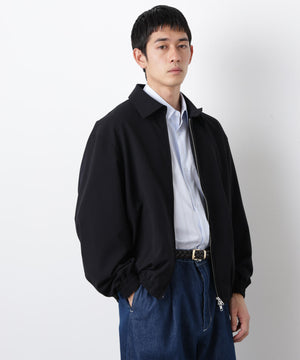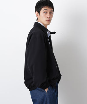 バックスタイルのタックとギャザーのアクセントが効いたTR素材のブルゾン。フロントはオーセンティックでシンプルなデザインなので、着回しが効く万能アイテムです。