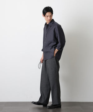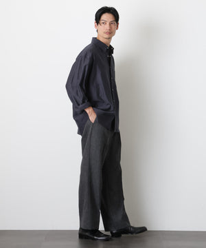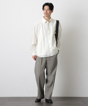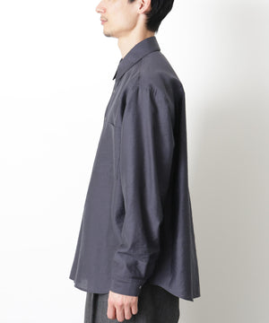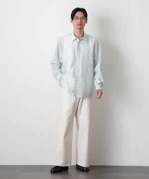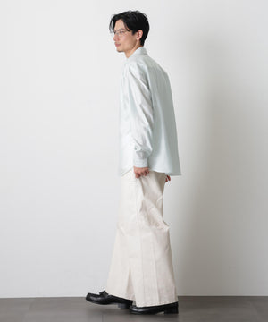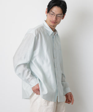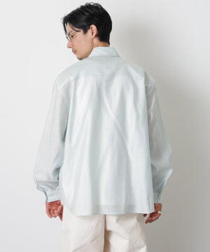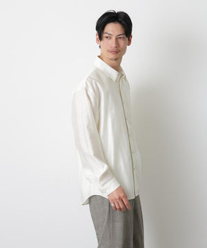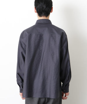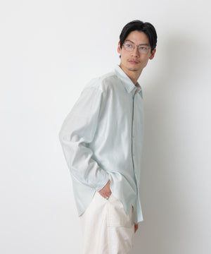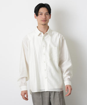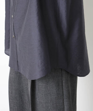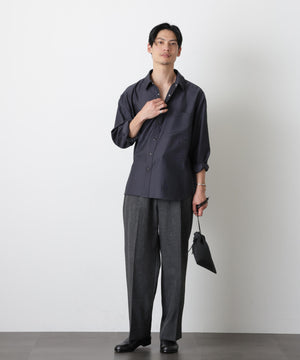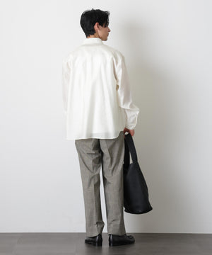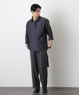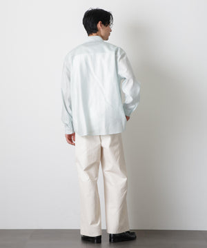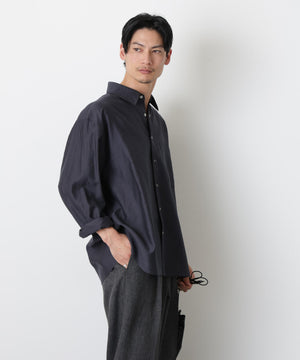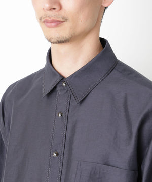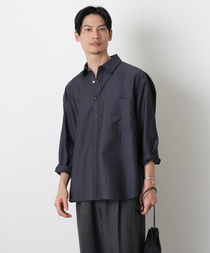 ・フロントと衿に艶感のある糸で刺繍を施したシャツ